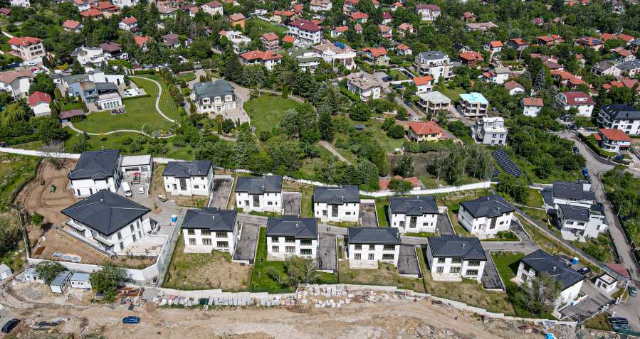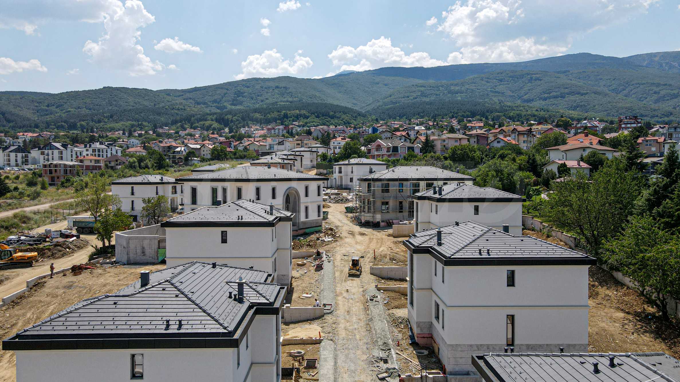 Комплексът е от затворен тип и свързва всички 20 имота с обща инфраструктура: красиво павирани алеи, собствен парк и професионално озеленени общи части, 24/7 контролиран достъп от жива охрана и видеонаблюдение. 14 000 кв.м. зелени площи създават усещане за живот сред природата и създават атмосфера на спокойствие. Елегантните фасади с непреходна визия, високите тавани, просторни спални със собствени бани, обширните дневни с прилежащи трапезарии, слънчевите, професионално озеленени дворове и безупречно качество на изпълнение са само малка част от това, което прави този имот специален.