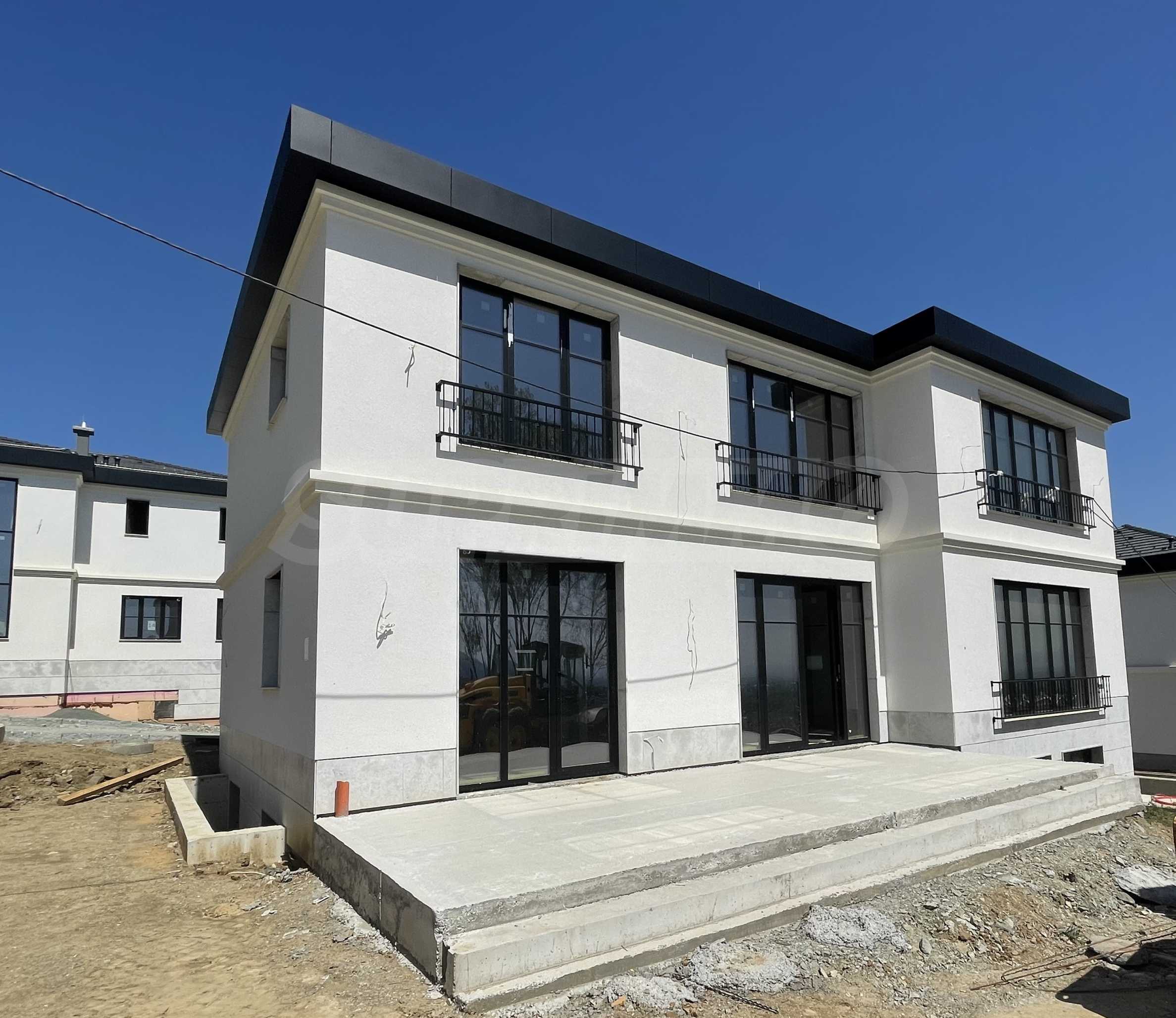 Къщата разполага с общо 6 спални, 5 бани с тоалетни, отделна тоалетна за гости, помещение за фитнес, просторна дневна с отделна трапезария, гараж за 2 коли и открит паркинг за до 4 автомобила, както и голям самостоятелен двор.