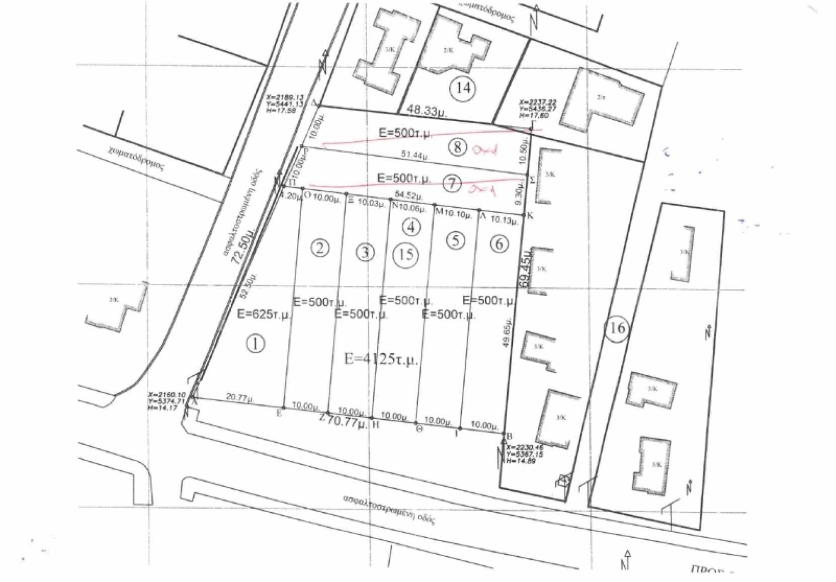 Парцел 500кв.м. в Ептамилои Серес. Тя е равна, ъглова, в план и може да се застрои. Има коефициент на покритие 60% и застроява 240кв.м. с допълнителни 40кв.м. таванско помещение и покрив. Има лице на главен път 10м. и дълбочина 49,65м.. Намира се в тих район много близо до град Серес. За оглед на имота е необходимо да представите лична карта.
