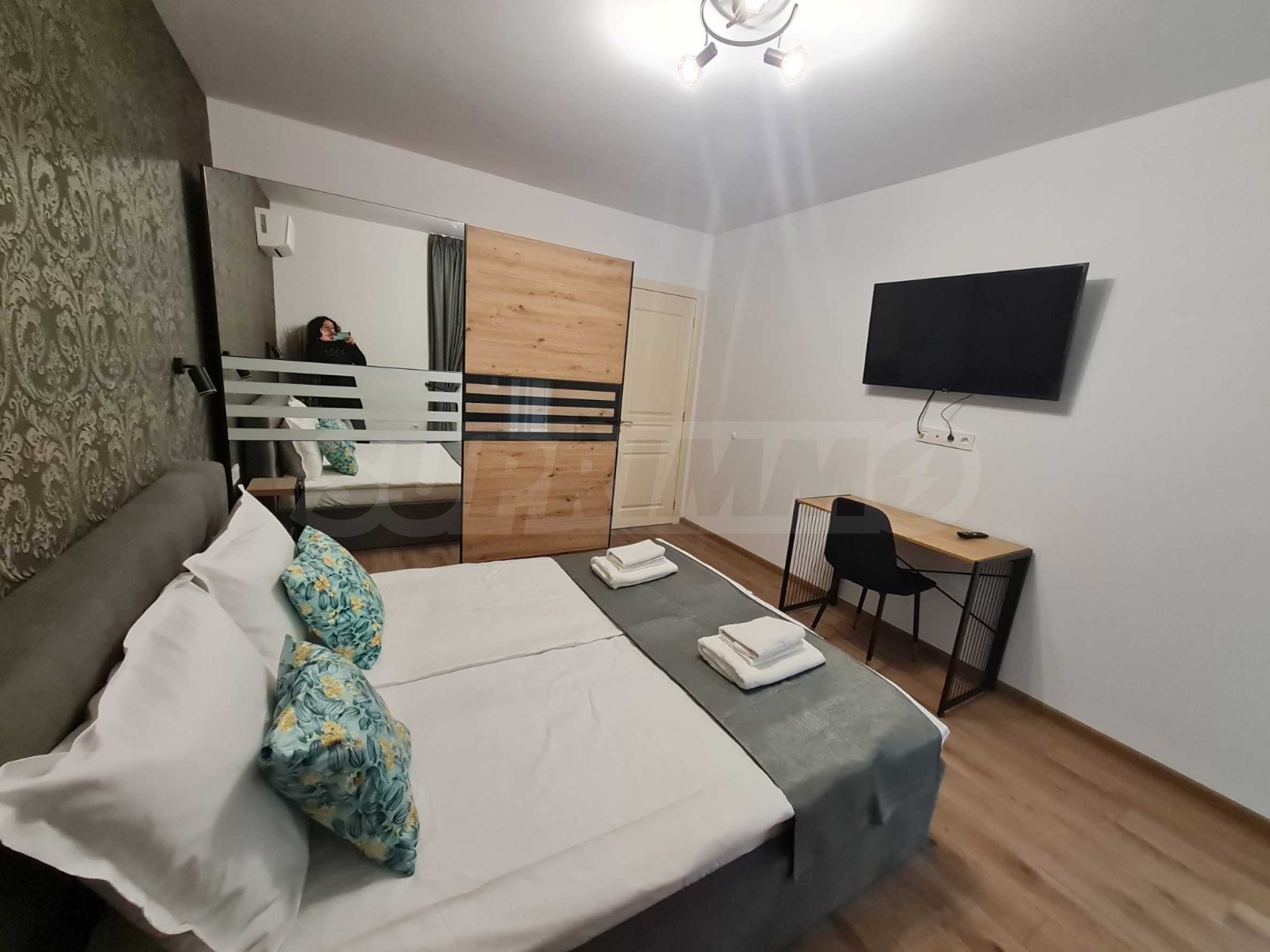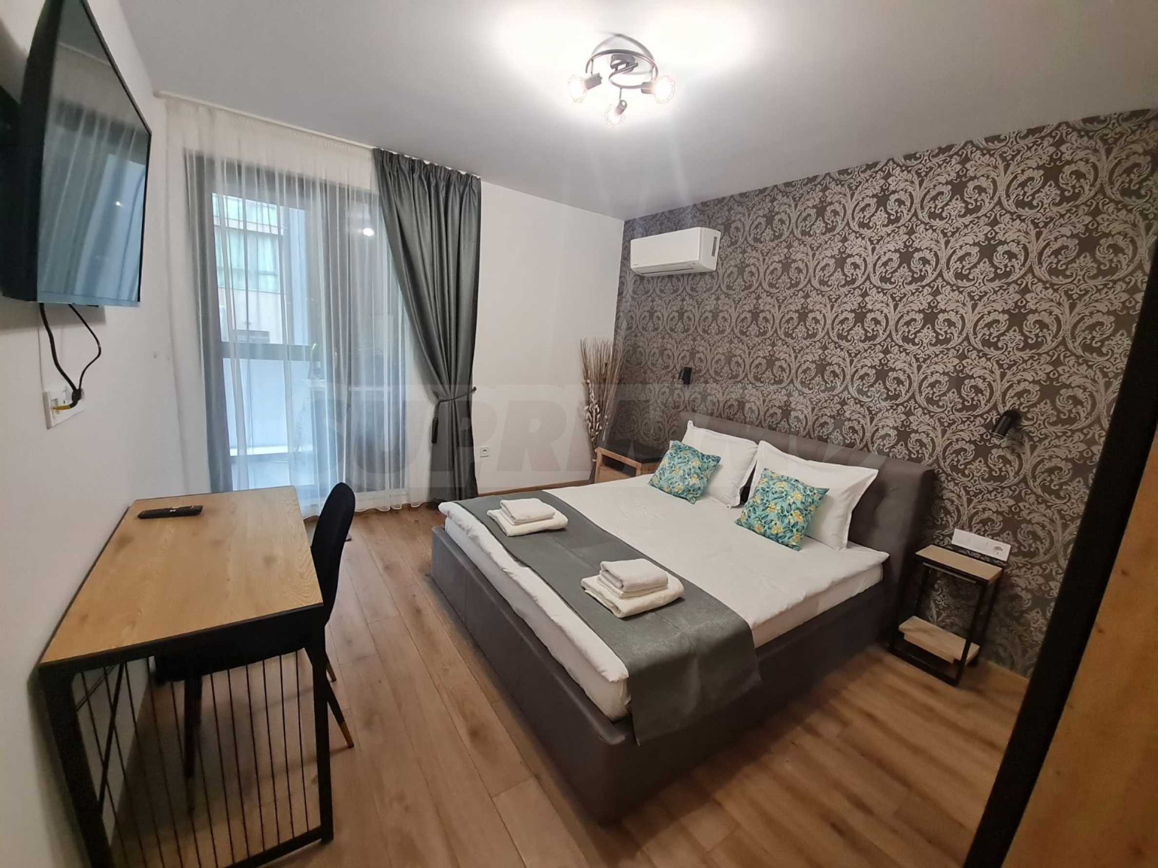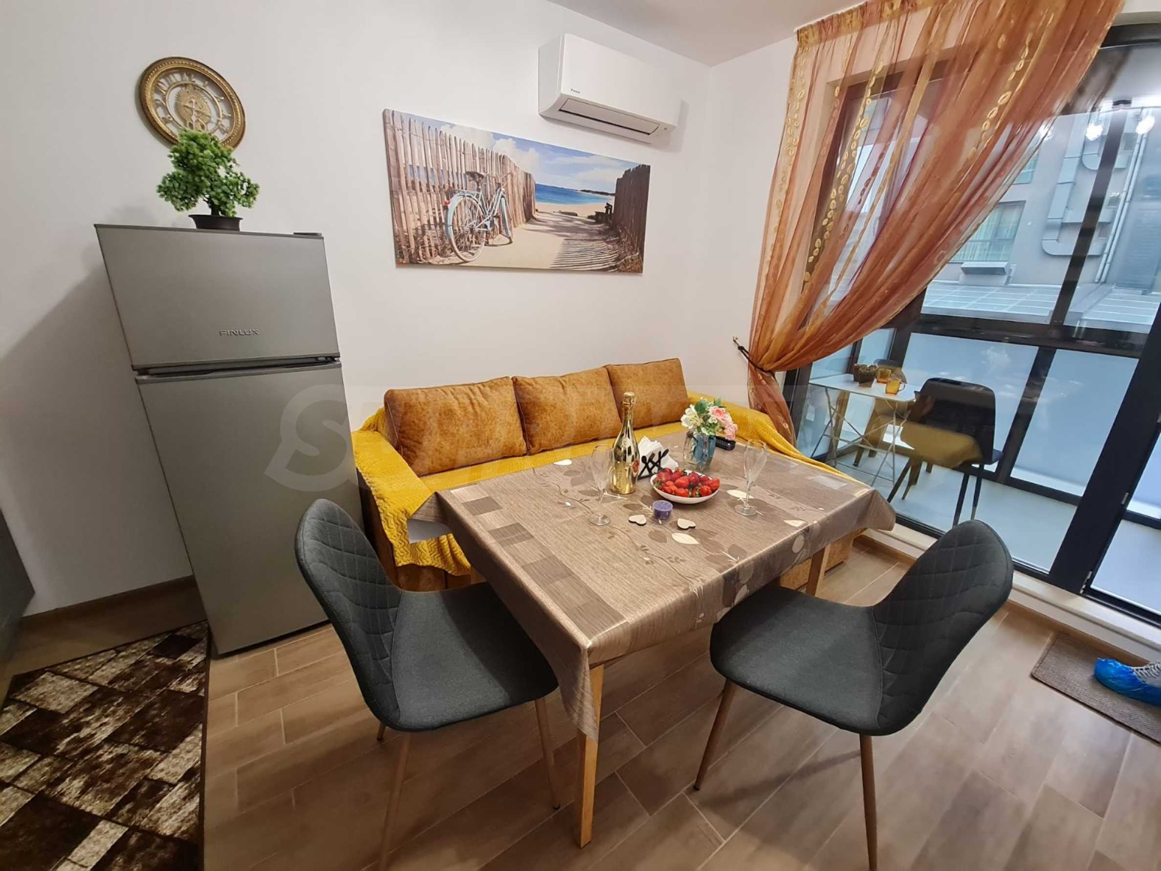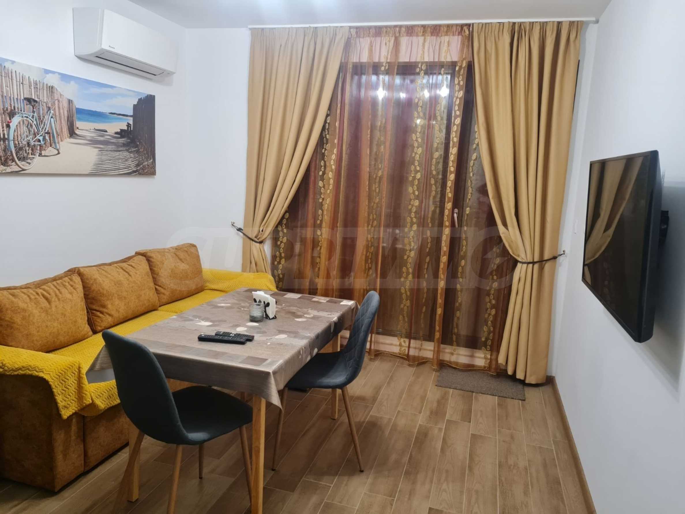 В наемната цена са включени интернет, телевизия и входна такса.