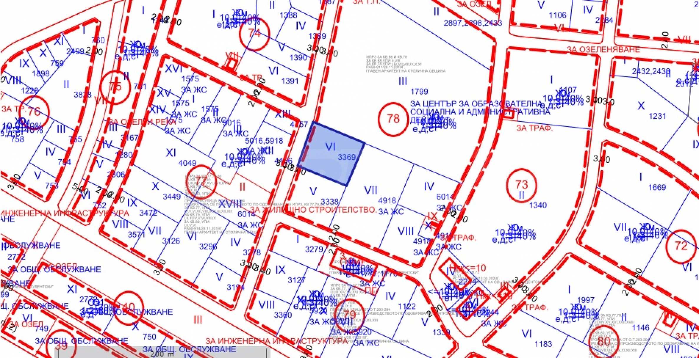 Парцелът попада в зона Жм, с параметри на застрояване – плътност 40%, Кинт 1.3, кота корниз до 10 м, което го прави подходящ за изграждане на малка жилищна кооперация или комплекс от семейни жилища. Възможност за обезщетение.