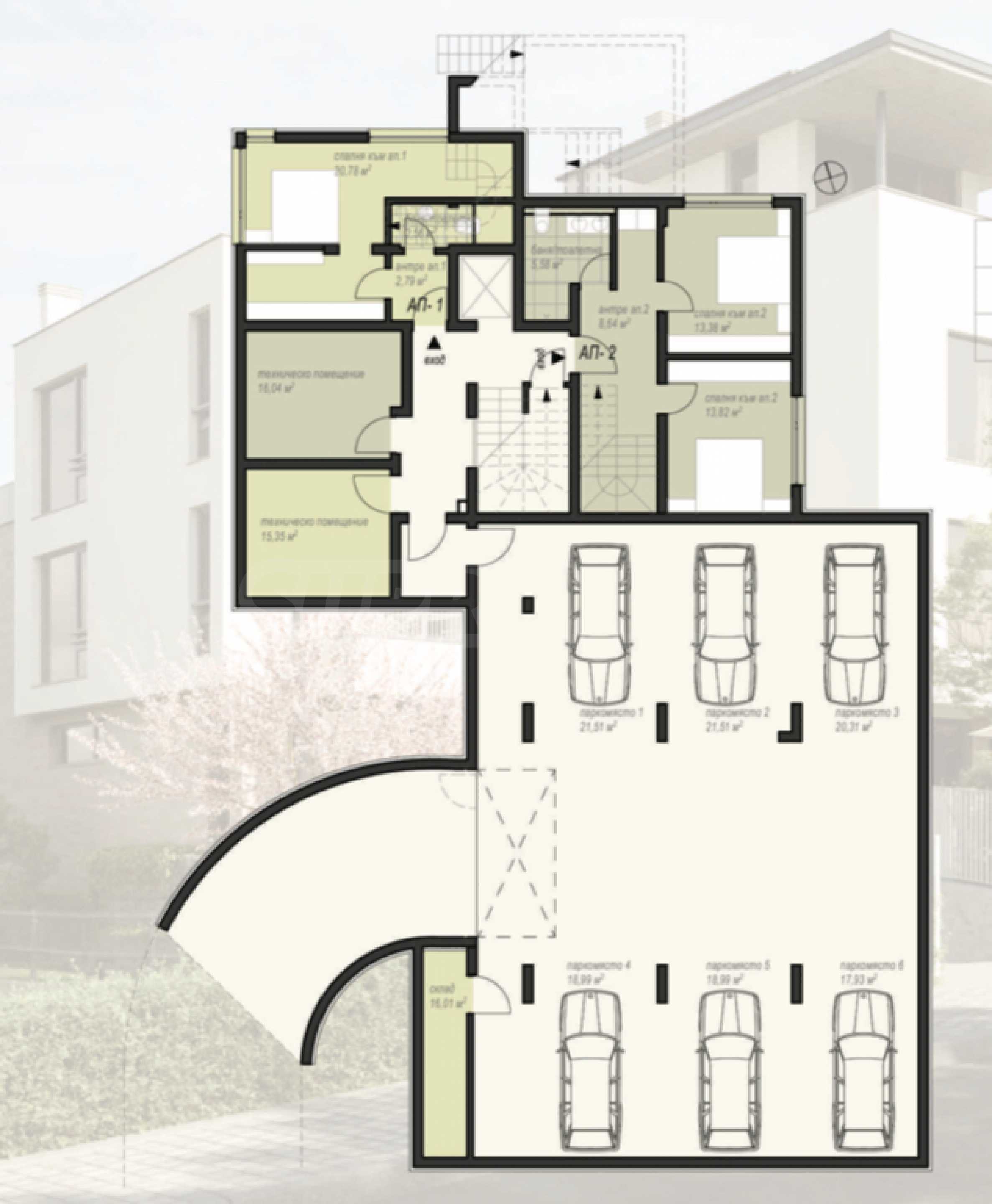 Към имота принадлежи техническо помещение на ниво -1 , от 16 кв.м, на цена от 24 960 Евро без ДДС, и може да се закупи допълнително подземно и надземно паркомясто на цена от 25 000 Евро без ДДС.