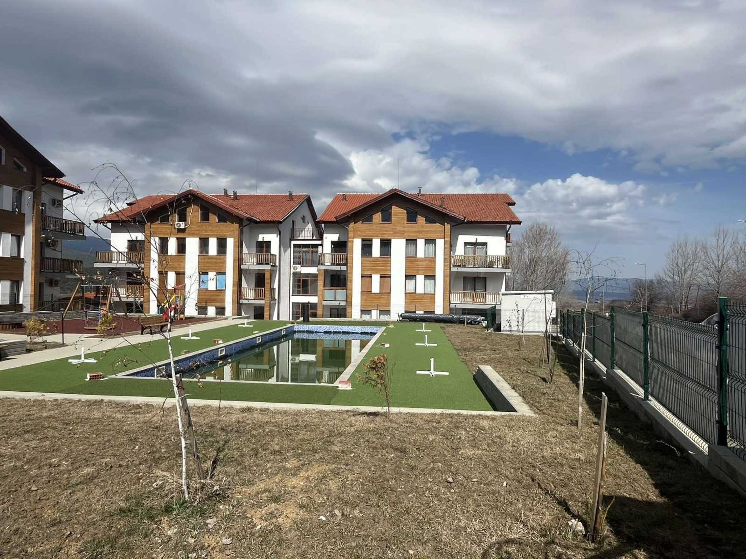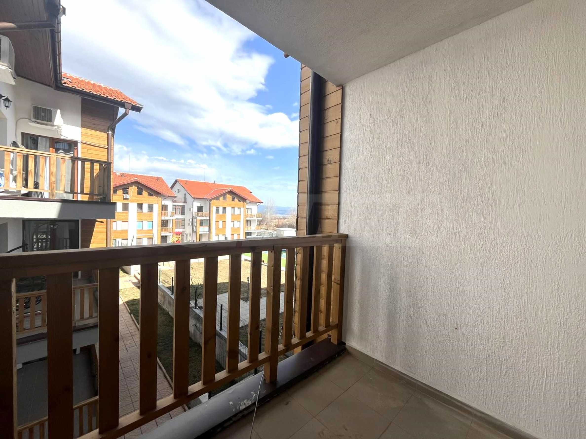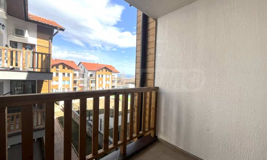 Имотът е разположен в новопостроена жилищна сграда, като от балкона се разкрива панорамна гледка към Рила планина и вътрешността на комплекса.