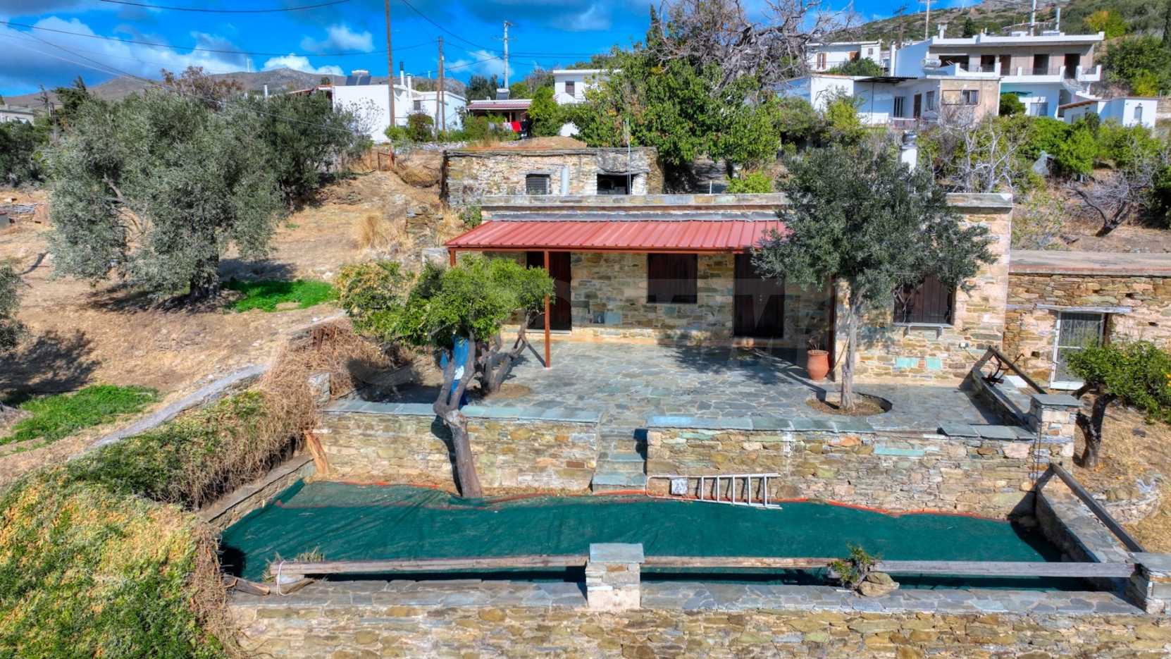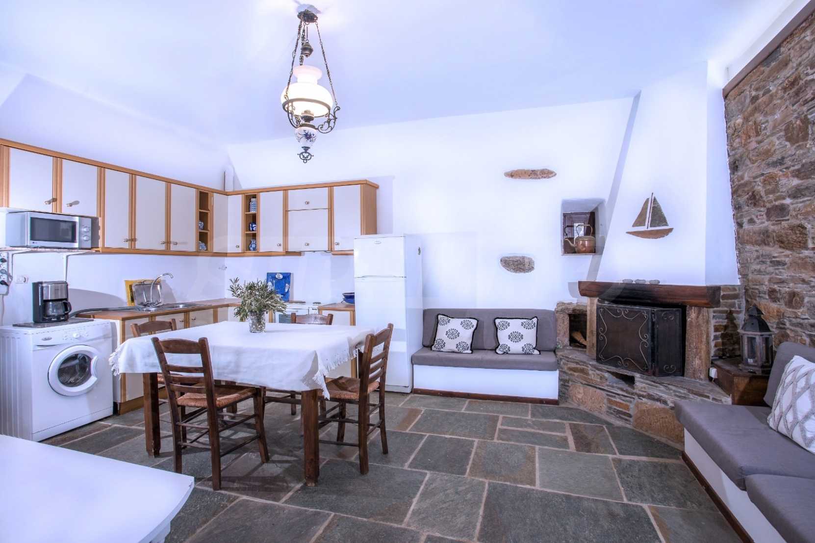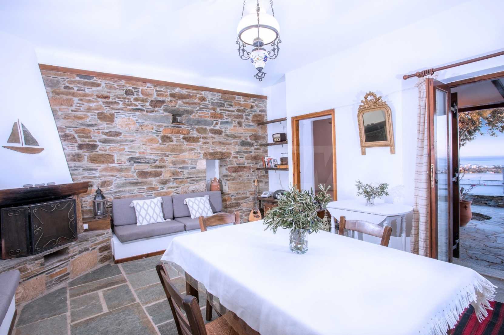 Очарователна традиционна самостоятелна къща с живописна гледка към морето в Каристос. Този прекрасен дом с 2 спални и 1 баня се простира на 76 кв.м. и разполага с уютна камина с отоплителна система, която затопля цялата къща. Насладете се на комфорта на климатика и красотата на спокойната гледка към морето от този привлекателен имот. Перфектна комбинация от комфорт и спокойствие ви очаква в това прекрасно жилище.