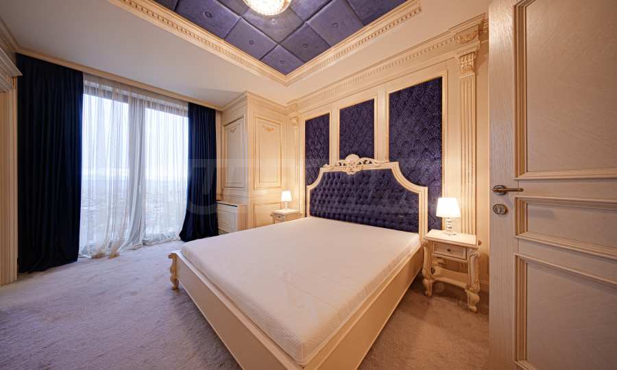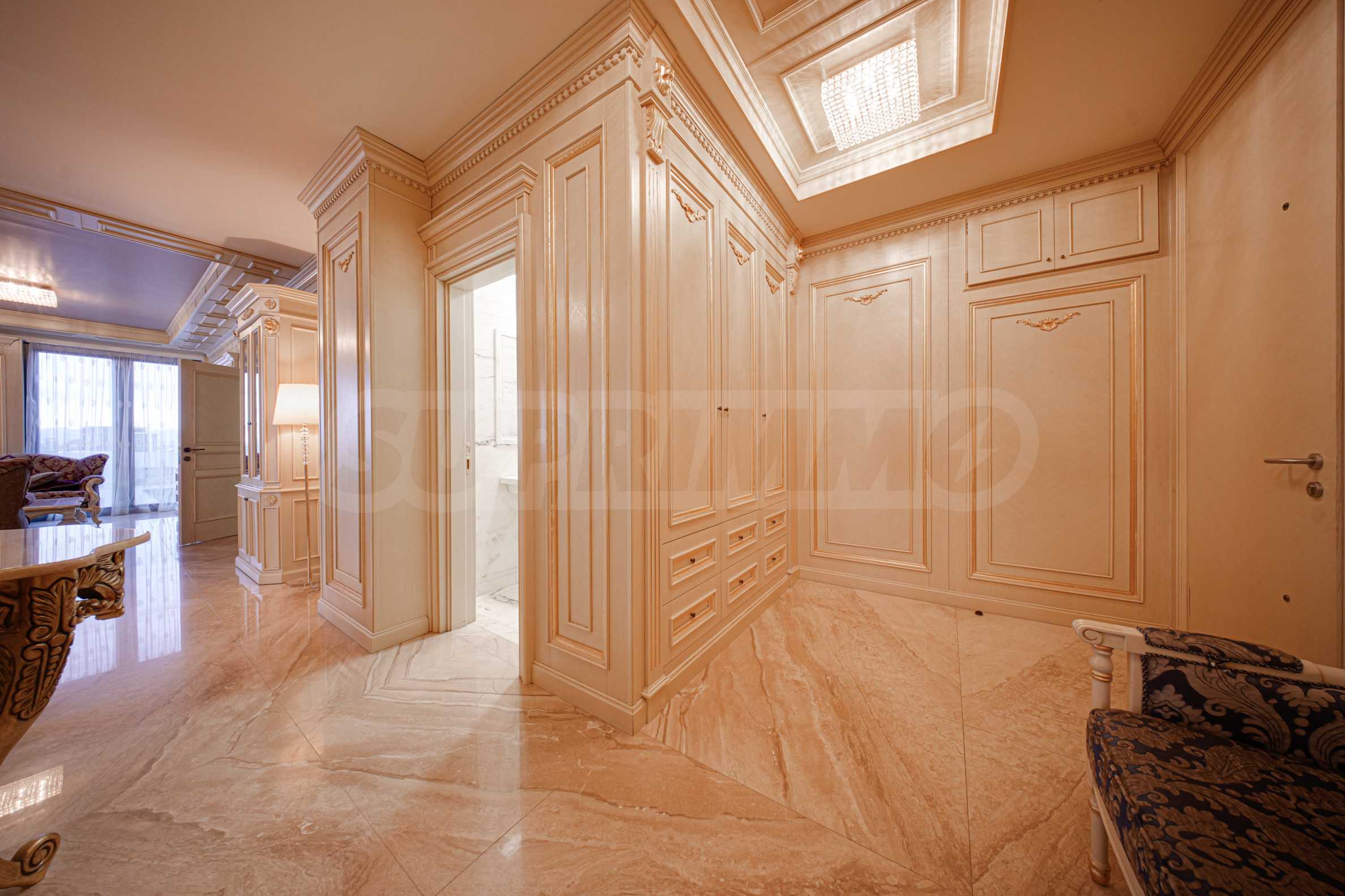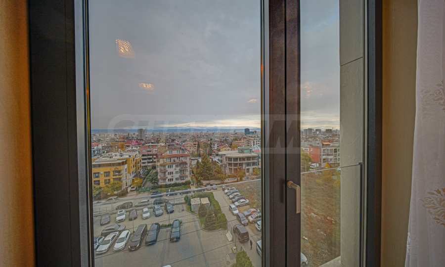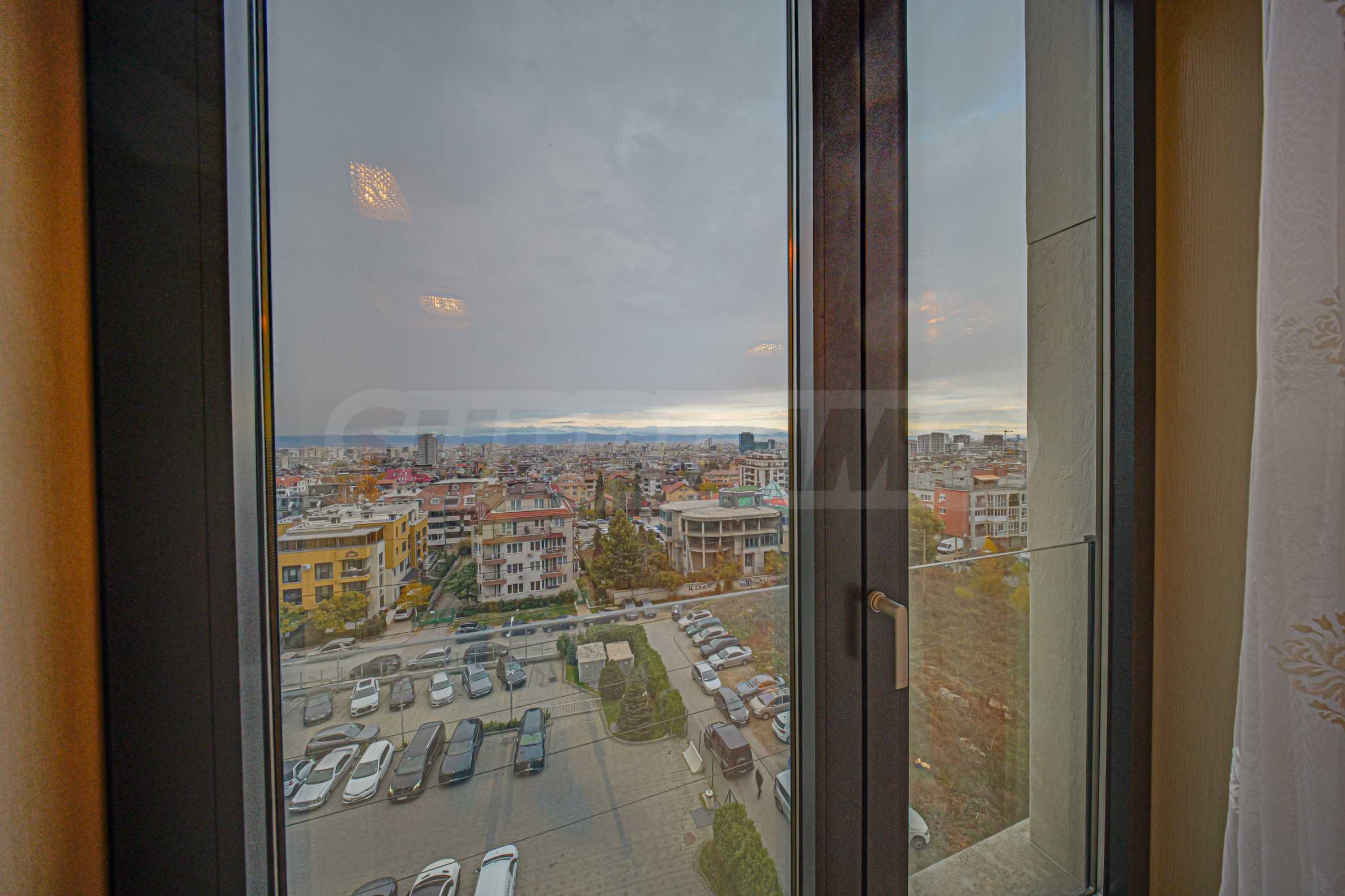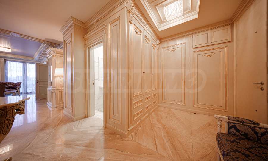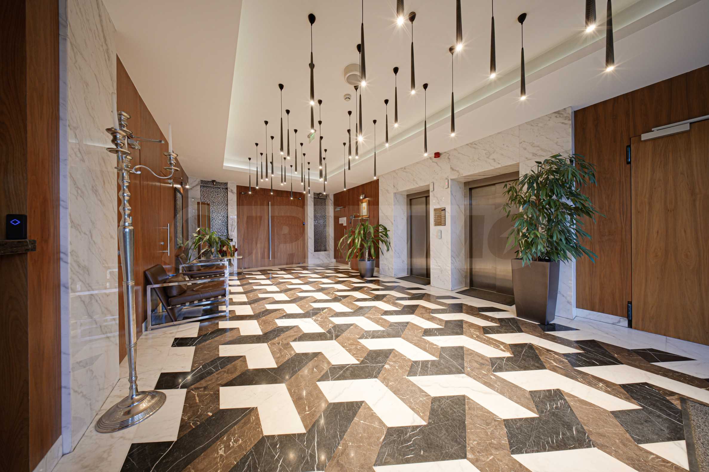 Апартаментът заема седми от общо девететажната сграда. Изложението е изток/север/запад. Имотът е изпълнен с най-висок клас довършителни работи: