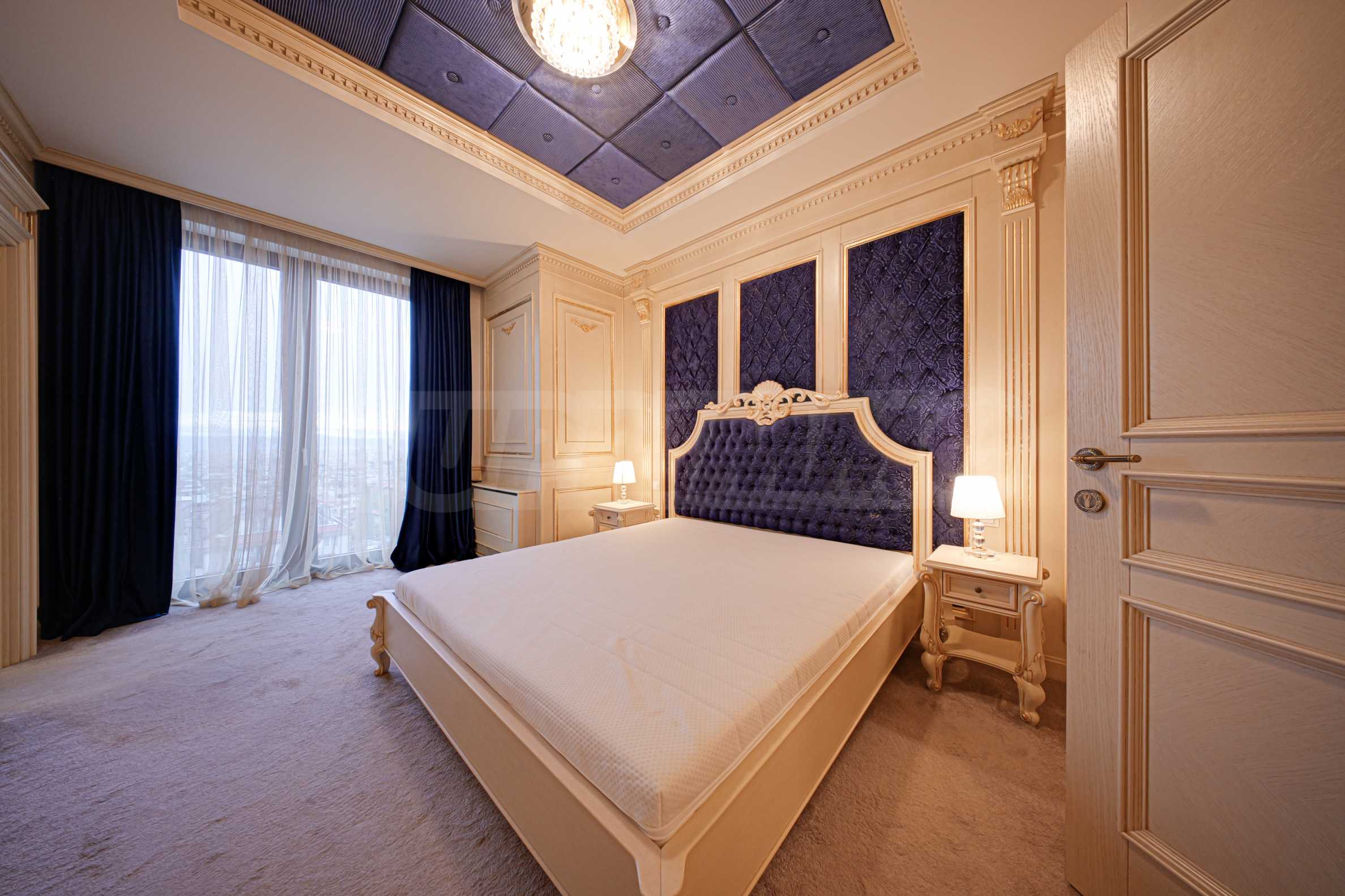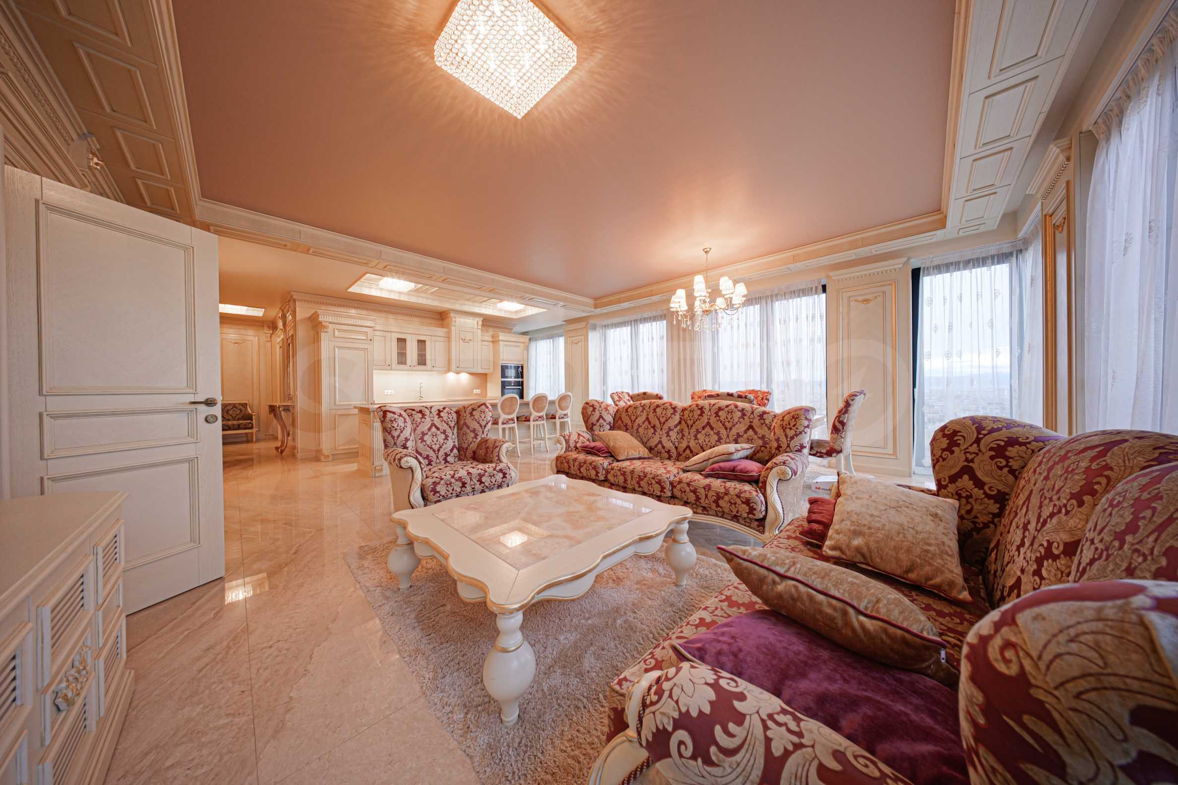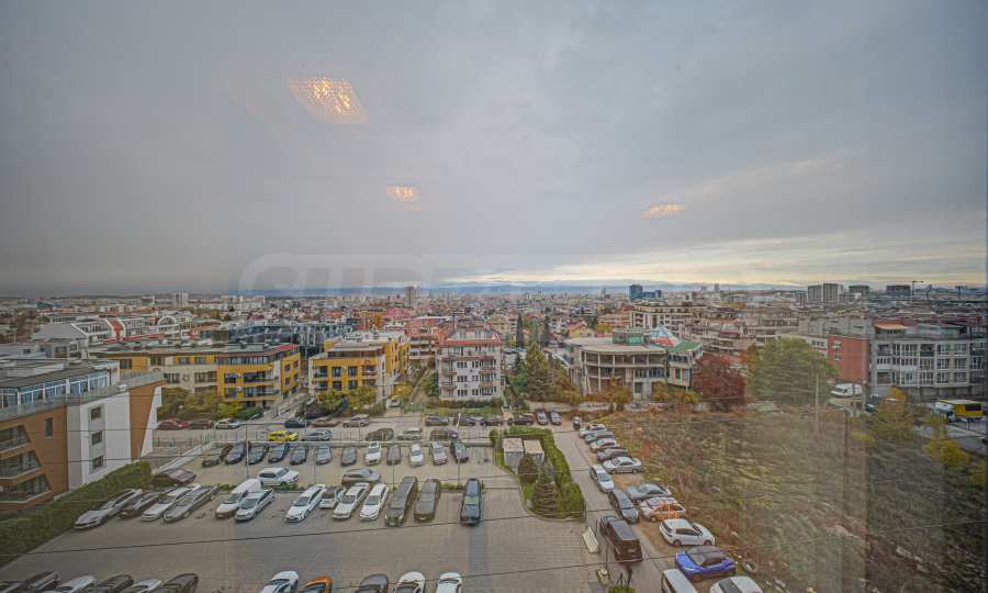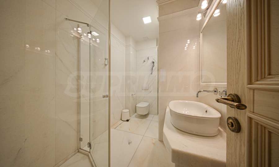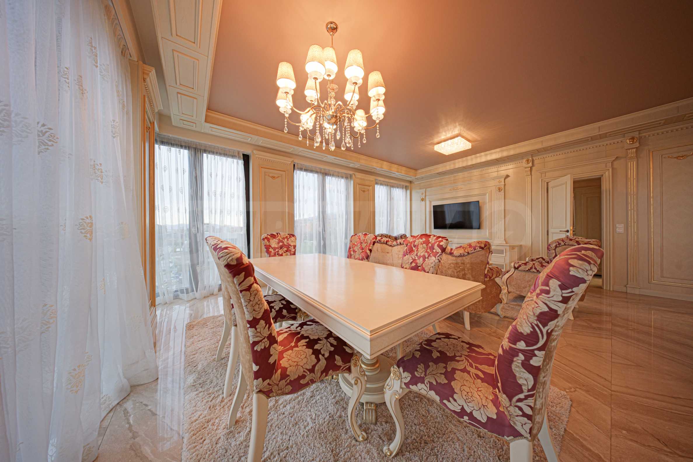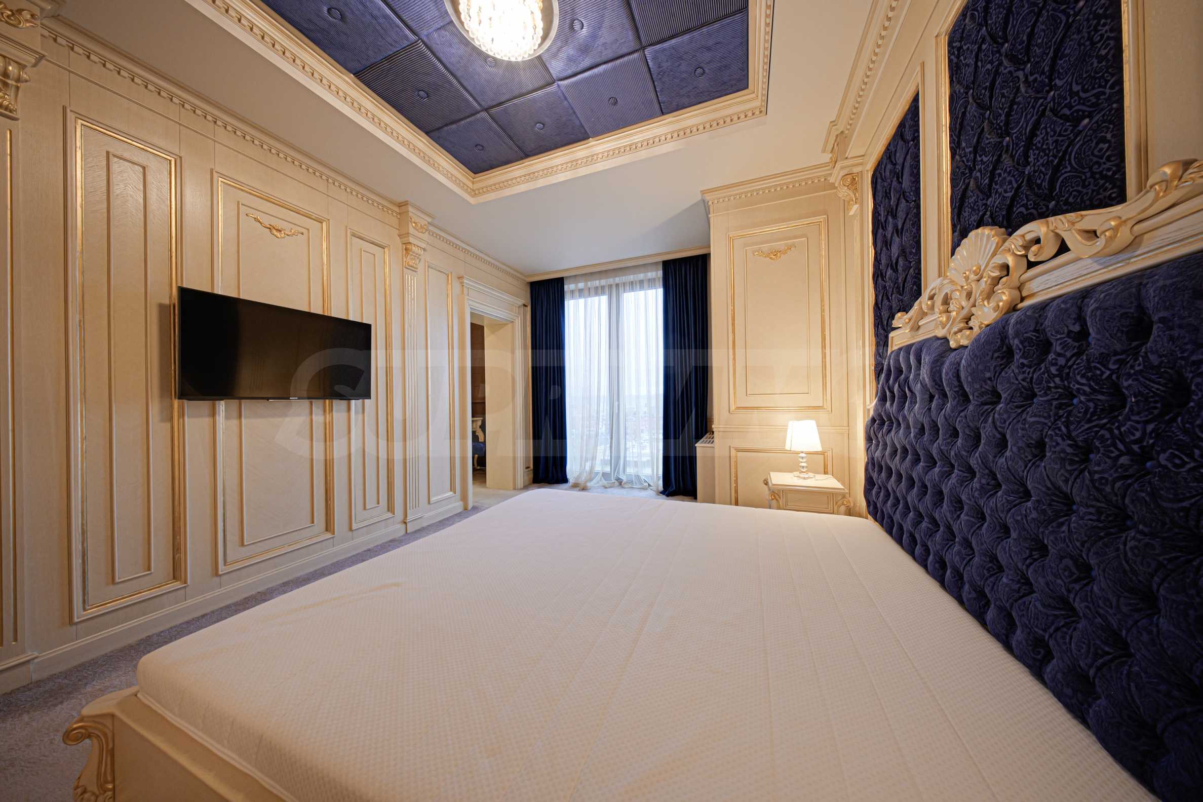 Апартаментът заема седми от общо девететажната сграда. Изложението е изток/север/запад. Имотът е изпълнен с най-висок клас довършителни работи: