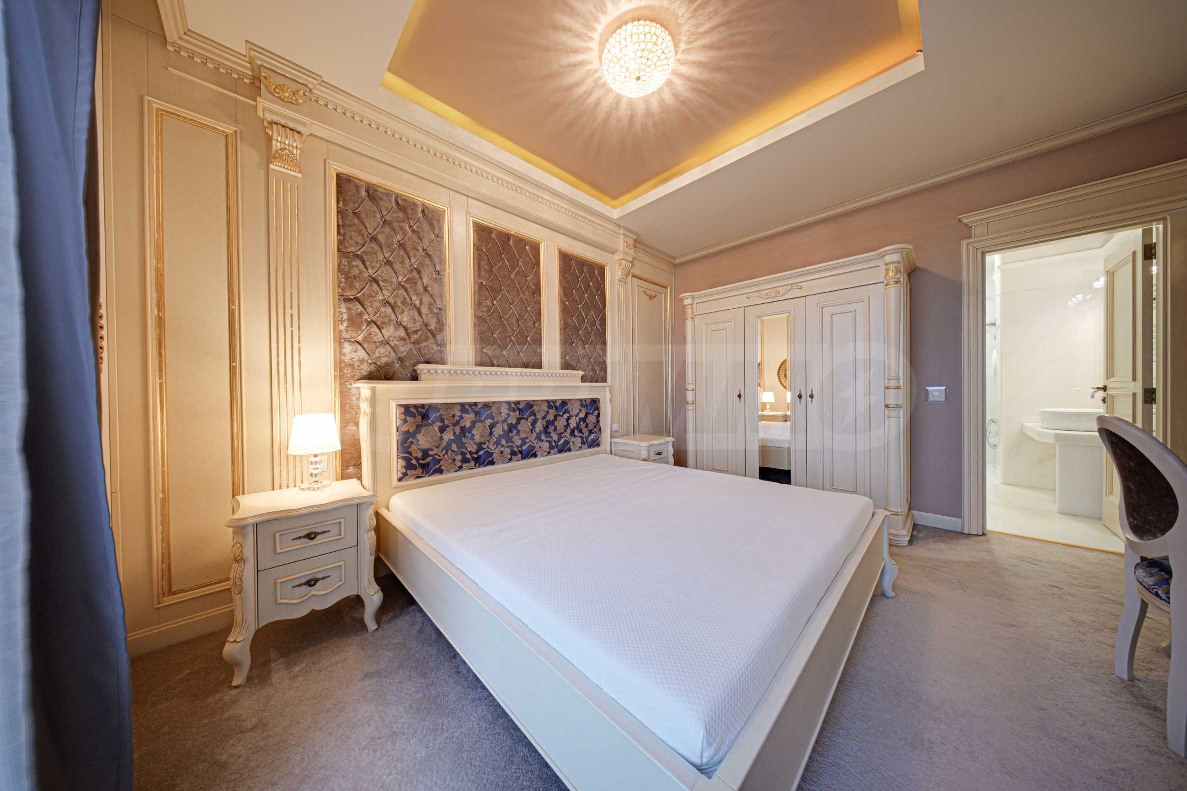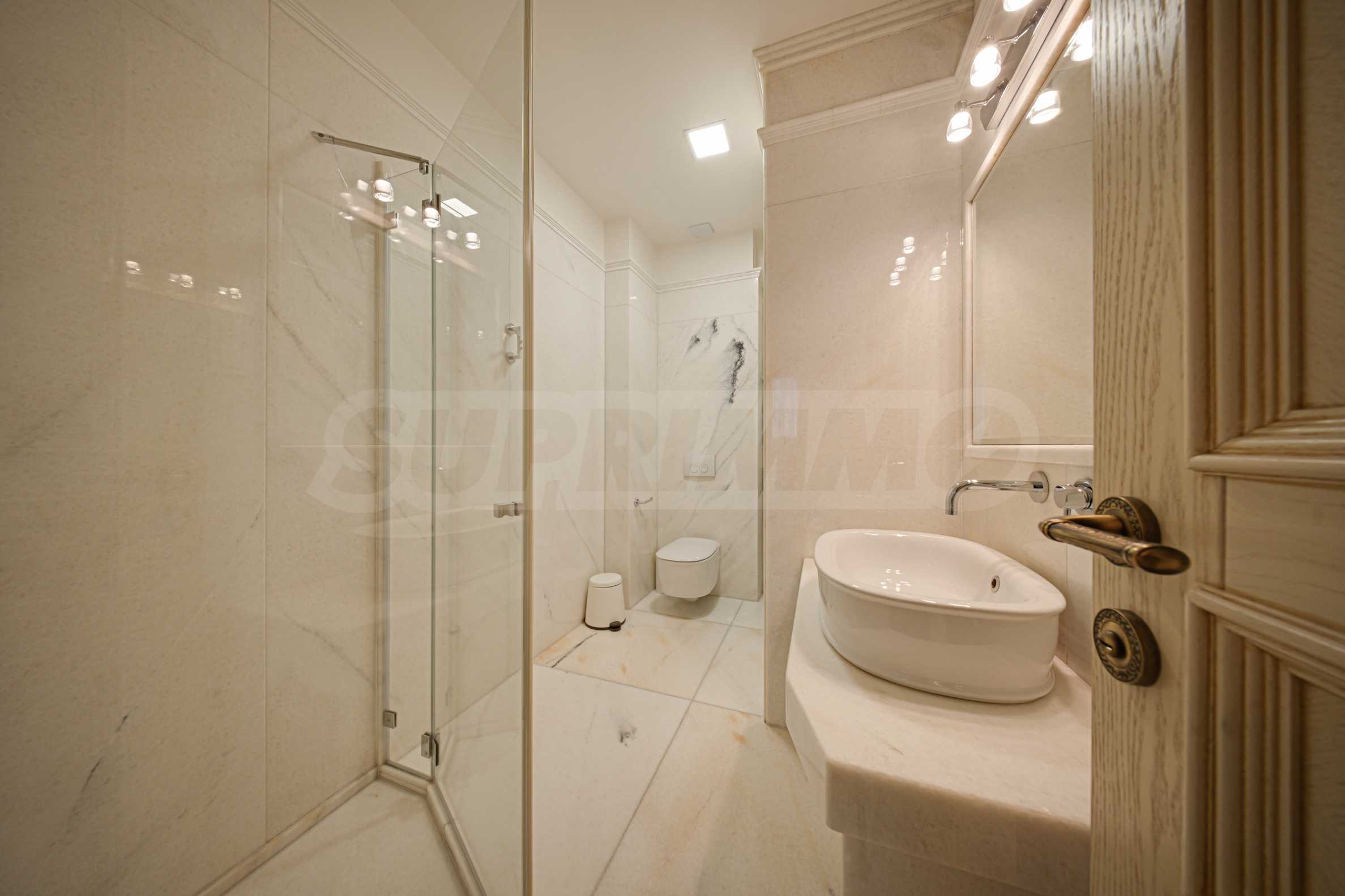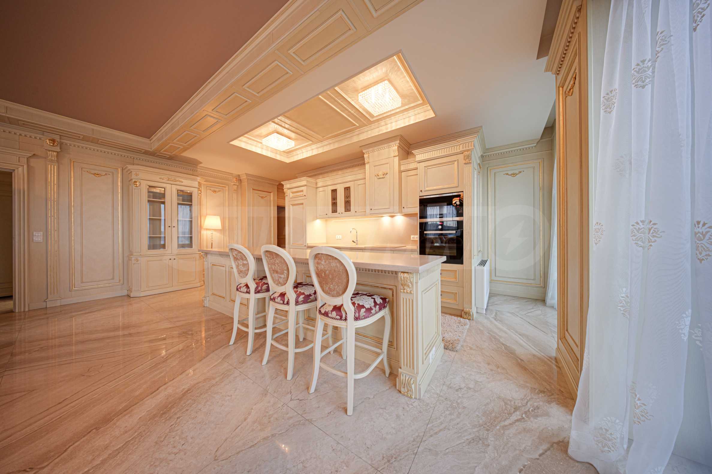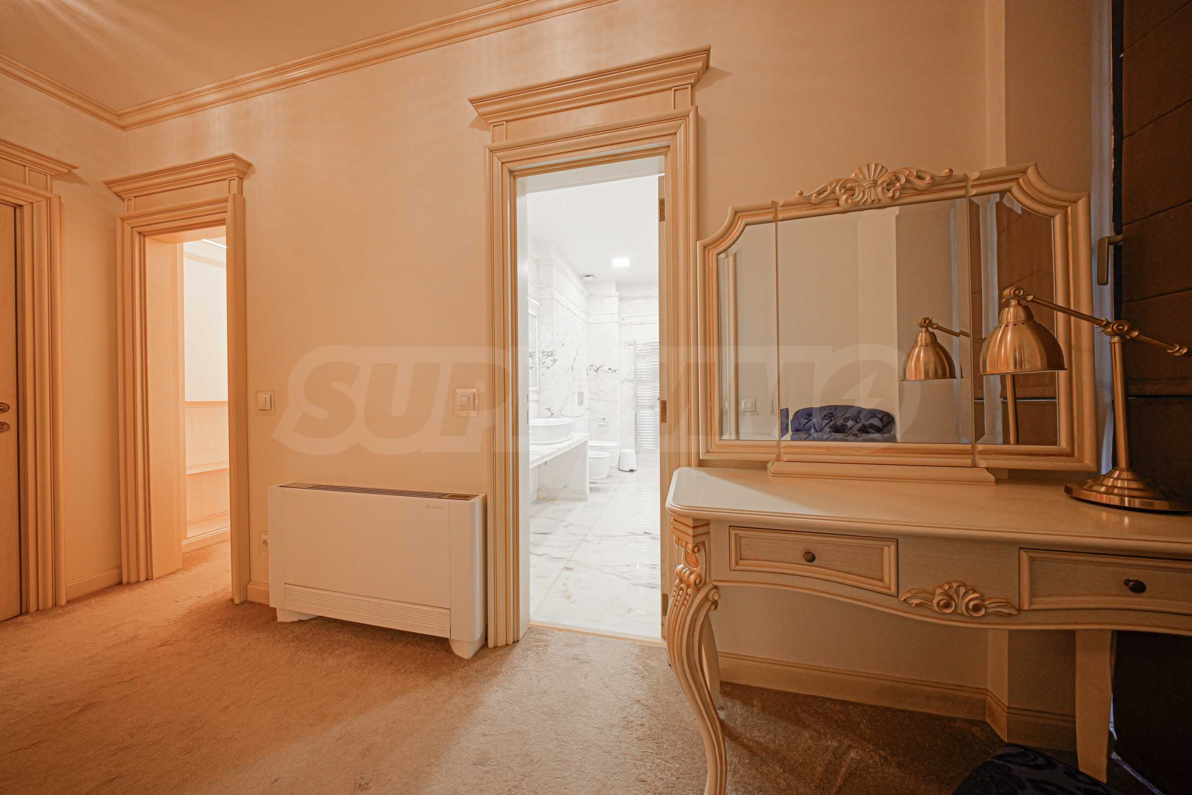 Апартаментът заема седми от общо девететажната сграда. Изложението е изток/север/запад. Имотът е изпълнен с най-висок клас довършителни работи: