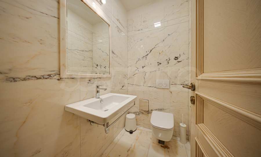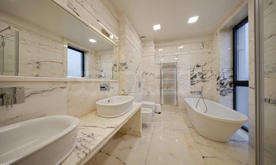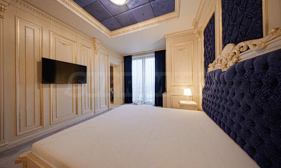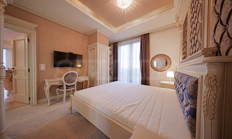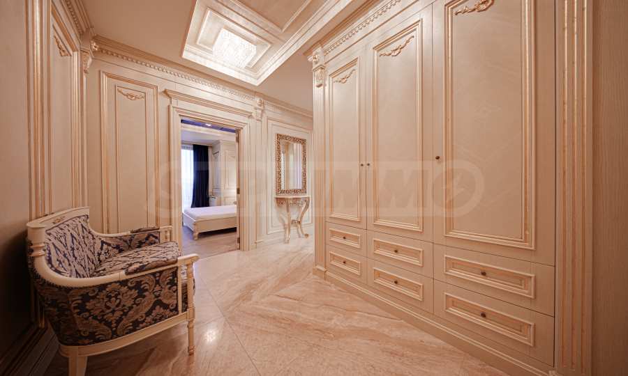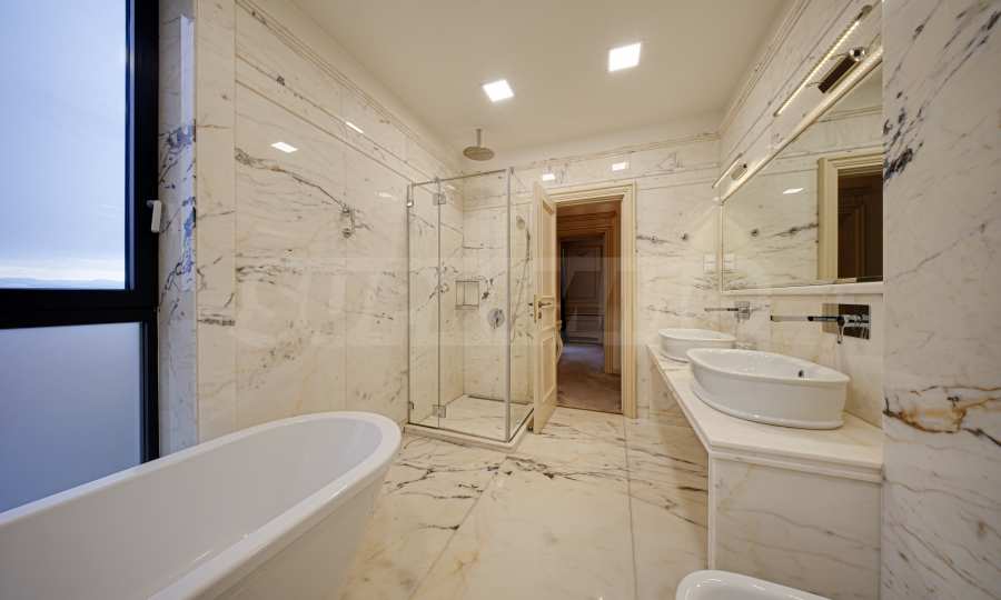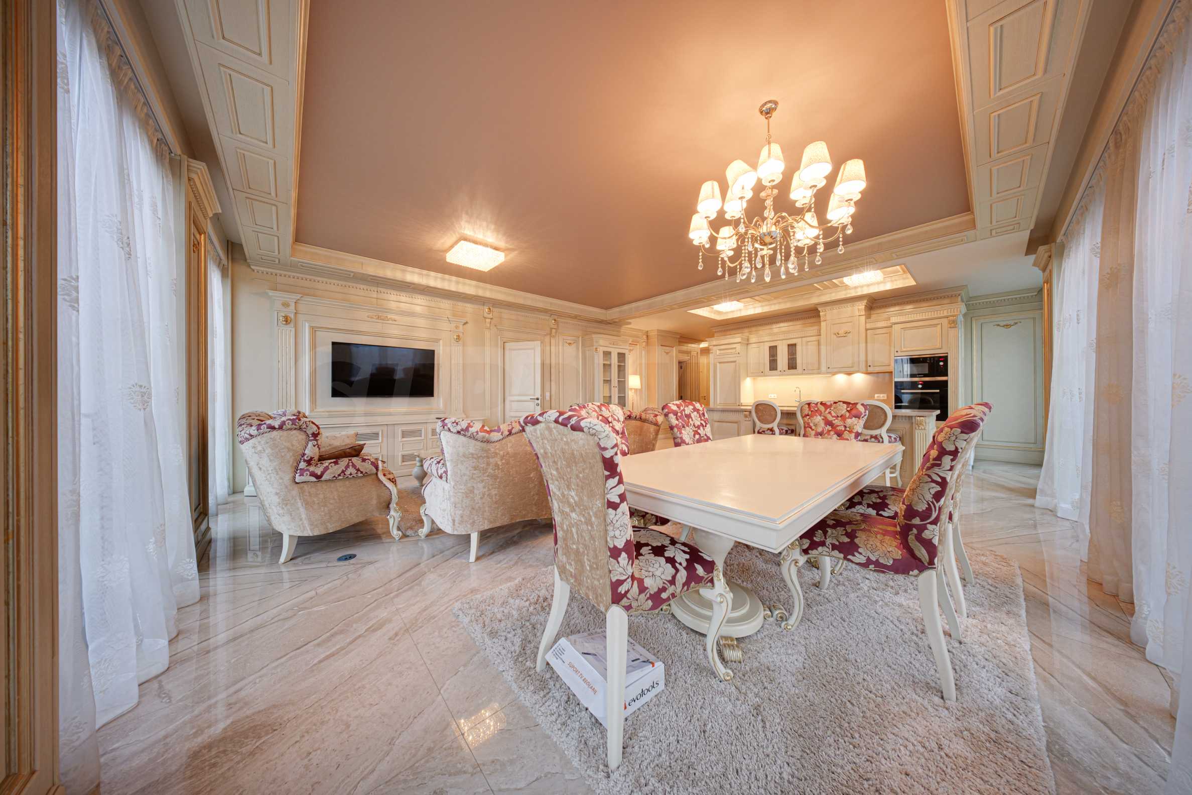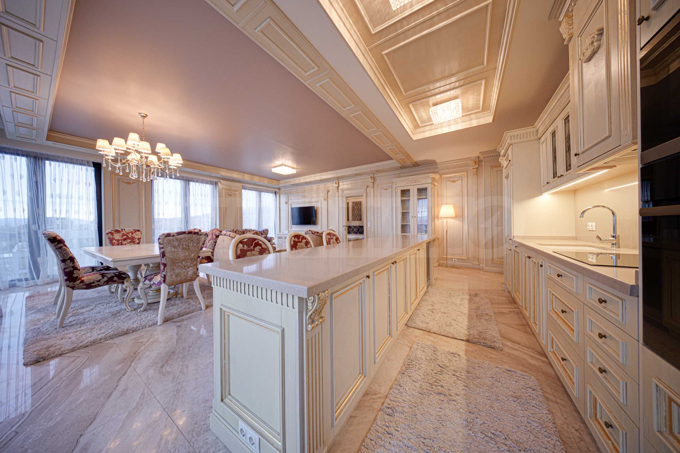 Апартаментът заема седми от общо девететажната сграда. Изложението е изток/север/запад. Имотът е изпълнен с най-висок клас довършителни работи: