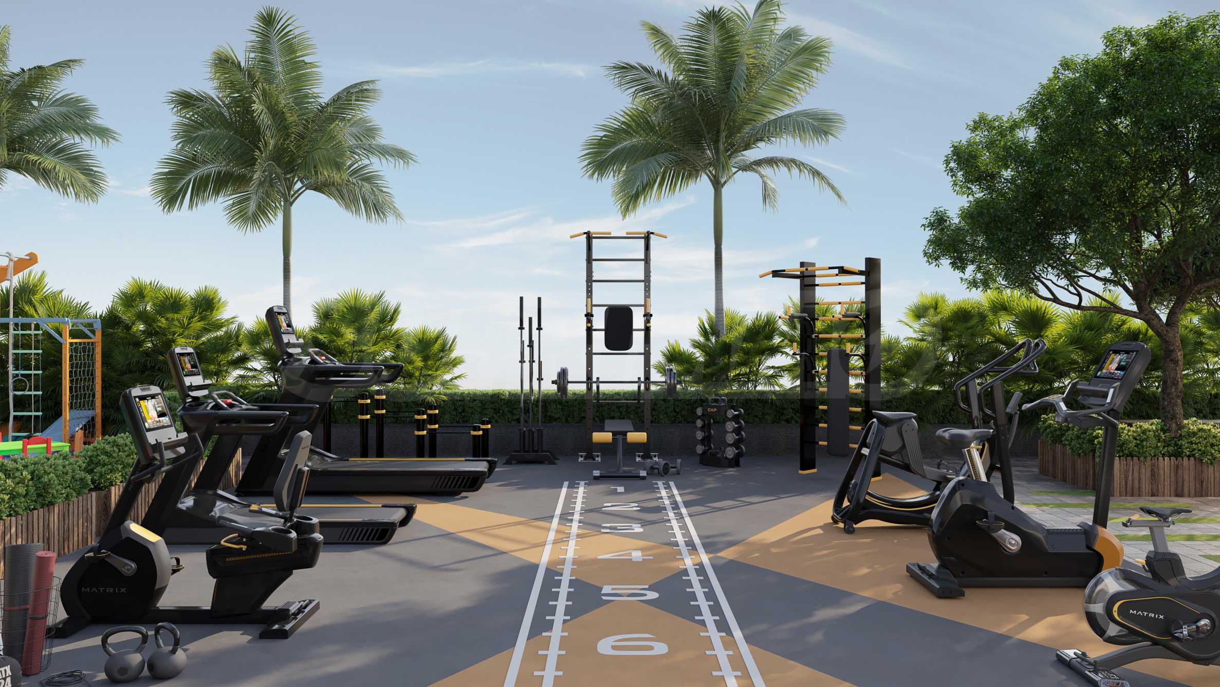 Комплексът разполага с изчерпателен набор от удобства, адаптирани към съвременния начин на живот - от красиво озеленени градини до спокойни водни съоръжения и зони за отдих. На разположение са фитнес на открито, тенис корт, баскетболно игрище, детска площадка и басейн, което прави ежедневието в рамките на комплекса вдъхновяващо. В допълнение, красивите озеленени градини и паркове предлагат открито пространство за социални събирания, релаксация и развлекателни дейности, насърчавайки атмосфера, ориентирана към общността.