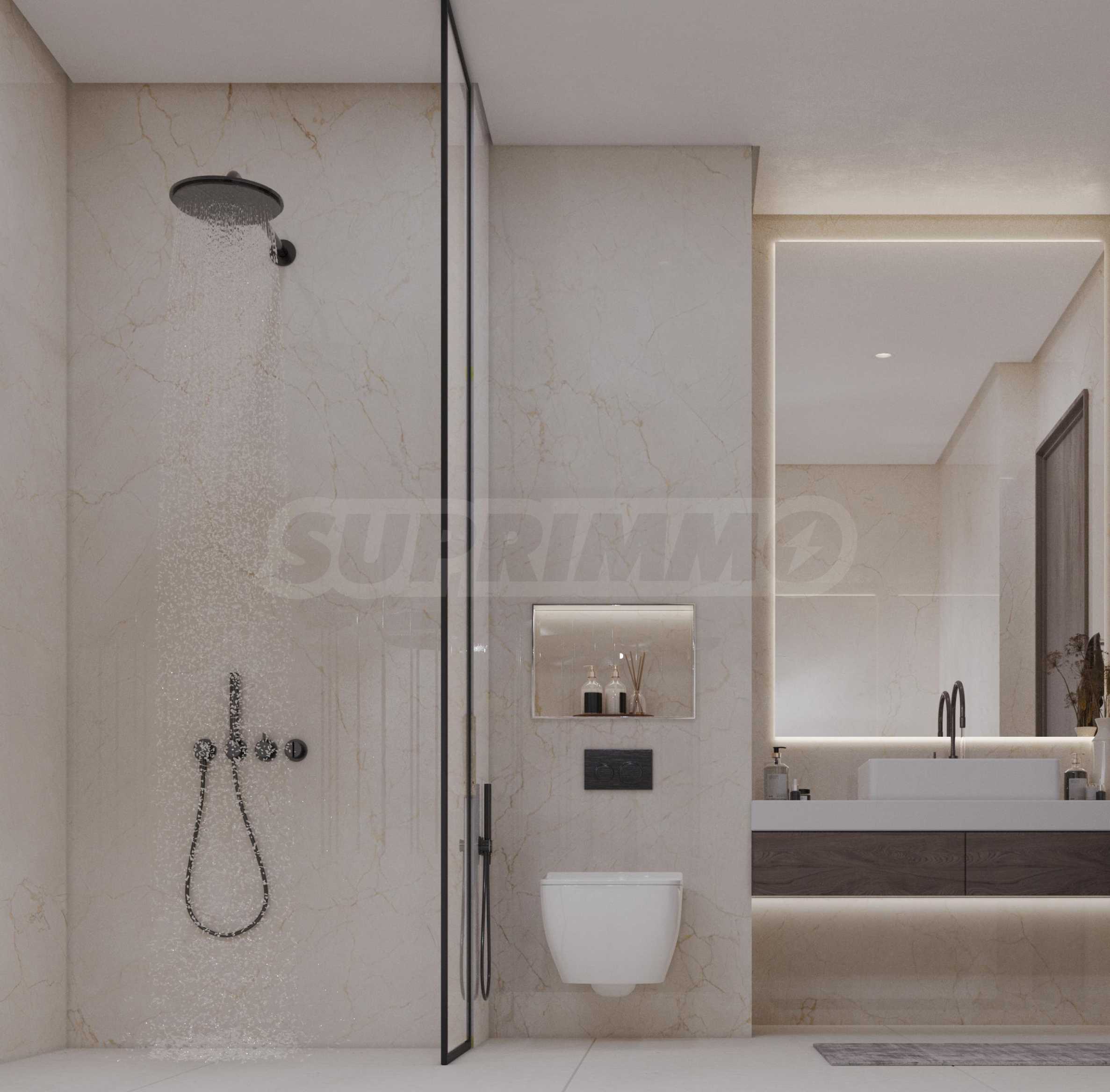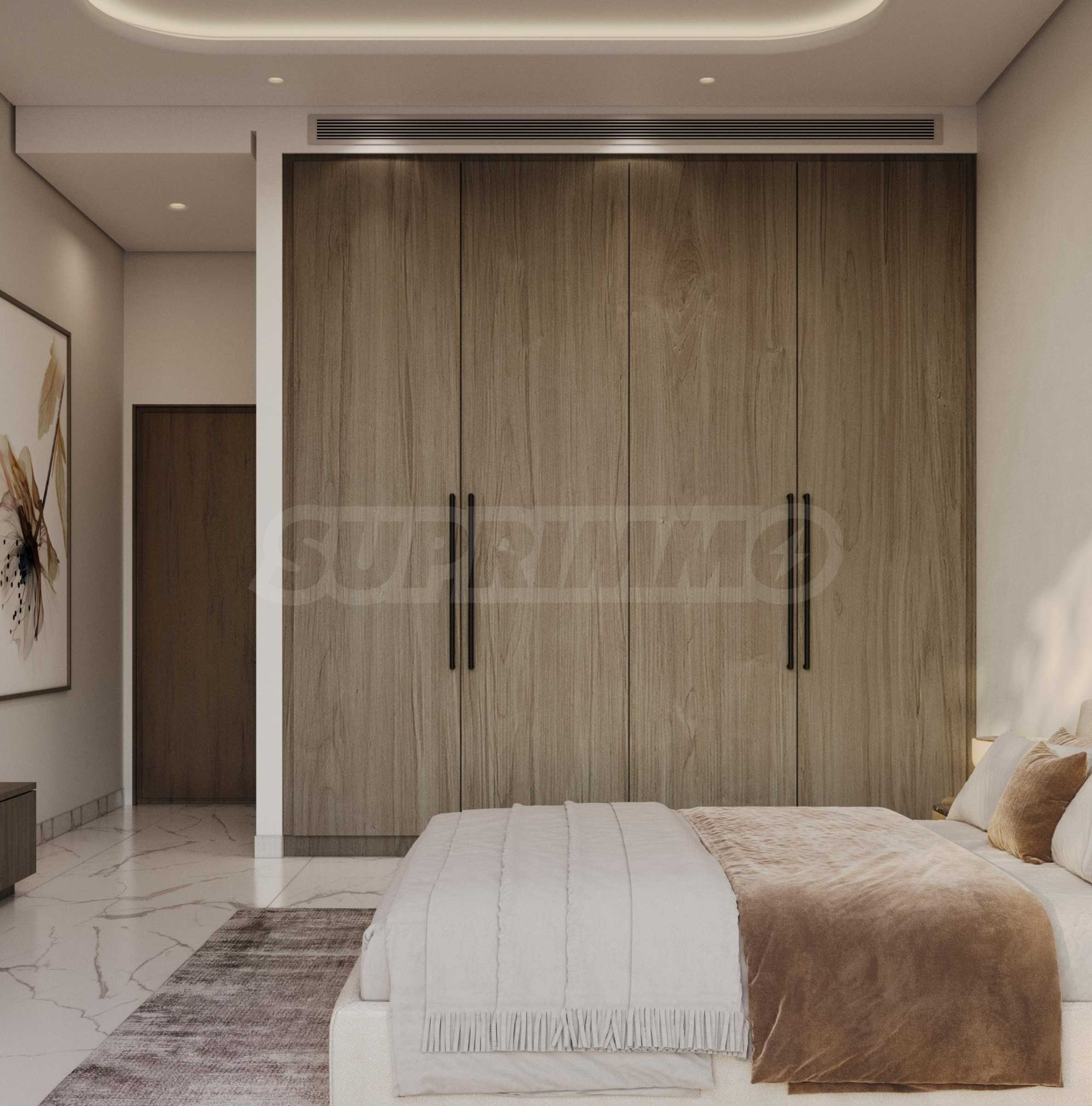 Проектът включва изискани студиа и апартаменти с 1 и 2 спални, които са напълно обзаведени с елегантен, съвременен интериор и модерен дизайн. Всеки апартамент се радва на оборудвана с висококачествени уреди кухня, модерни плотове и интелигентни разпределения, съчетаващи стил и практичност. На разположение са луксозни бани със смесители Grohe и мивки Geberit, първокласни уреди и интегрирана технология за интелигентен дом за допълнително удобство и лукс.