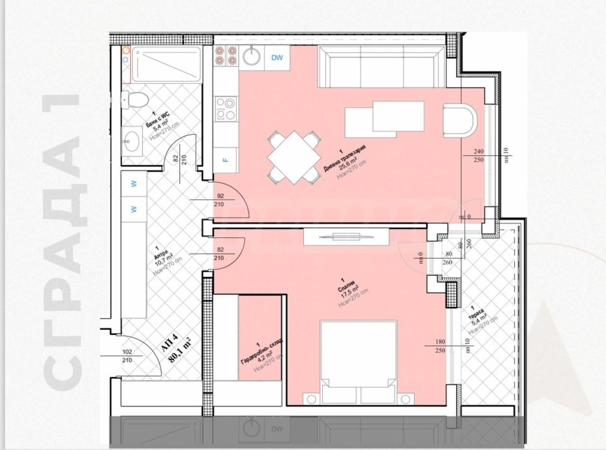 - дневна с кухненски кът и трапезария;