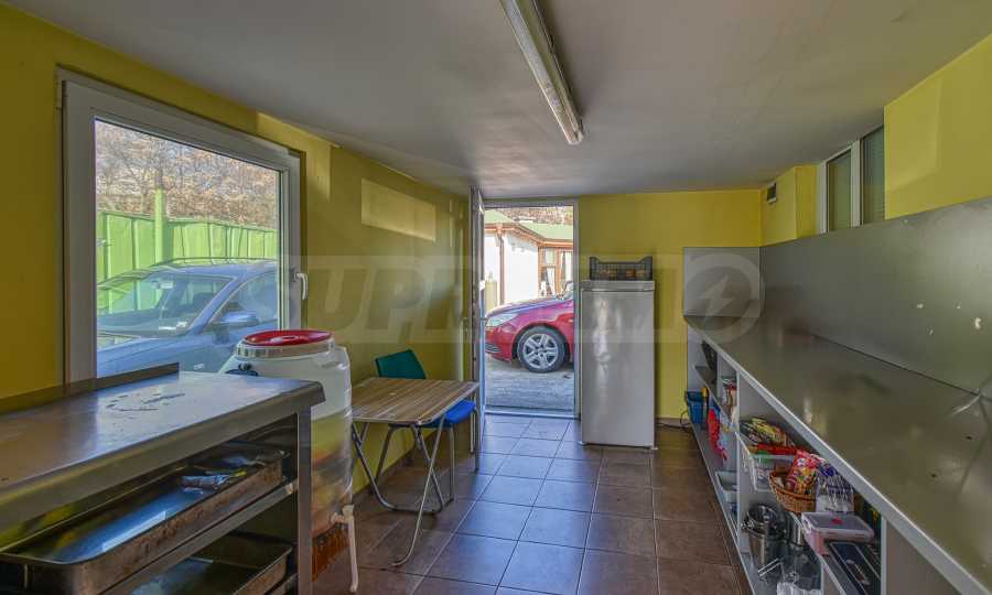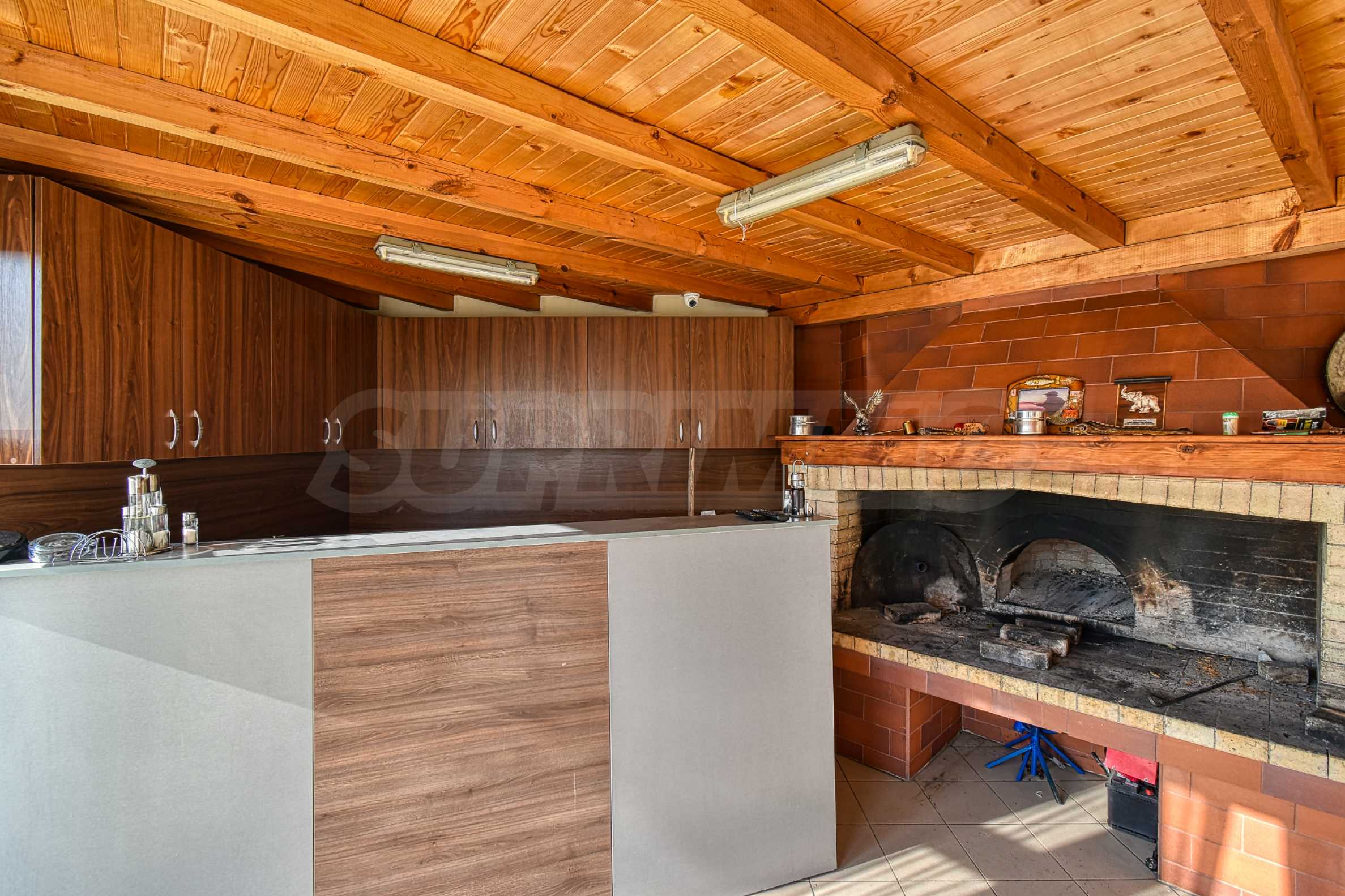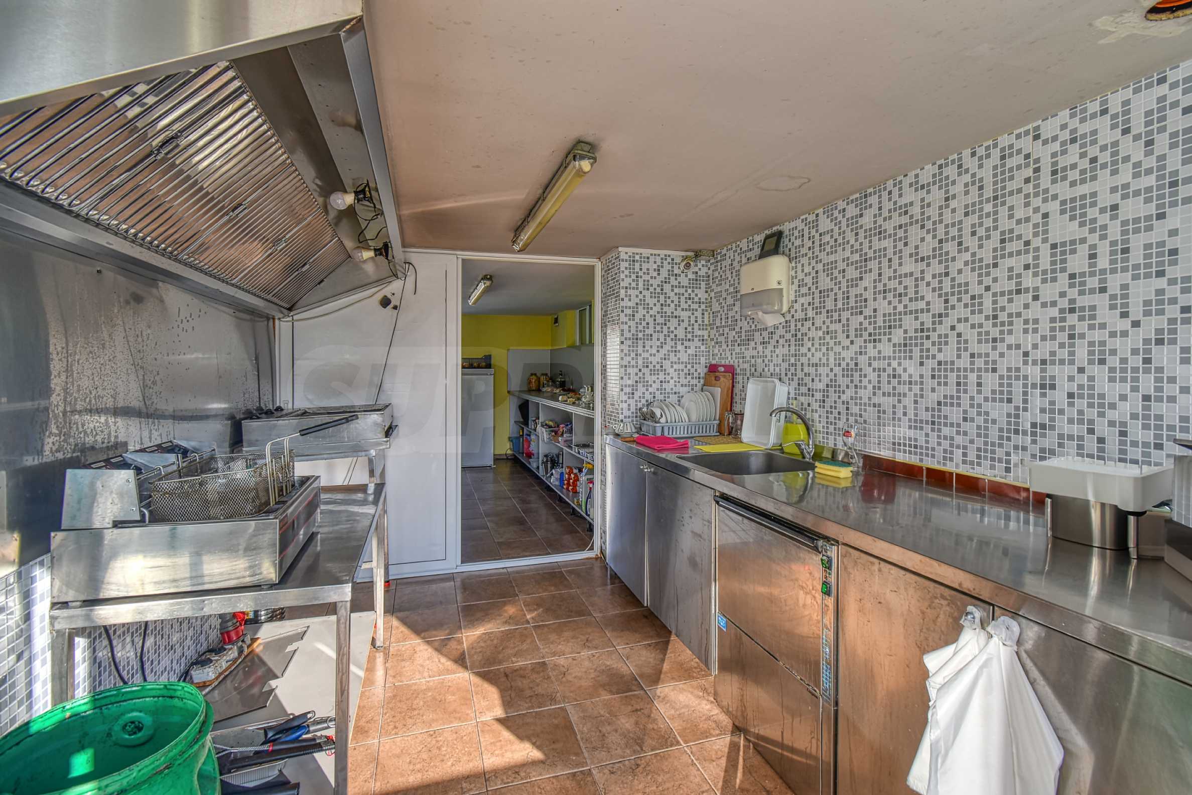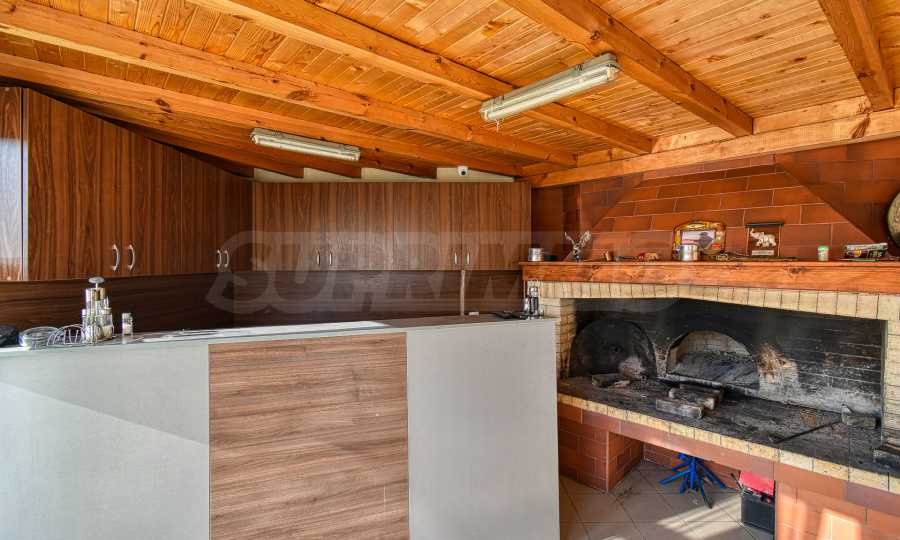Самостоятелно просторно помещение в задната част на обекта, от масивна стена и сглобяема конструкция, която включва голяма пещ, бар плот, шкафове, мивка и място за събития с маси и столове. Непосредствено се намират и две тоалетни за клиенти.