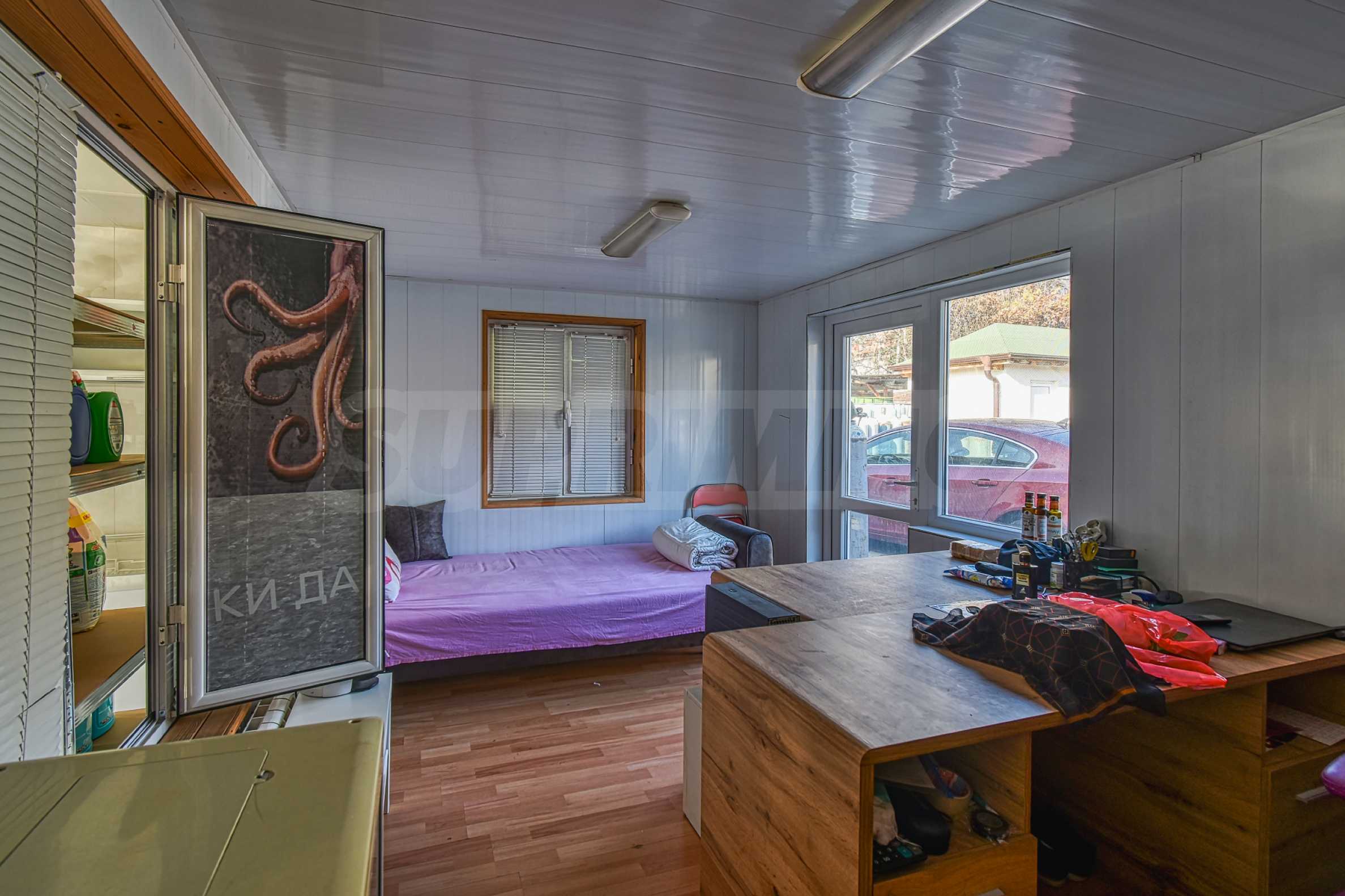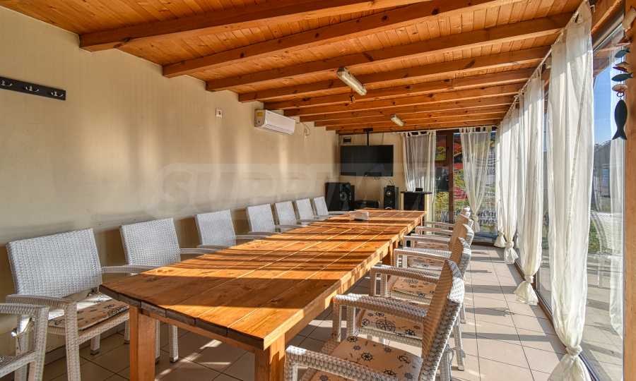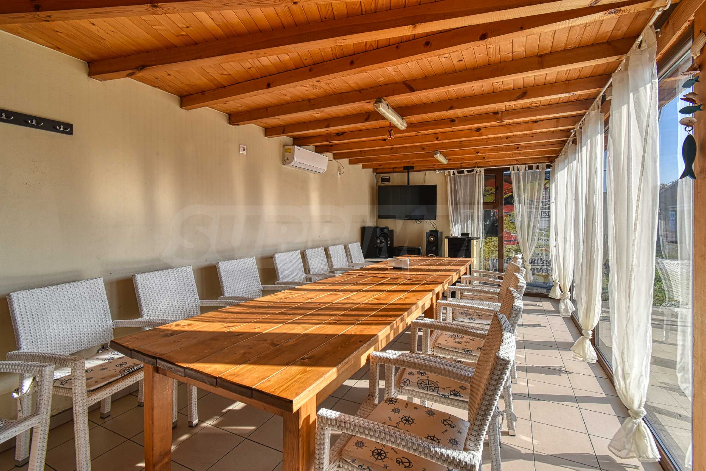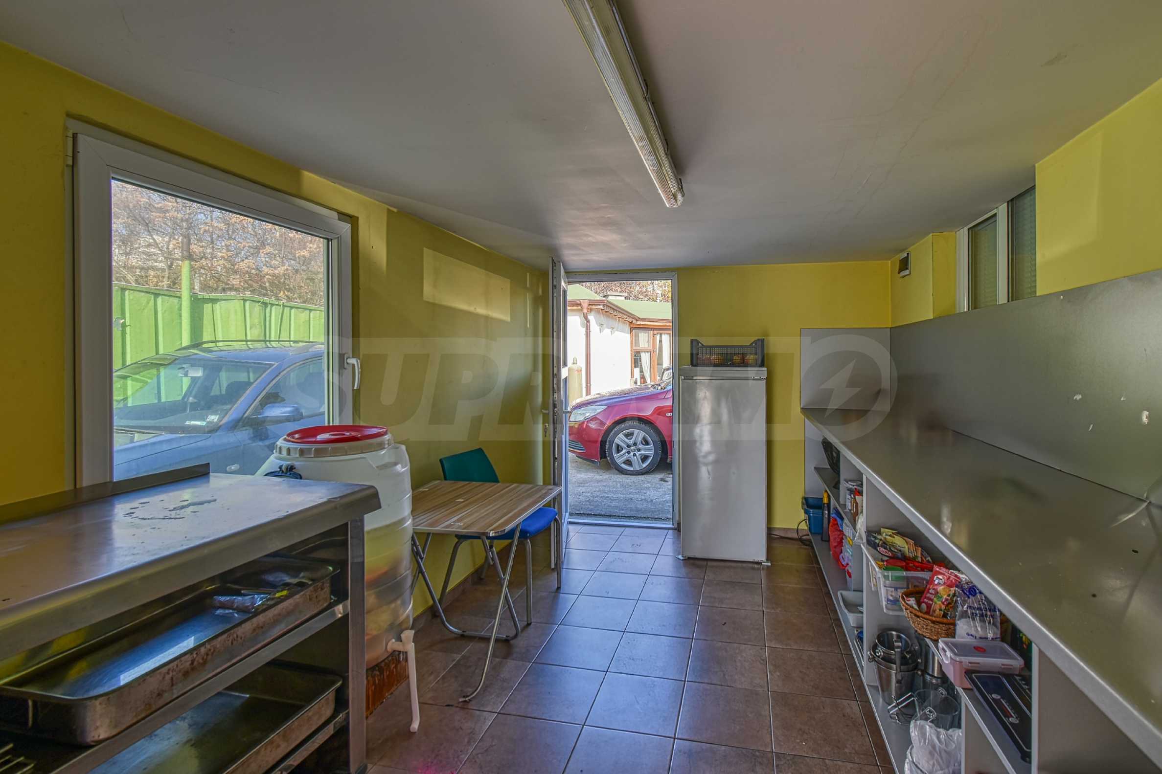 Самостоятелно просторно помещение в задната част на обекта, от масивна стена и сглобяема конструкция, която включва голяма пещ, бар плот, шкафове, мивка и място за събития с маси и столове. Непосредствено се намират и две тоалетни за клиенти.