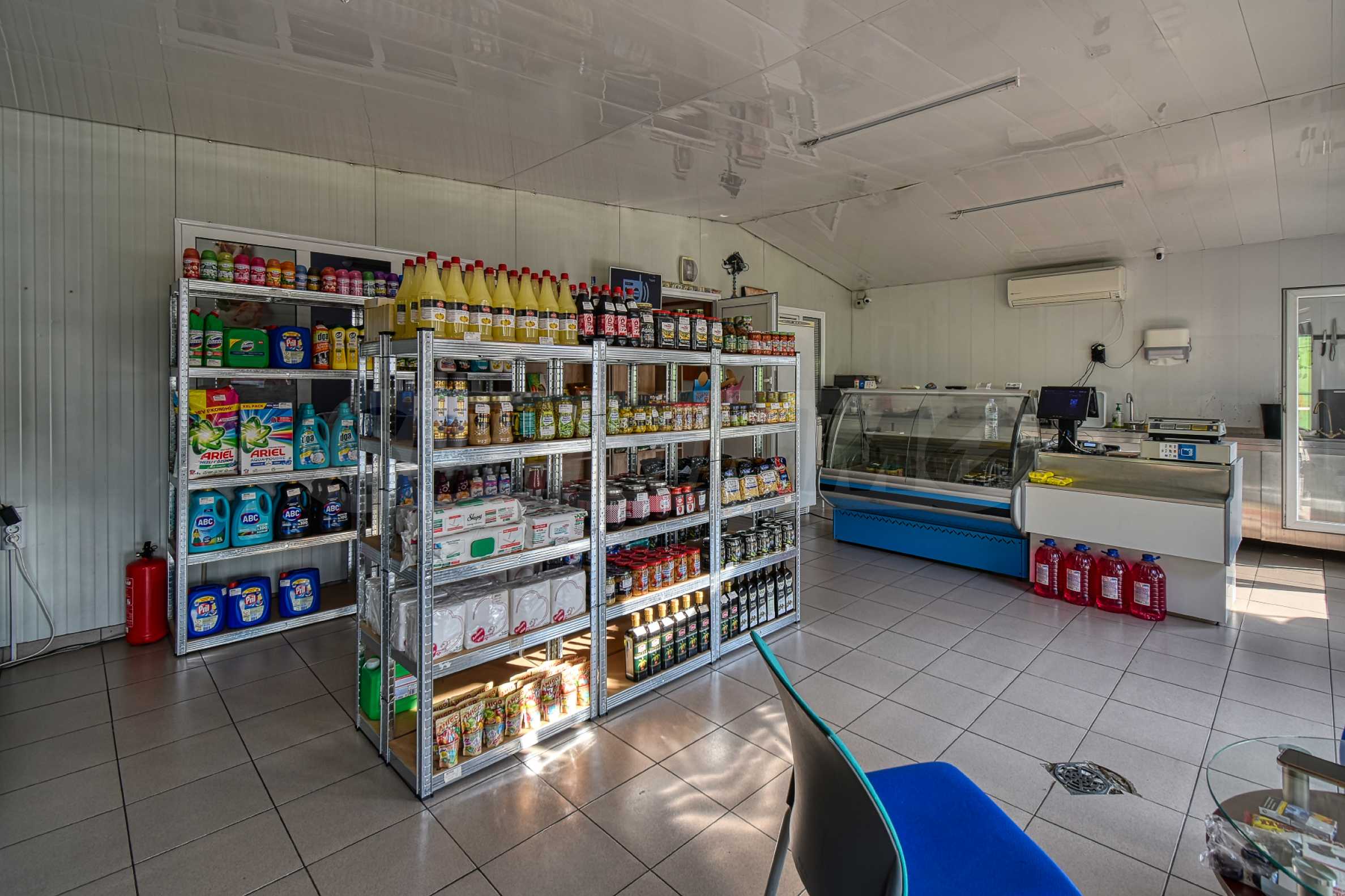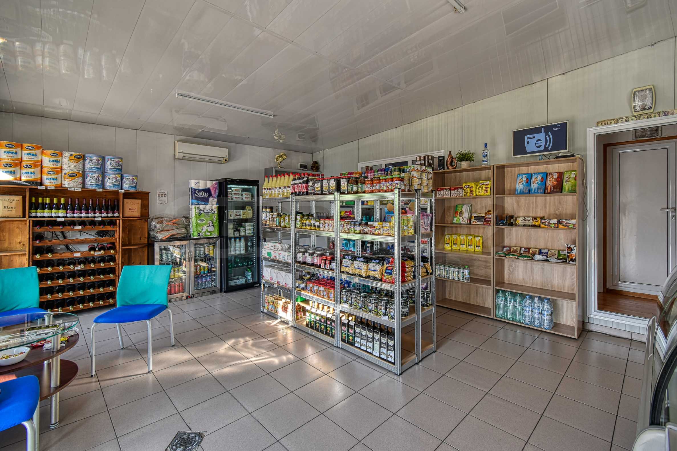 Централна сграда с напълно оборудван магазин с витрина, стелажи, хладилници, фризери и всичко необходимо за безпроблемното обслужване на клиенти.