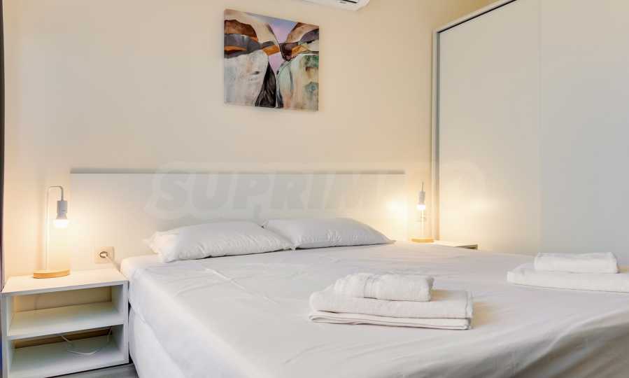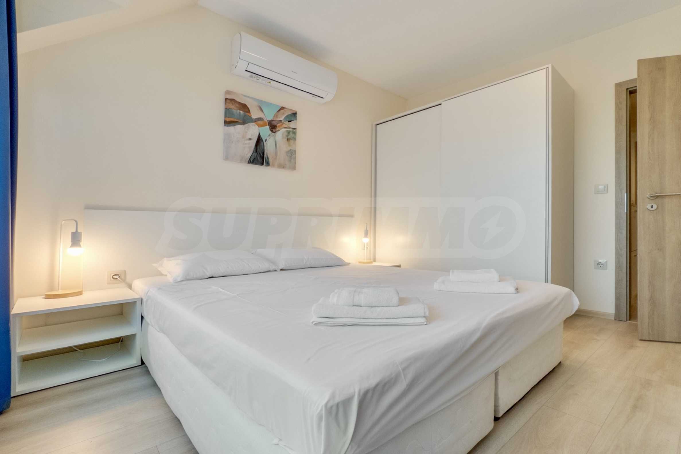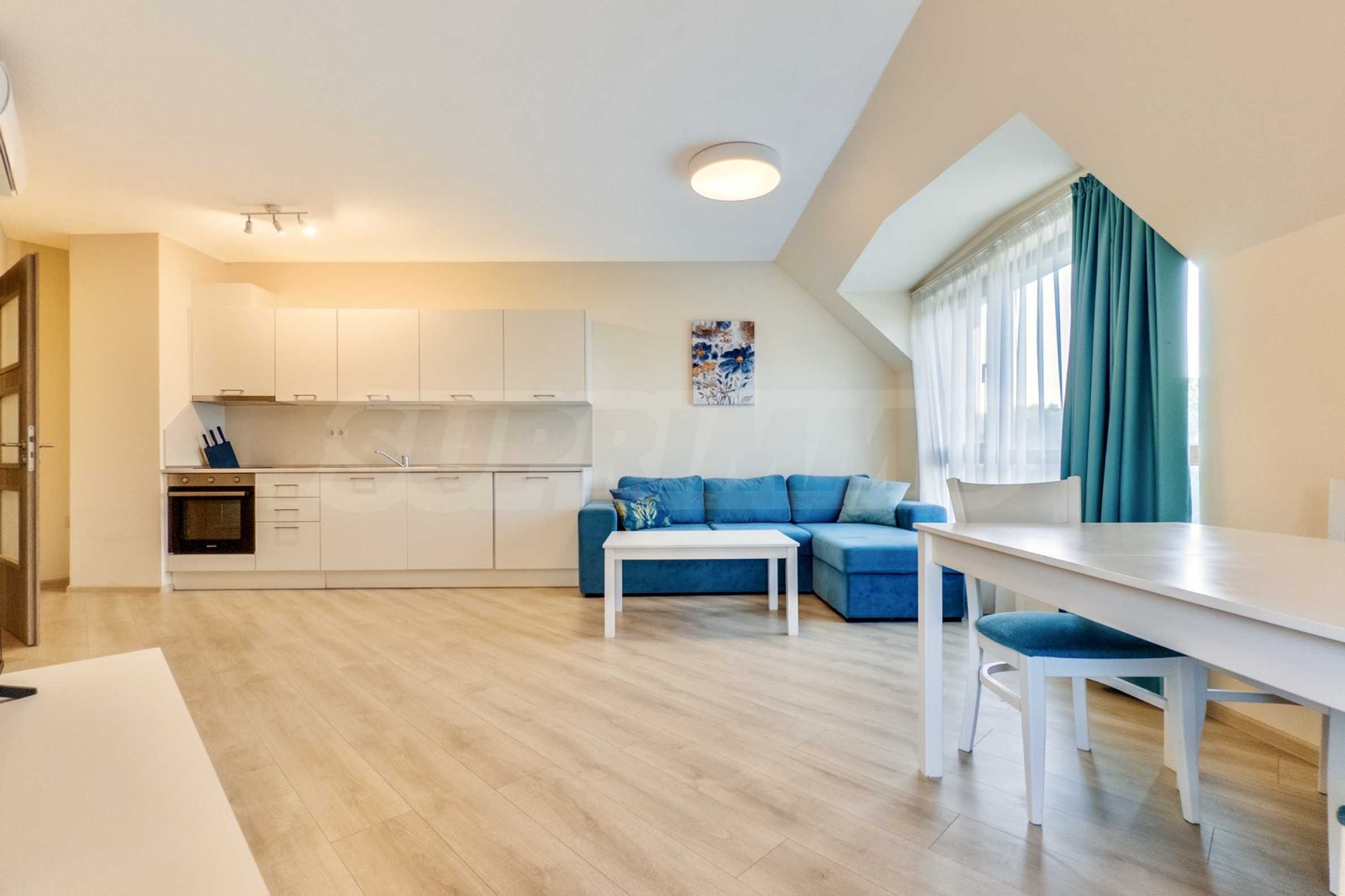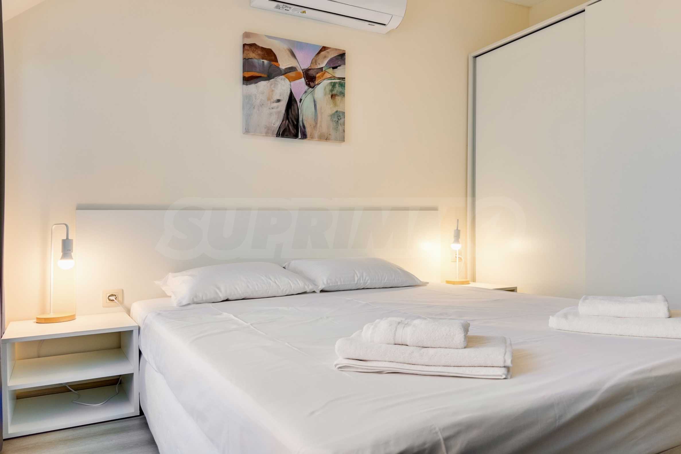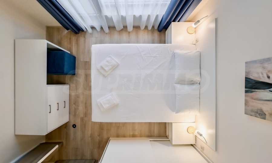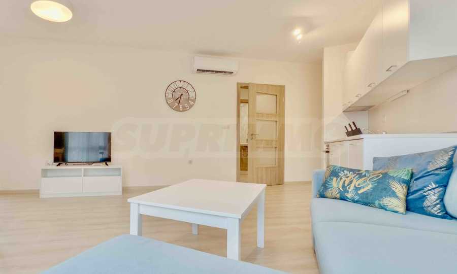 Представяме уютно обзаведен двустаен апартамент под наем, в луксозен затворен комплекс на брега на морето, в кв. "Аспарухово" на град Варна.