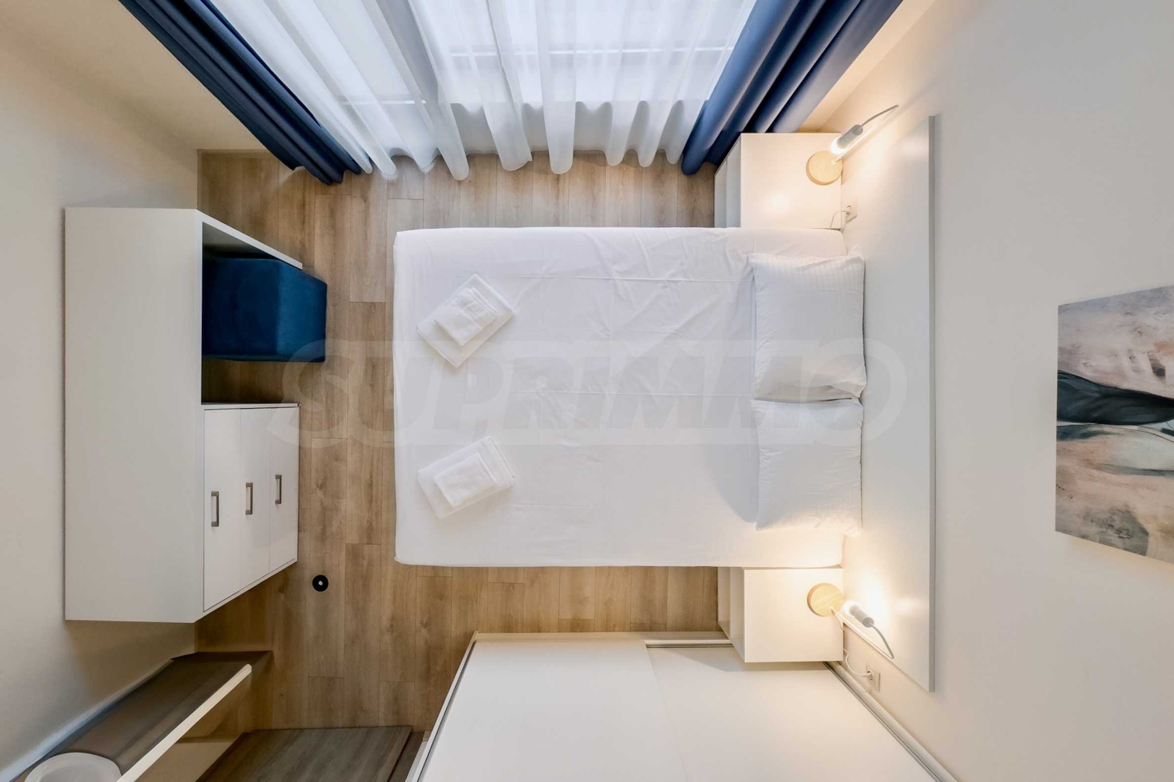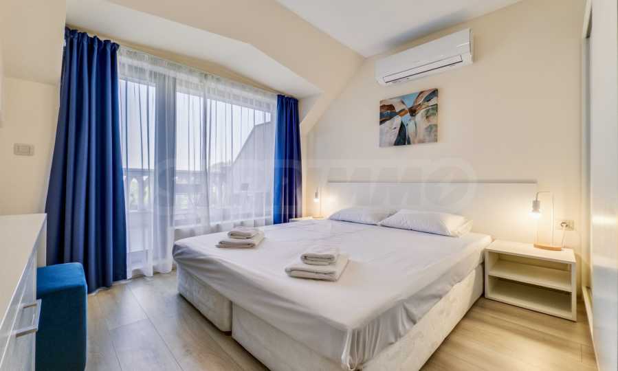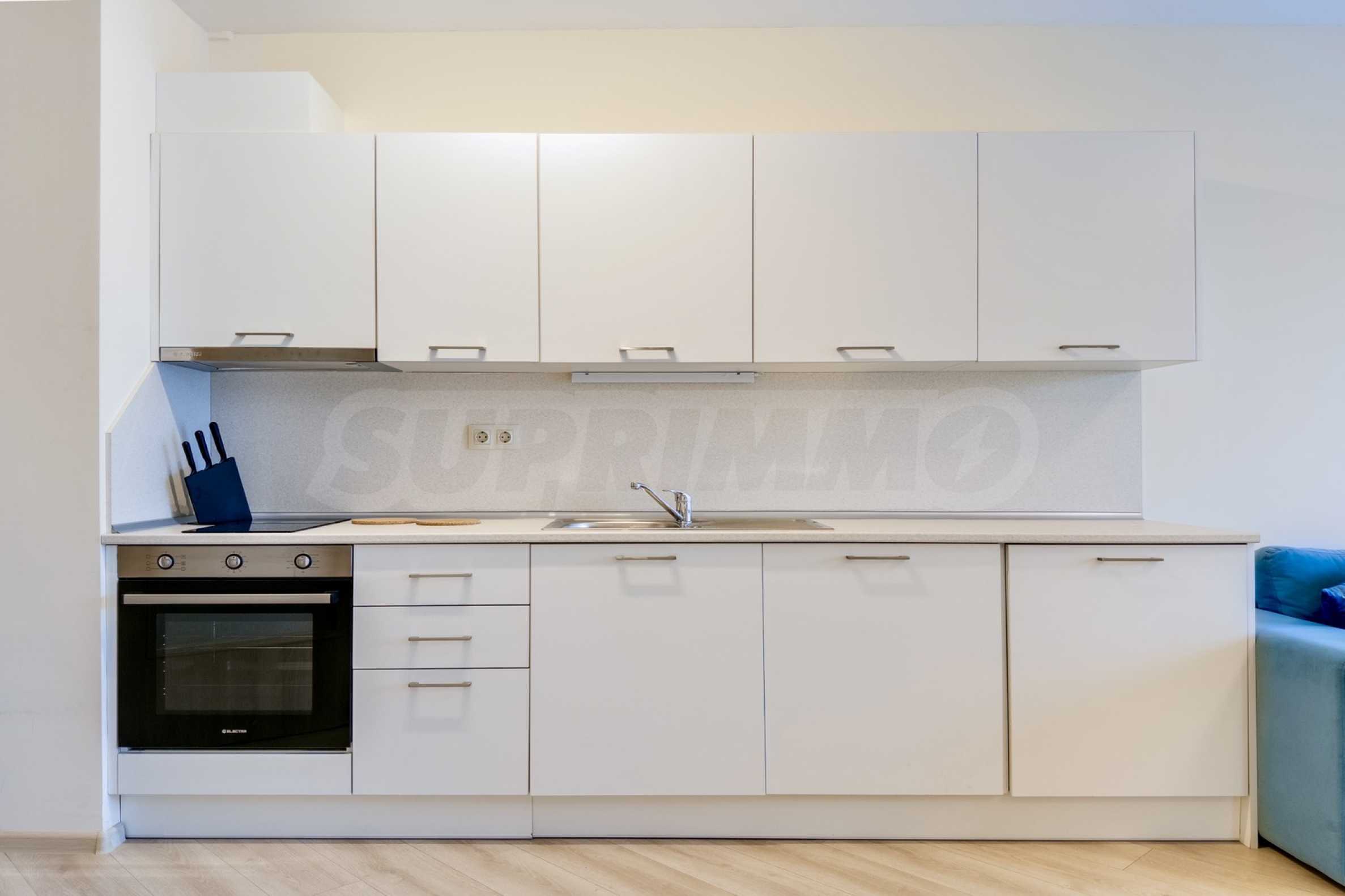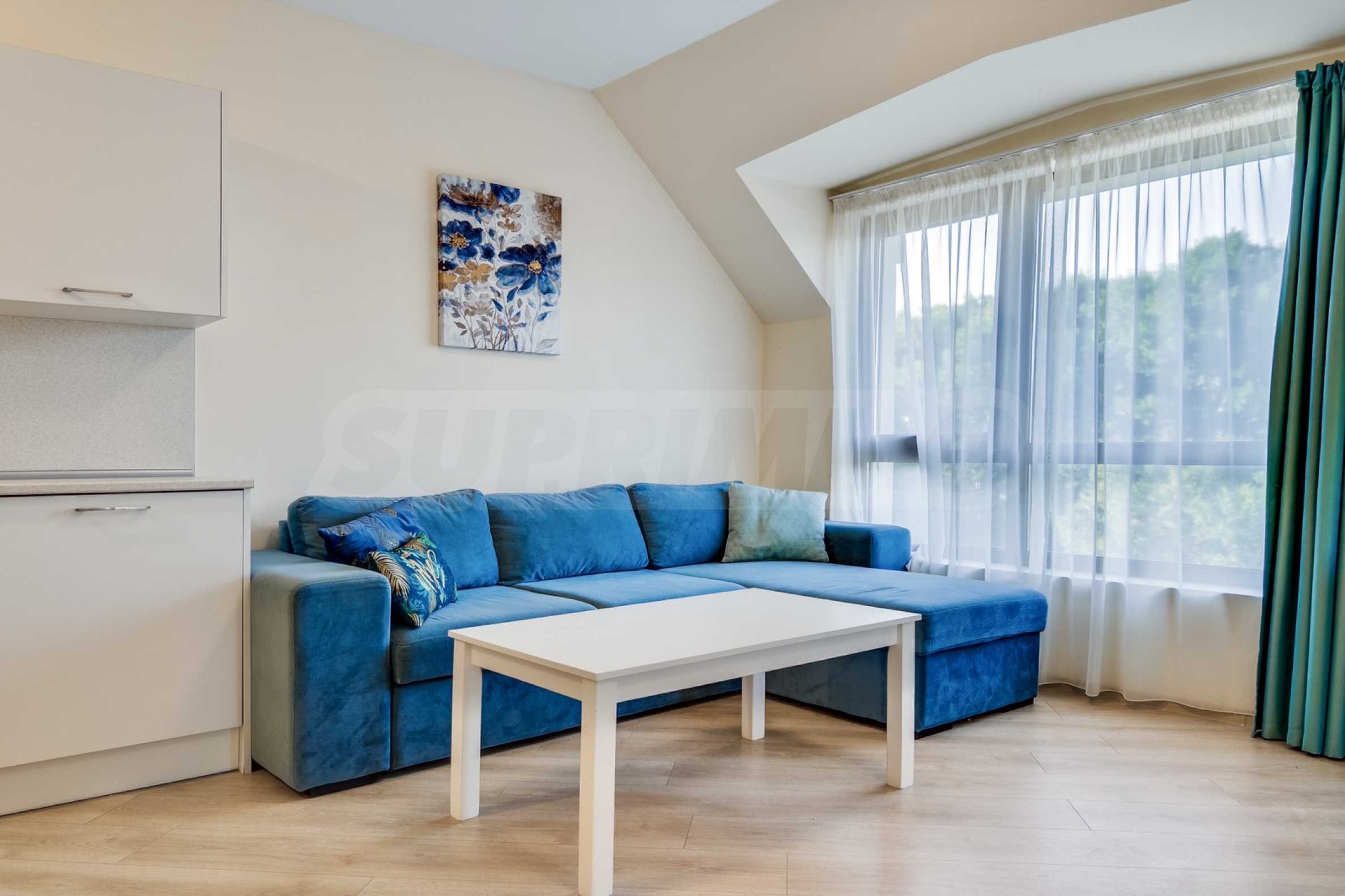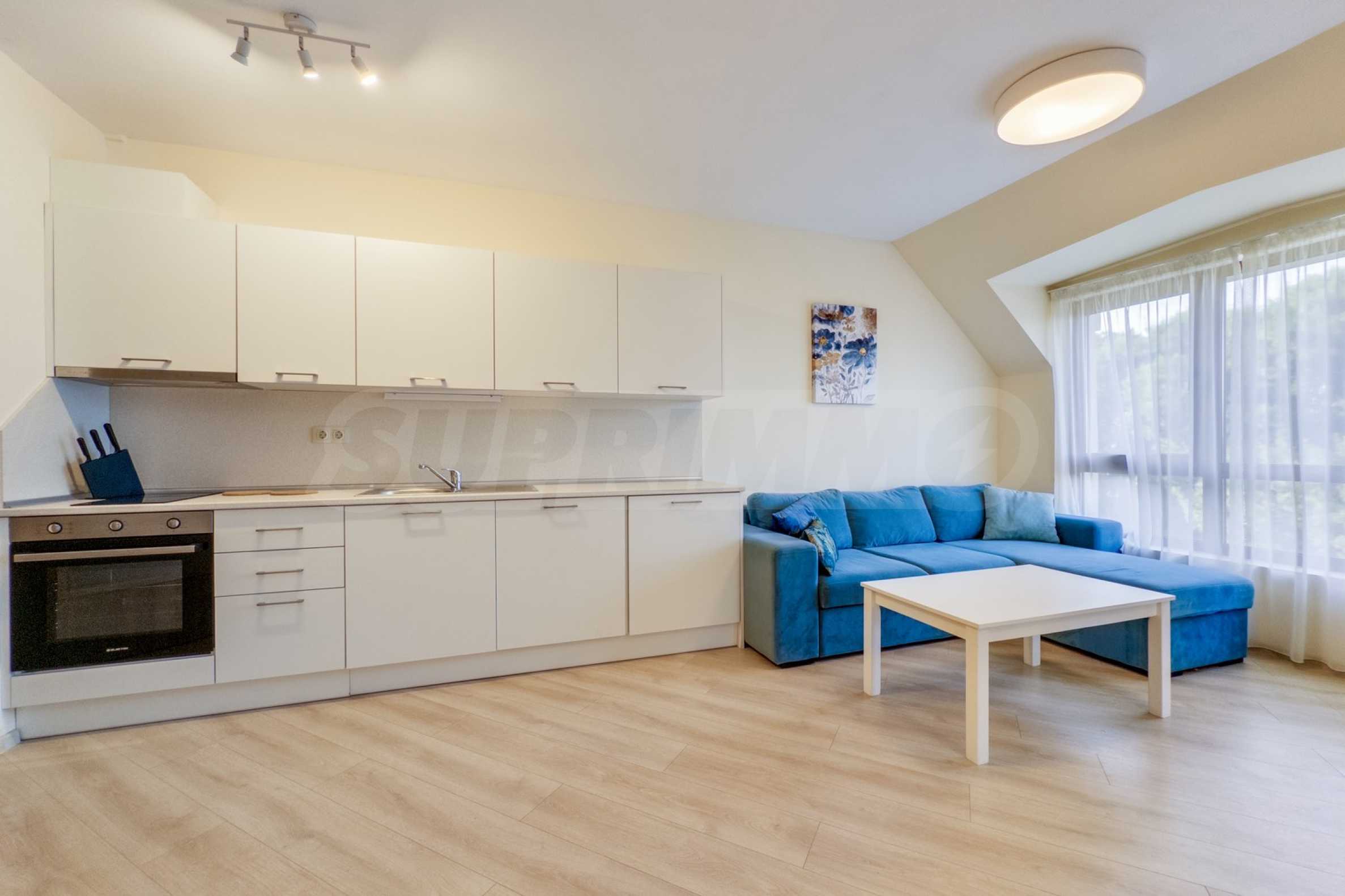 Представяме уютно обзаведен двустаен апартамент под наем, в луксозен затворен комплекс на брега на морето, в кв. "Аспарухово" на град Варна.