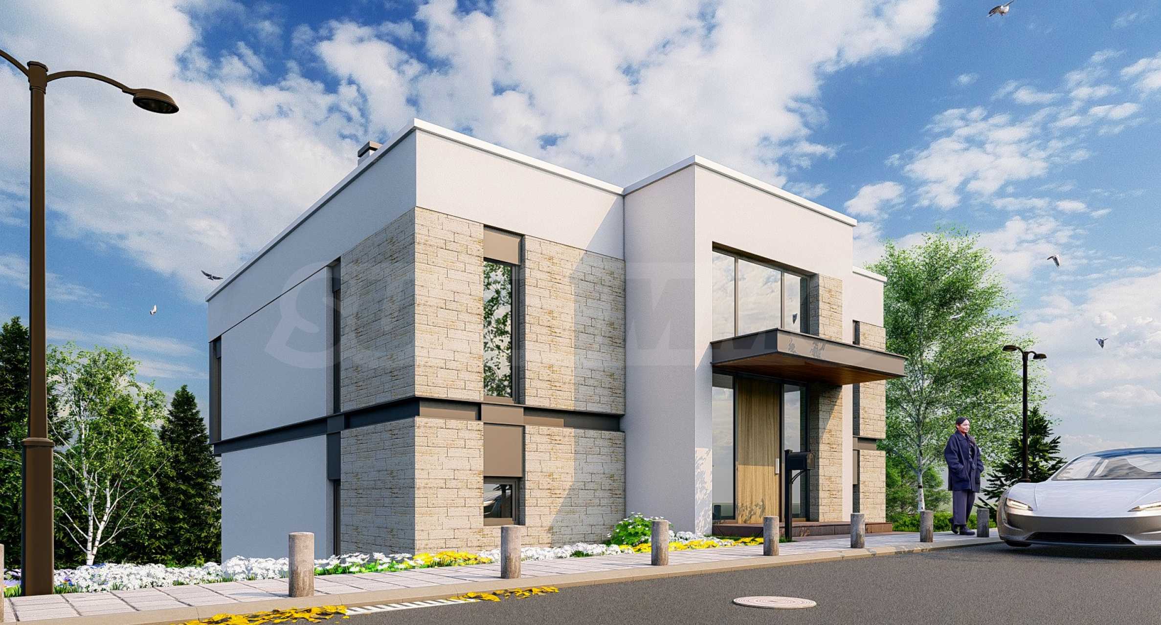 Къщите в комплекса са проектирани на два етажа в модерен изчистен стил и разполагат със собствен двор до 450 кв.м, който е идеален за релаксация или за дружески събирания на открито. Строителството е с висок клас материали и с изключителна прецизност и внимание към детайла. Уникалността на терена и разположението на отделните къщи осигуряват панорамна и успокояваща гледка на всеки имот.