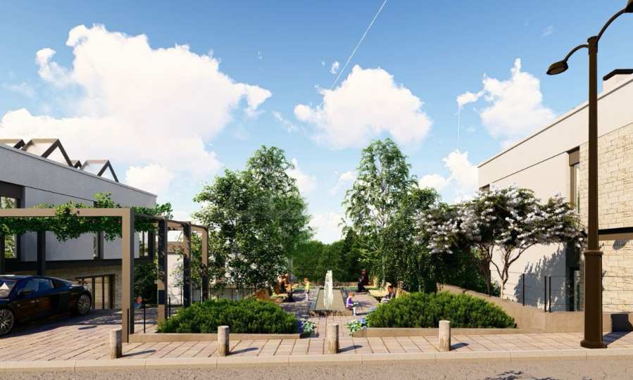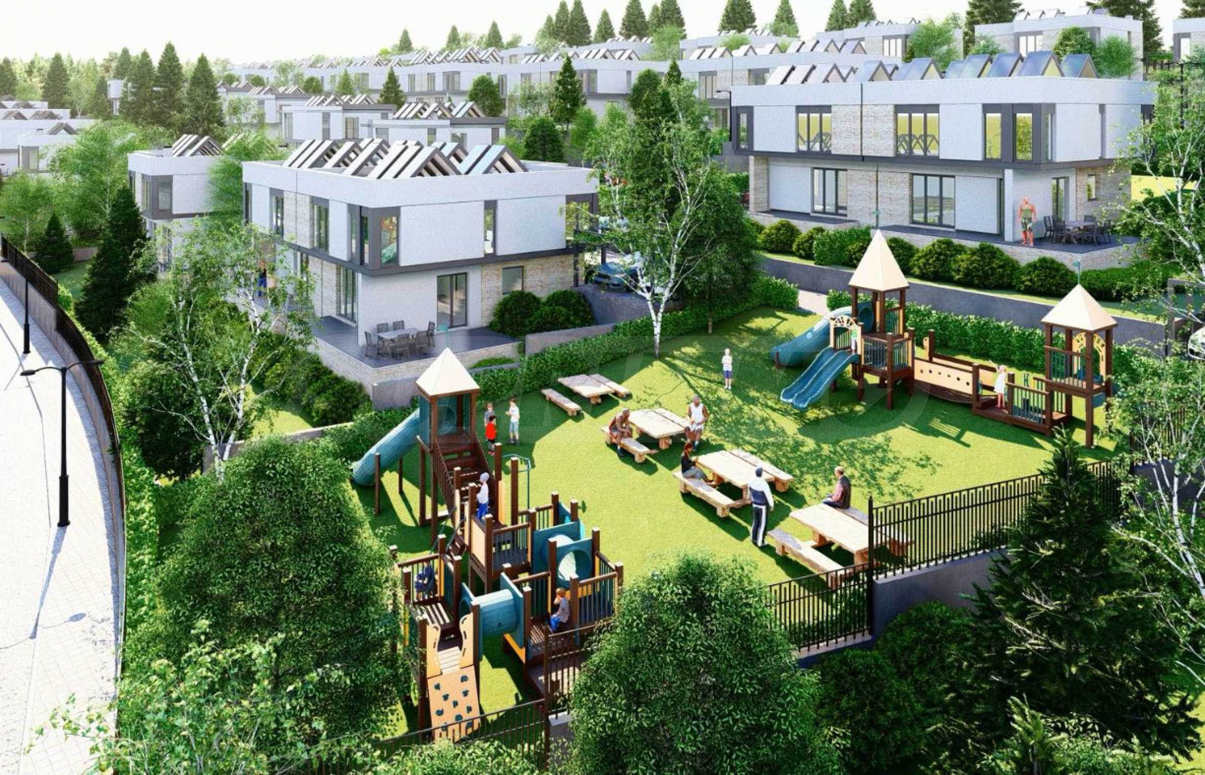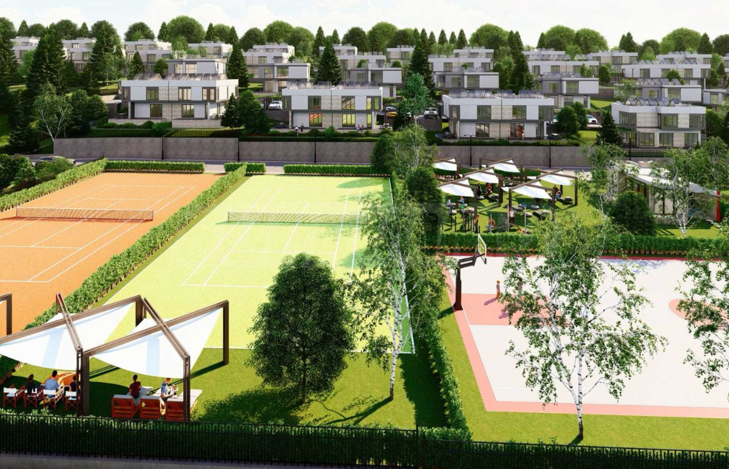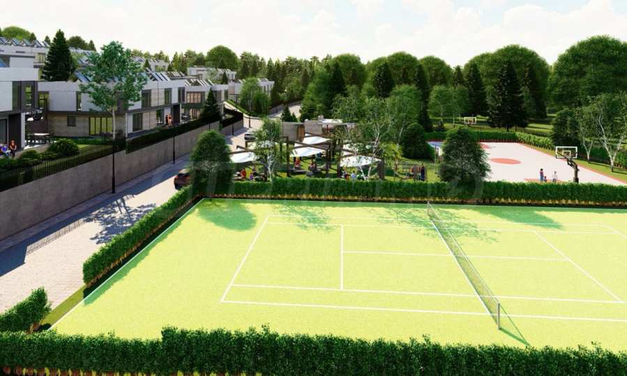 Проектът се състои от 70 кокетни и модерни къщи със самостоятелен двор, обединени в затворен комплекс с контрол на достъпа и отлично планирани общи пространства, отговарящи на най-високите изисквания. Сред осигурените удобства са две детски площадки, игрища за тенис, футбол и баскетбол, както и зони за разходка и пикник. Теренът, върху който е изграден комплекса е с югоизточно изложение, което осигурява достатъчно слънчева светлина и топлина през целия ден, както и пленяваща гледка към Витоша планина. Възползвайте се от възможността да живеете в спокойна и уютна среда, която ще ви предложи всички удобства на градския живот сред много зеленина и чист въздух.