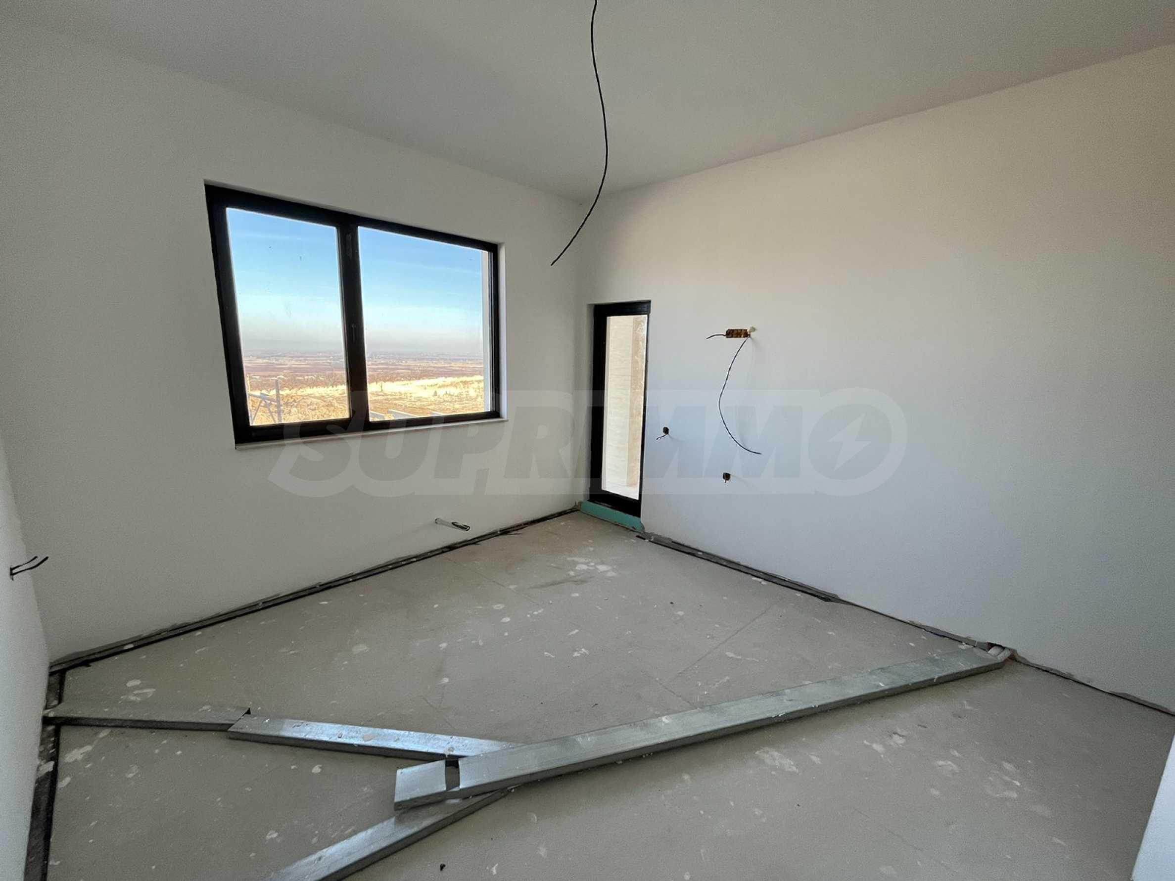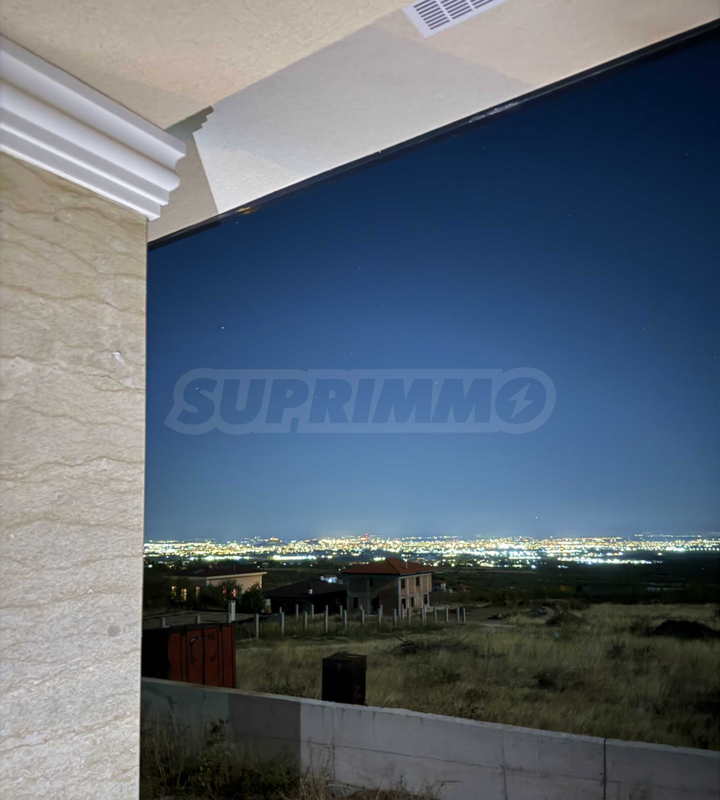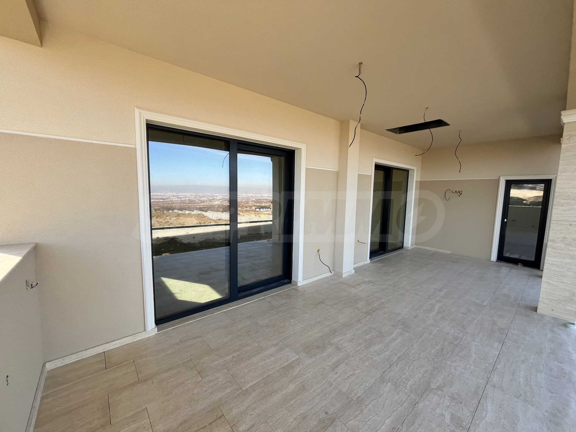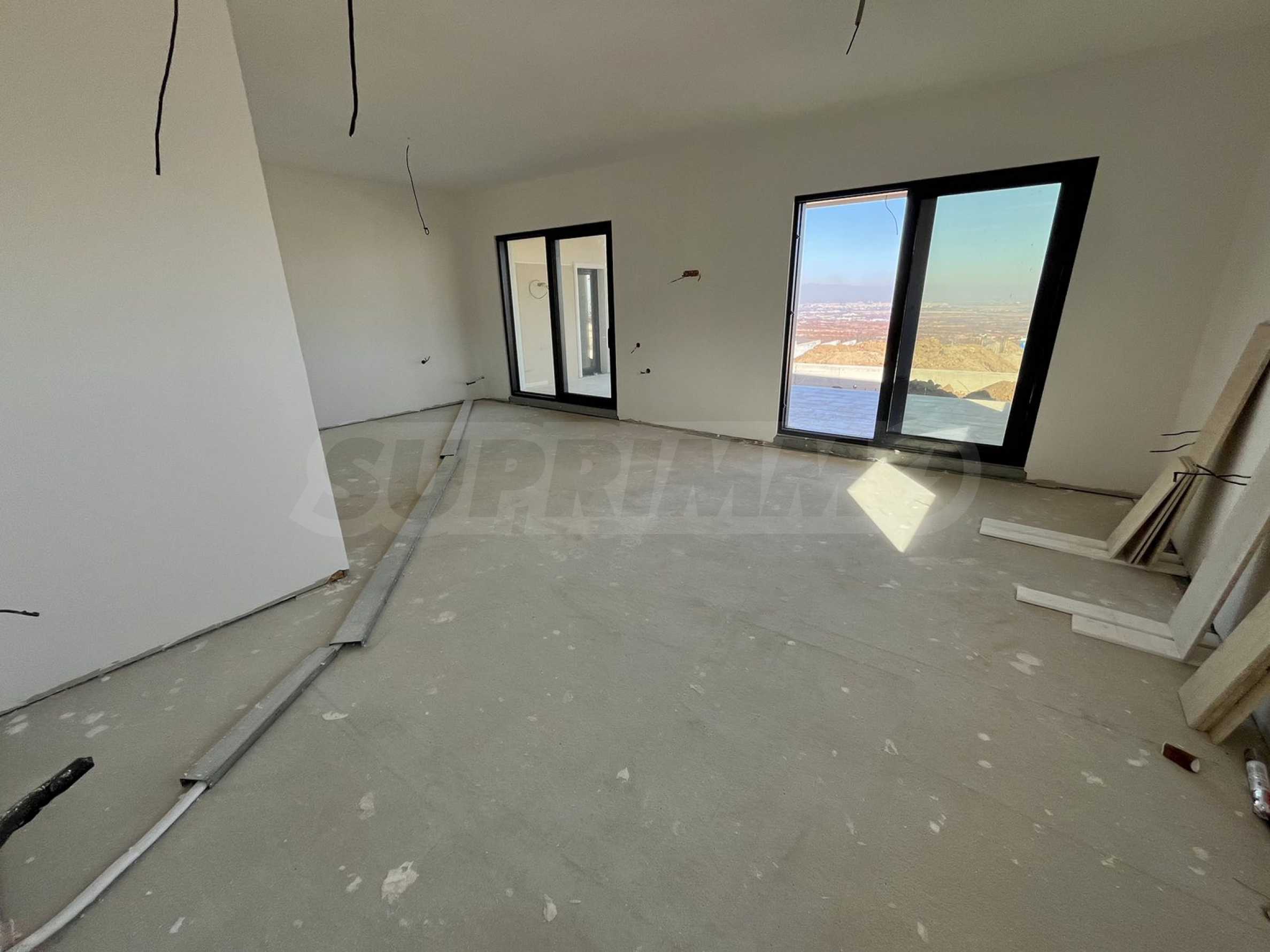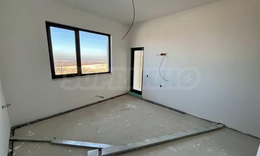 - светла всекидневна с кухненски бокс и излаз на покрита веранда, с гледка към града и Стара планина;