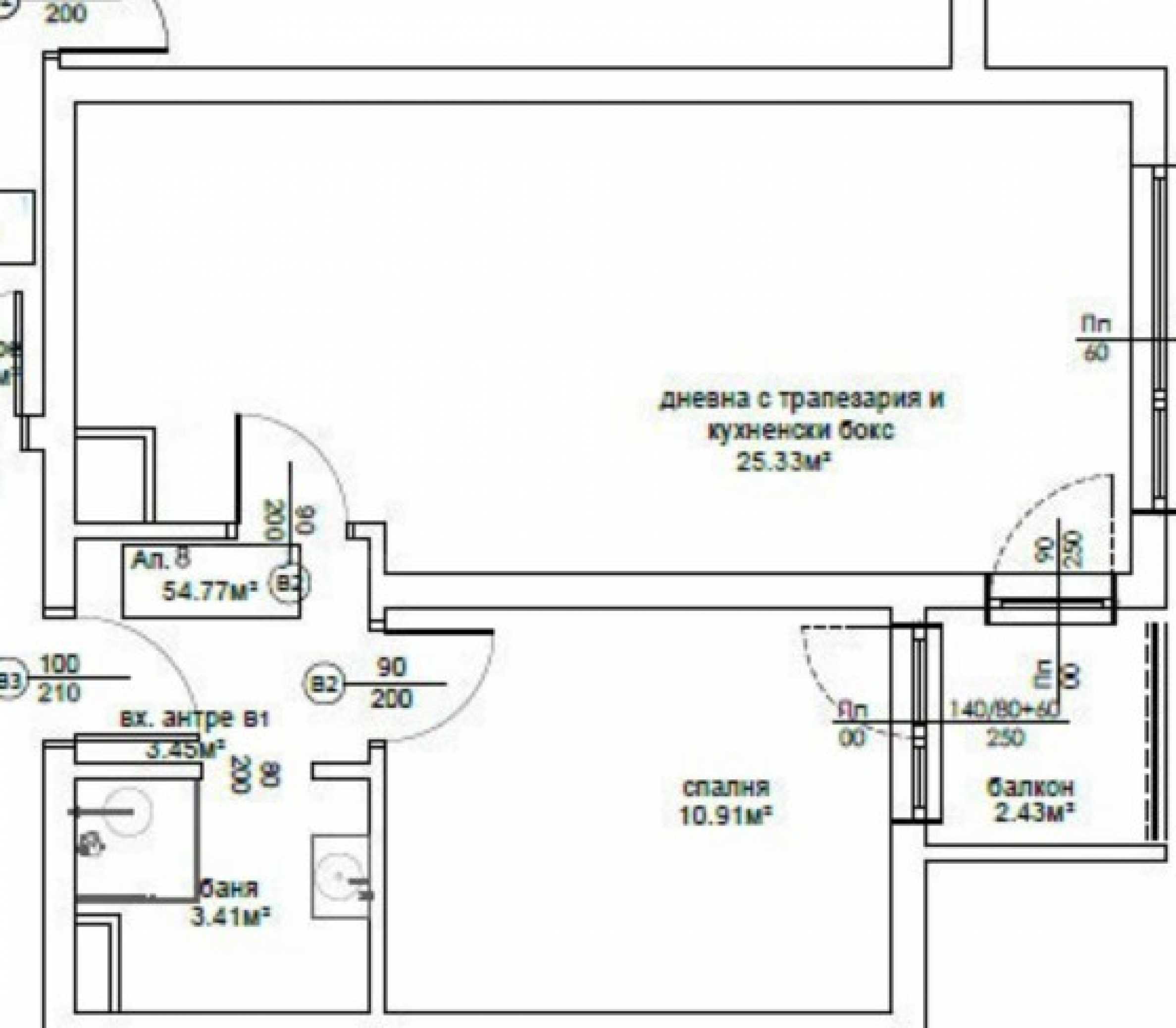 Разпределението на двустайния апартамент е следното: