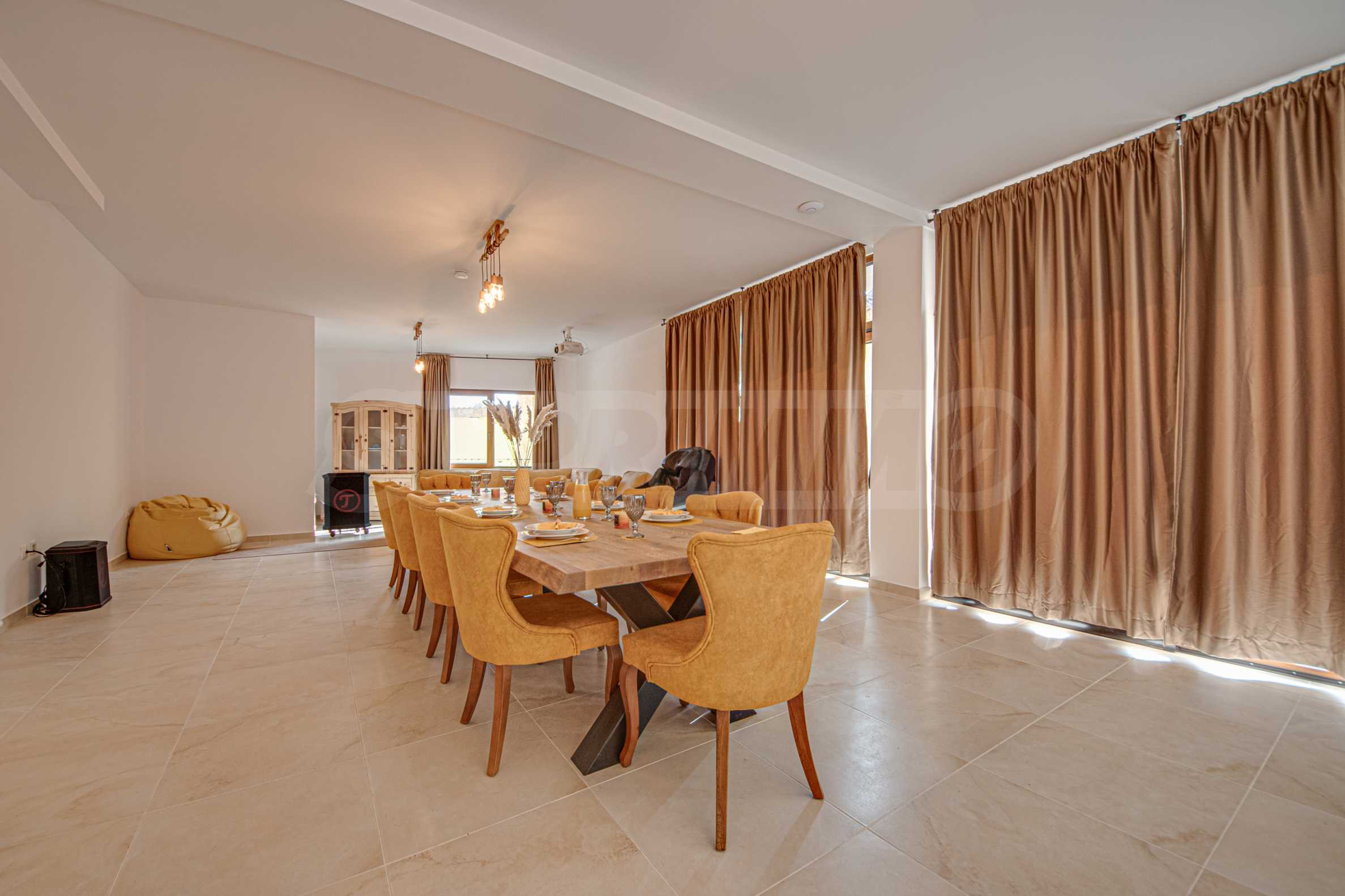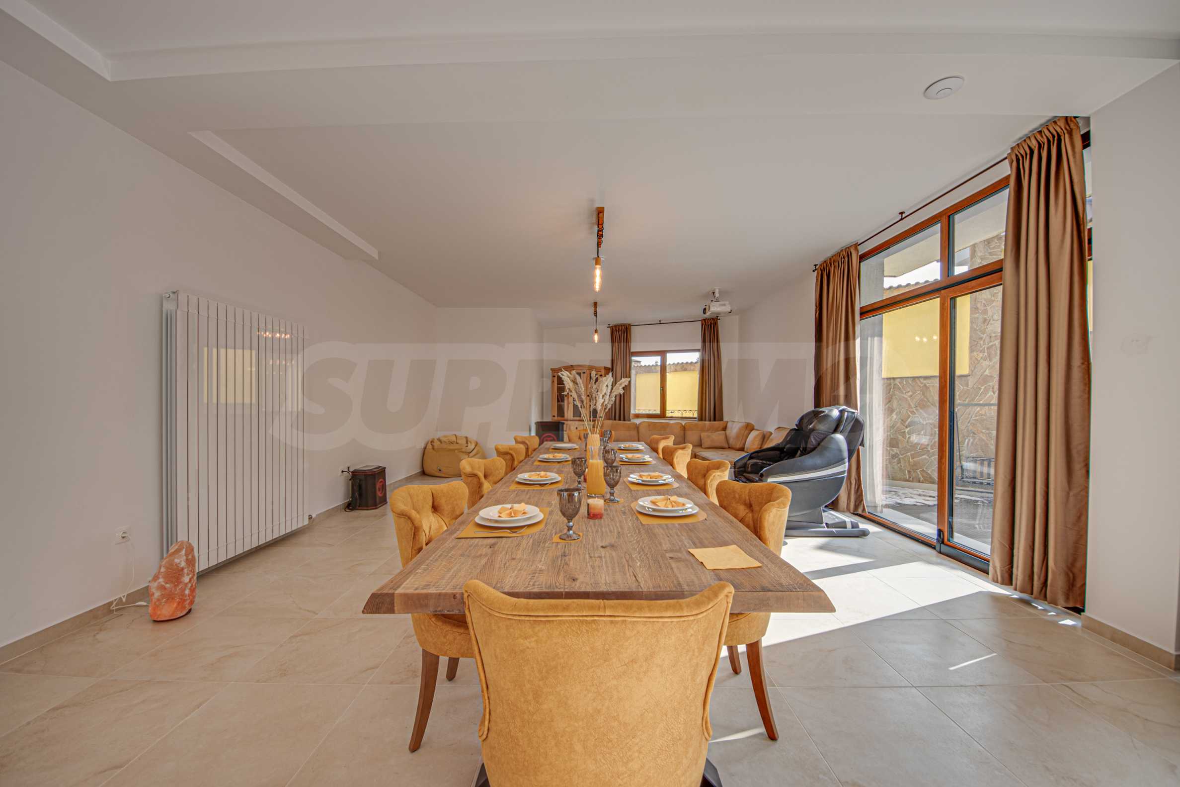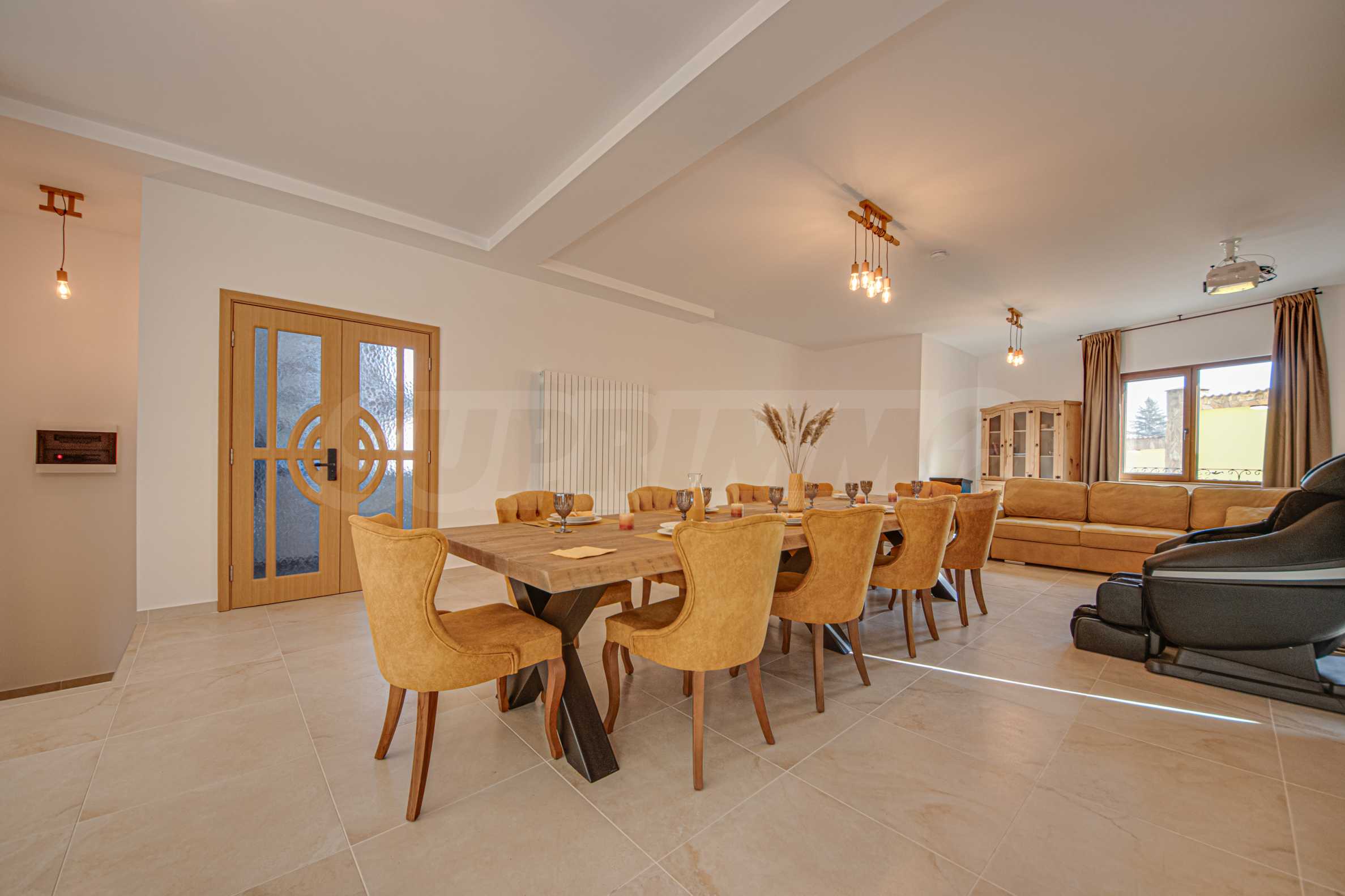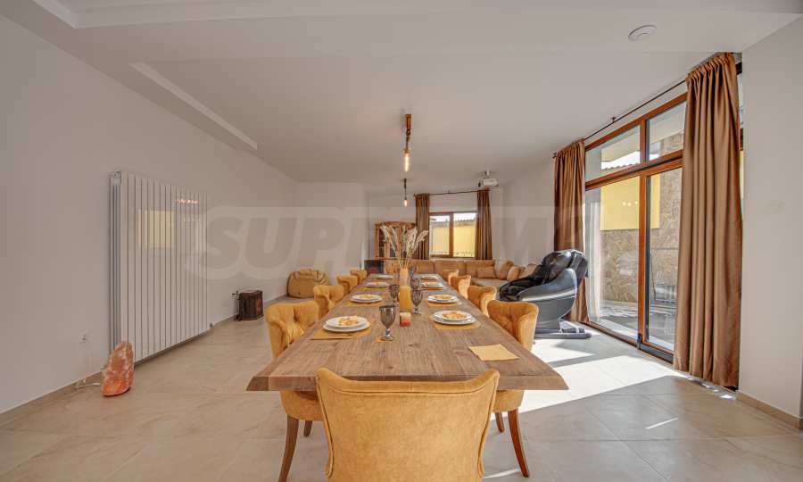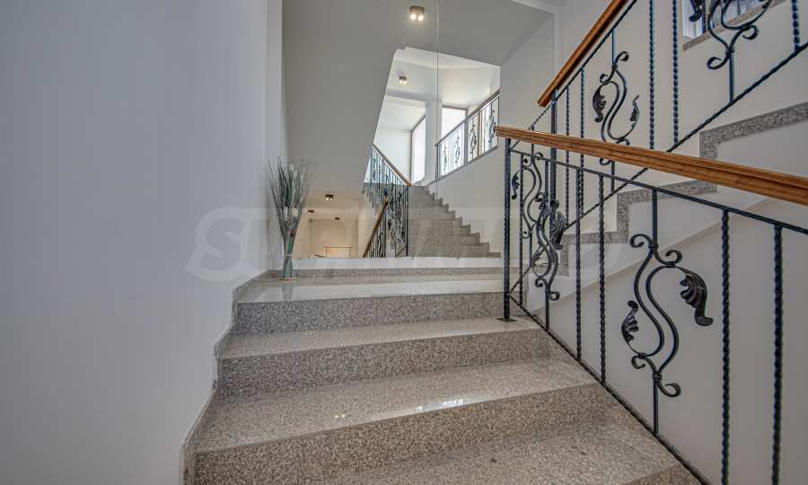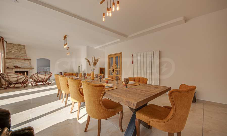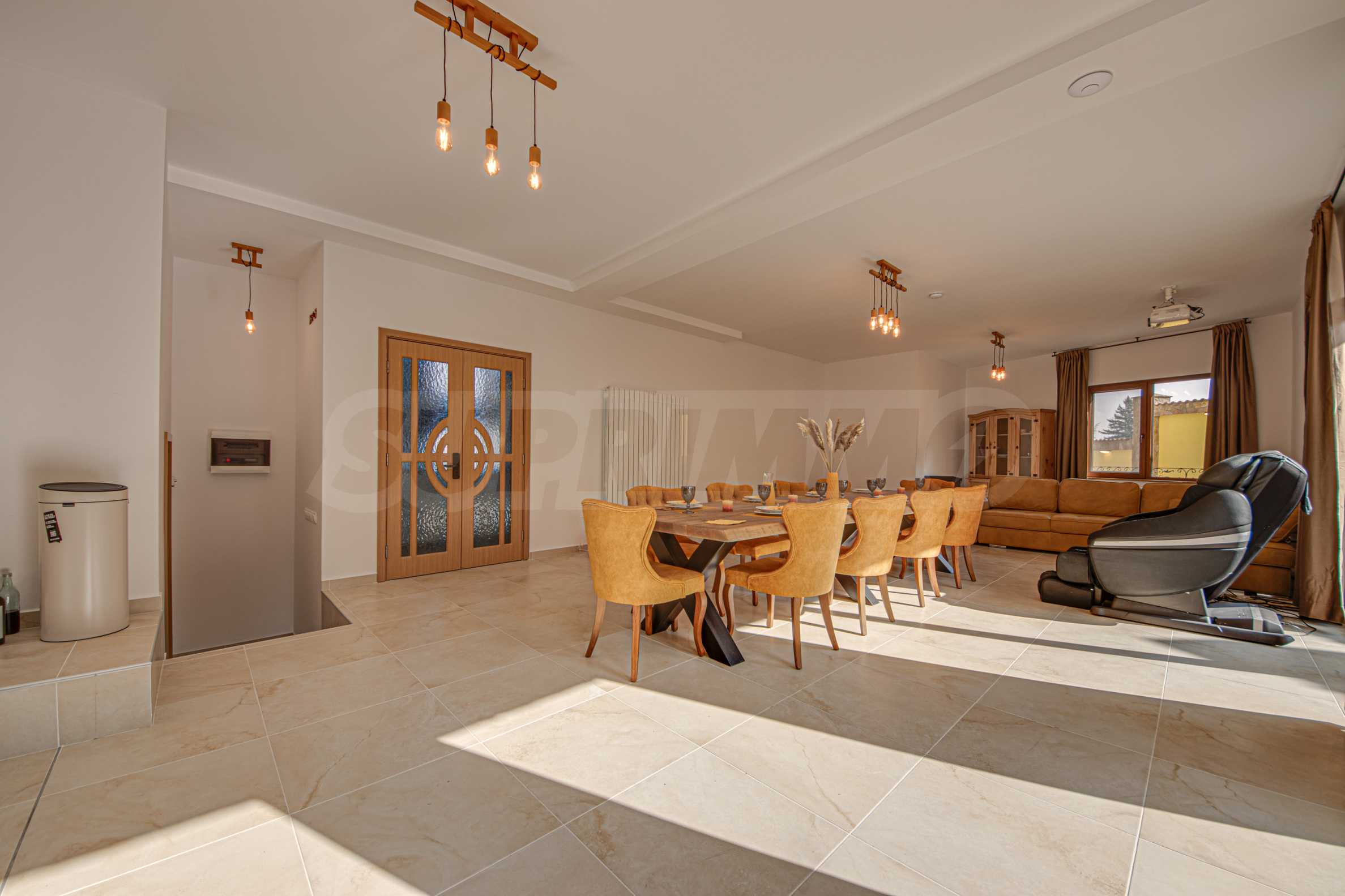 - първи етаж 234 кв.м: дневна с камина с огромна декинг тераса, каминна стая, кухня, двустаен апапартамент, офисна стая, тоалетна за гости;