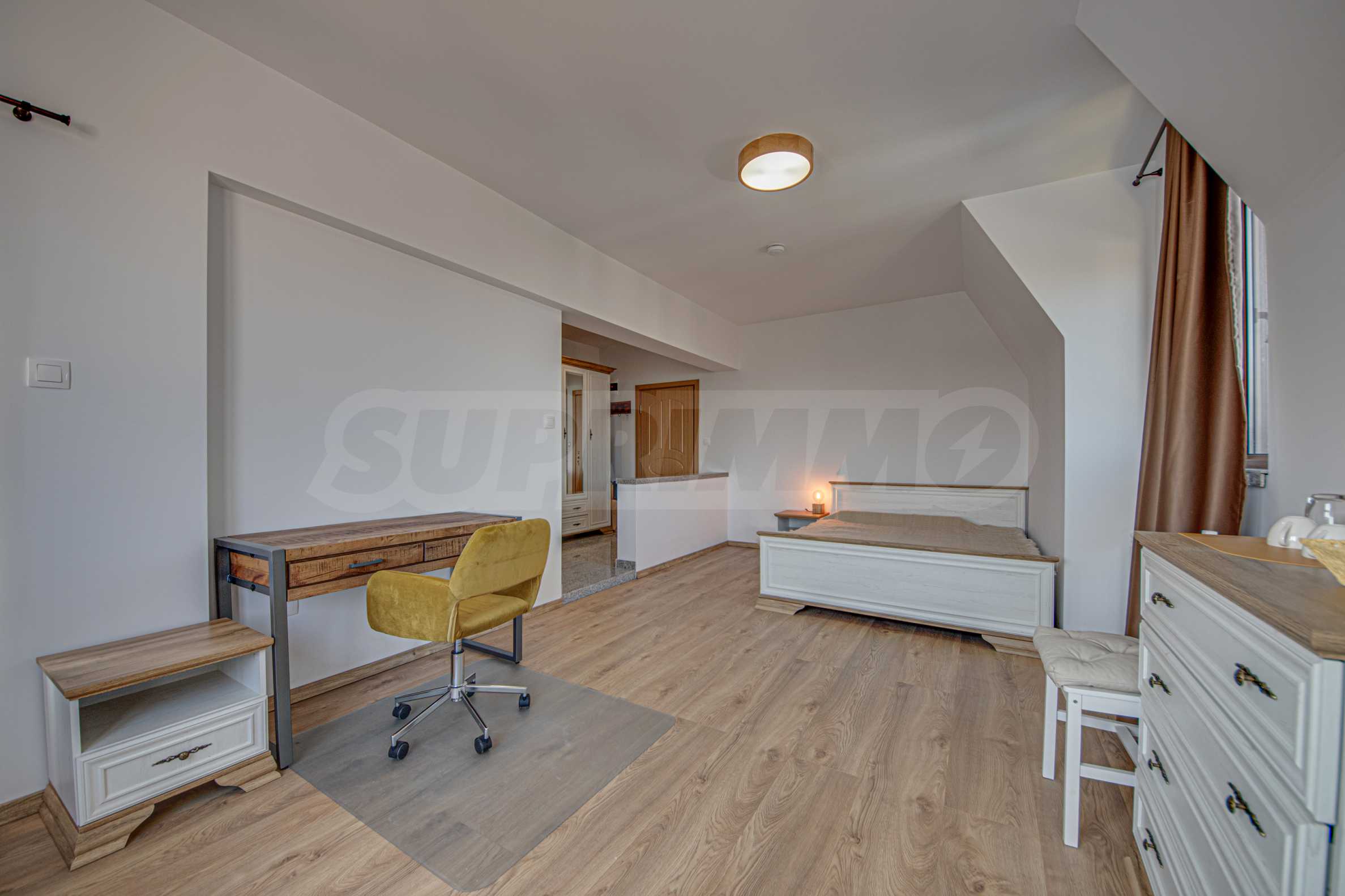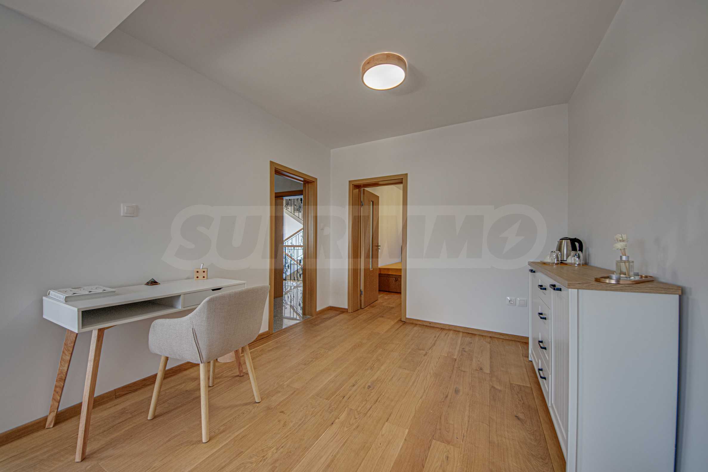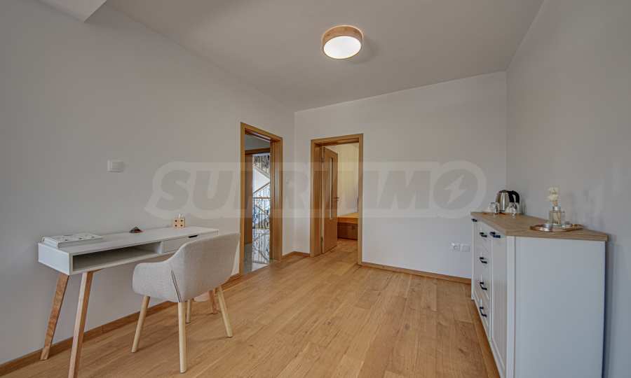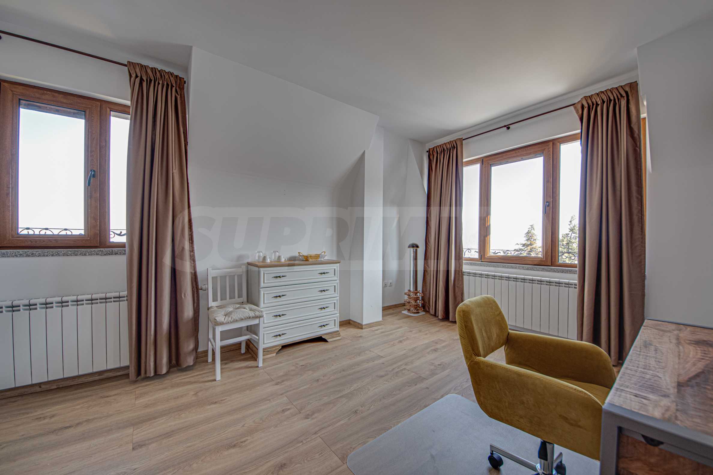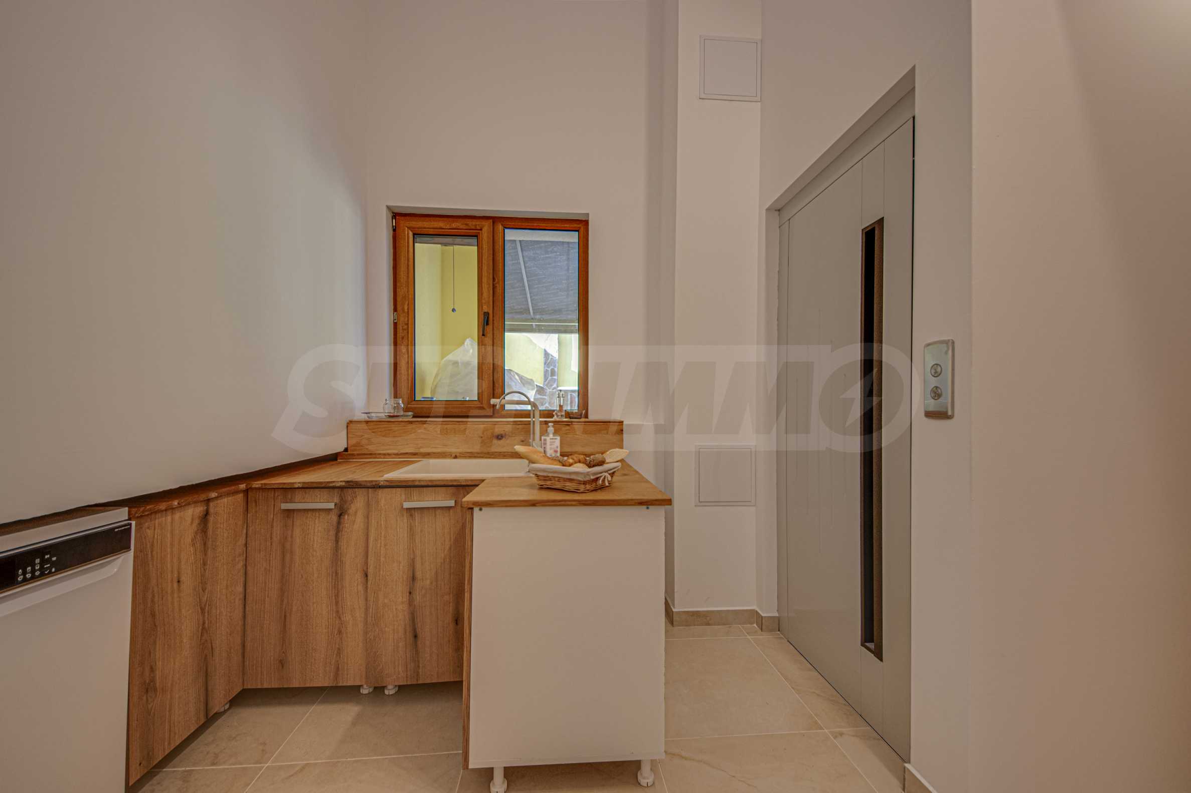 - първи етаж 234 кв.м: дневна с камина с огромна декинг тераса, каминна стая, кухня, двустаен апапартамент, офисна стая, тоалетна за гости;