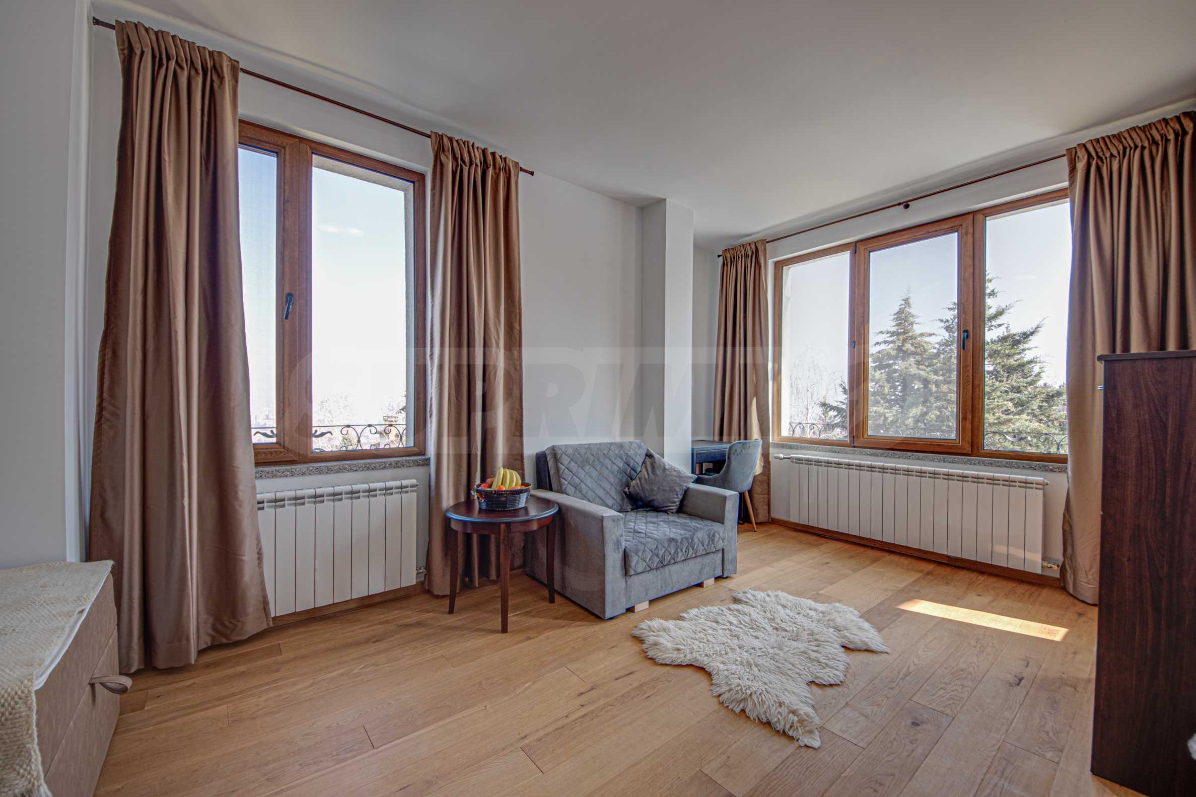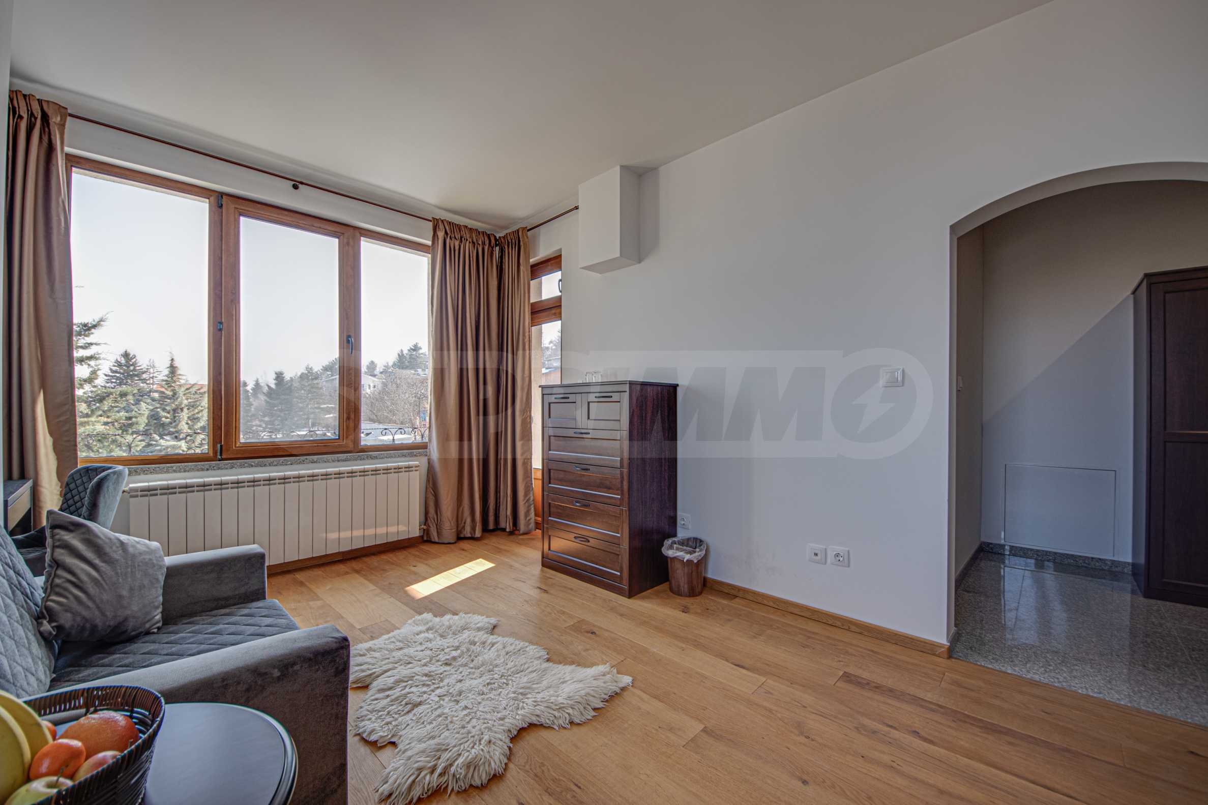 Предлагаме на Вашето внимание голяма самостоятелна къща под наем сред чист въздух, заленина и спокойствие в кв. Драгалевци. Имотът е уникален по вида си и може да бъде използван както за фамилна къща, така и за хотел, резиденция или бизнес сграда. Имотът е на застроена площ от 1051кв.м., разпределени в 4 етажа. Обособени са отделни апартаменти и студиа, оборудвани с бани, в които са предвидиени и кухненски боксове.