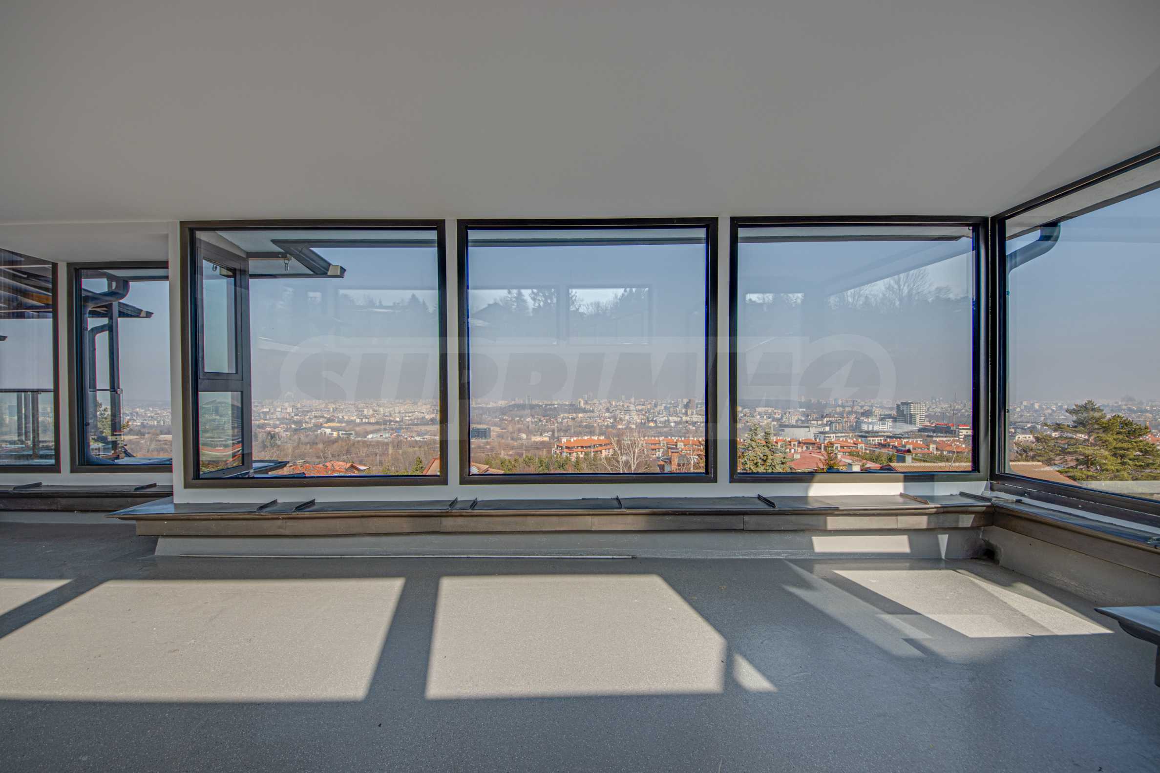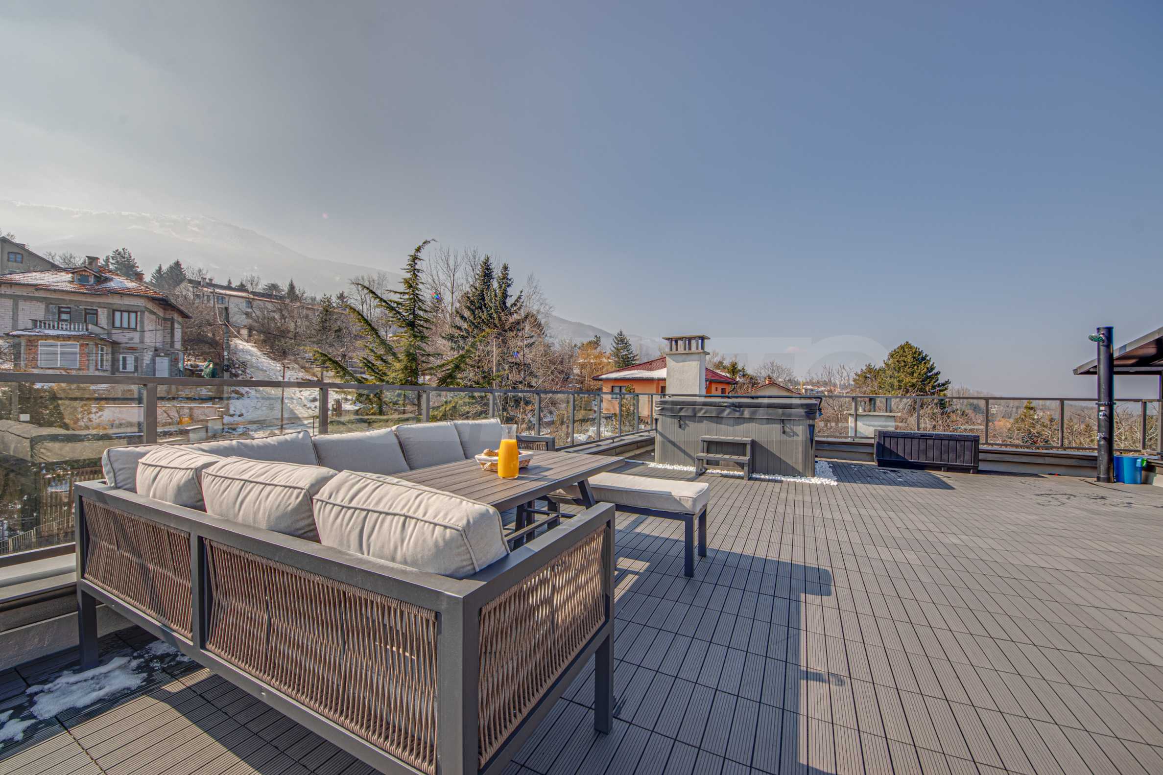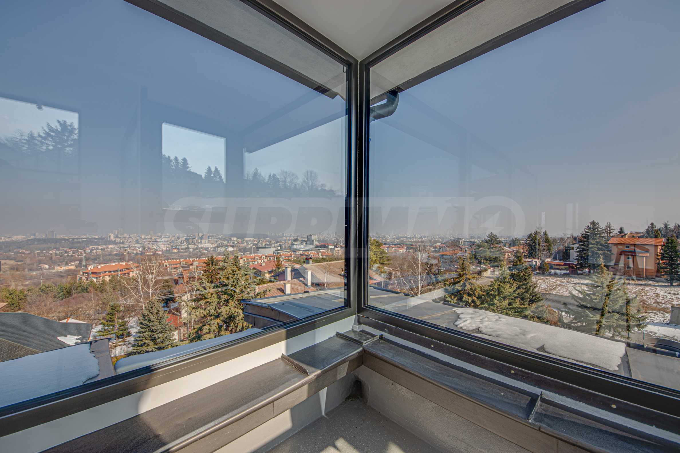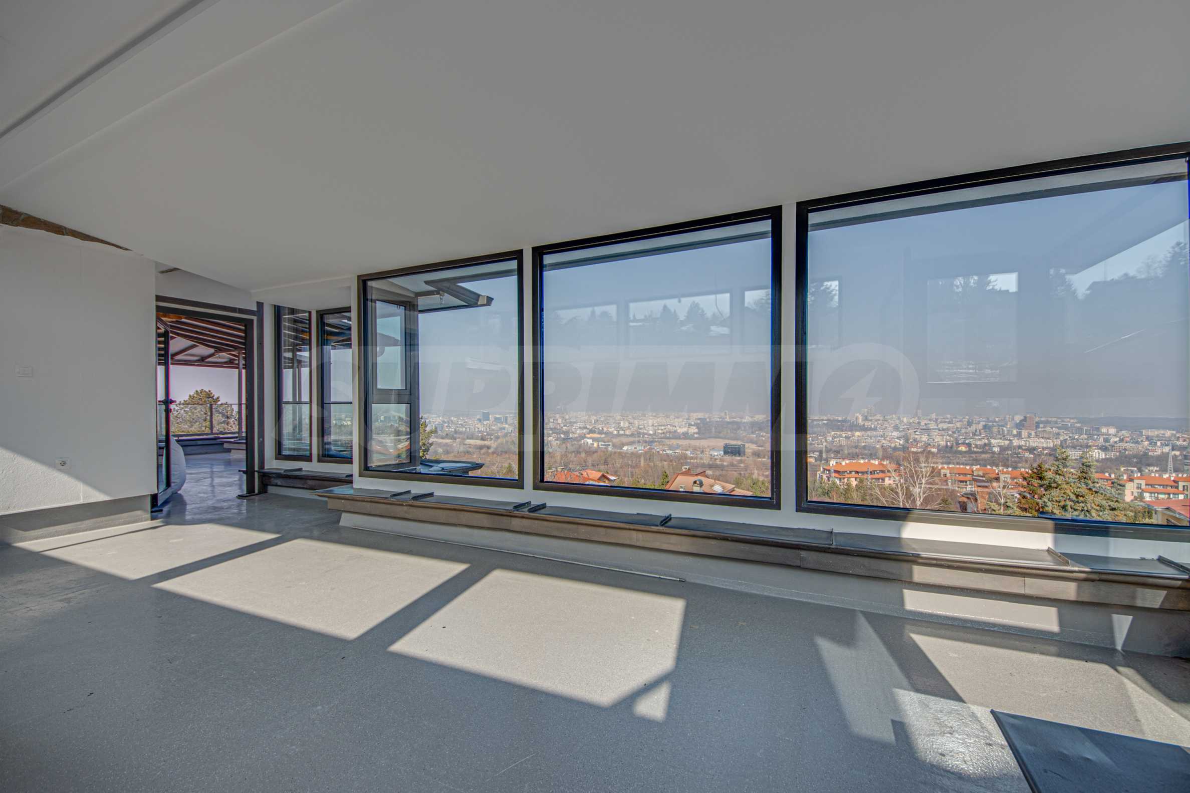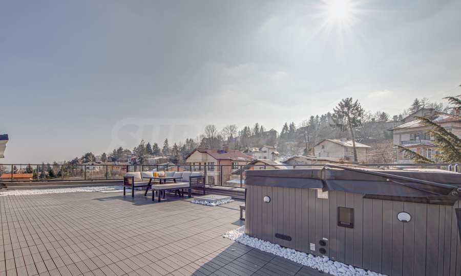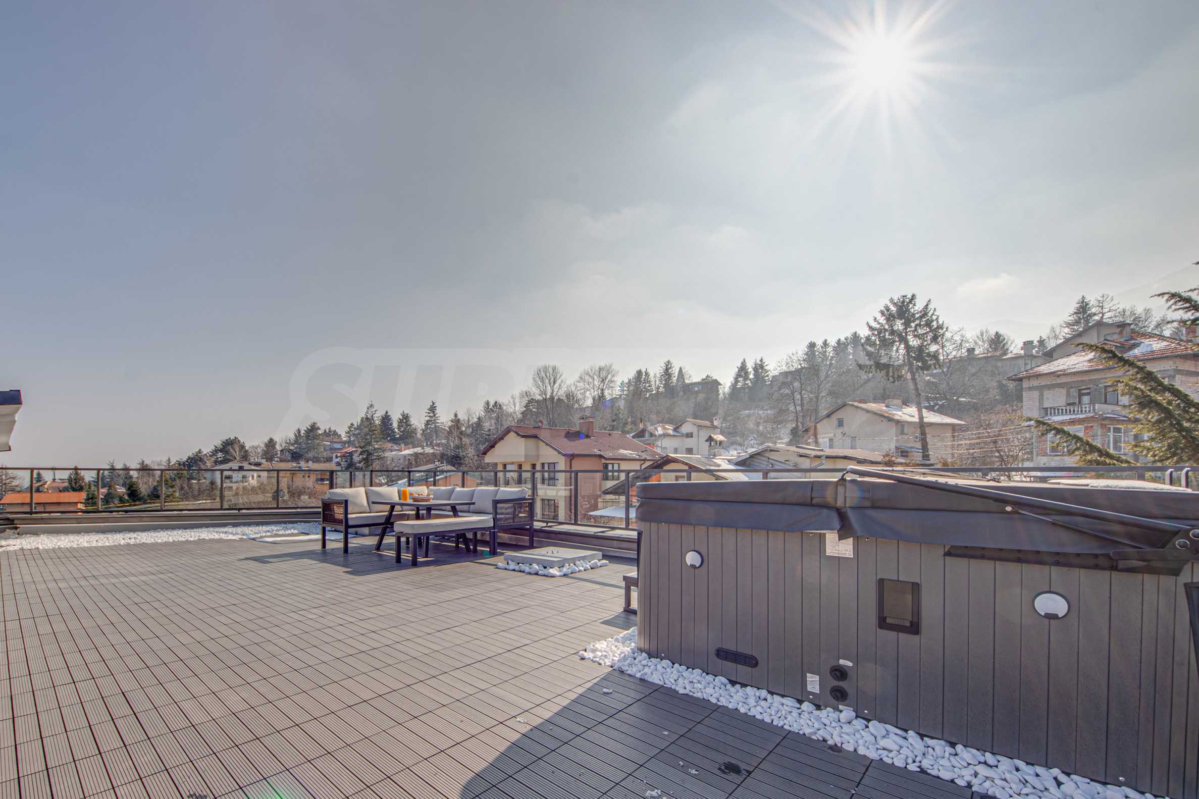 Прекрасни слънчеви тереси откриват впечатляващи гледки и към Витоша, Плана планина, Стара планина и към града. Последния етаж на къщата е особено внушителен - панорамните му прозорци са връзка с тераса притежаваща джакузи. Пространството предполога да бъде използвано, както за почивка, така и за парти.