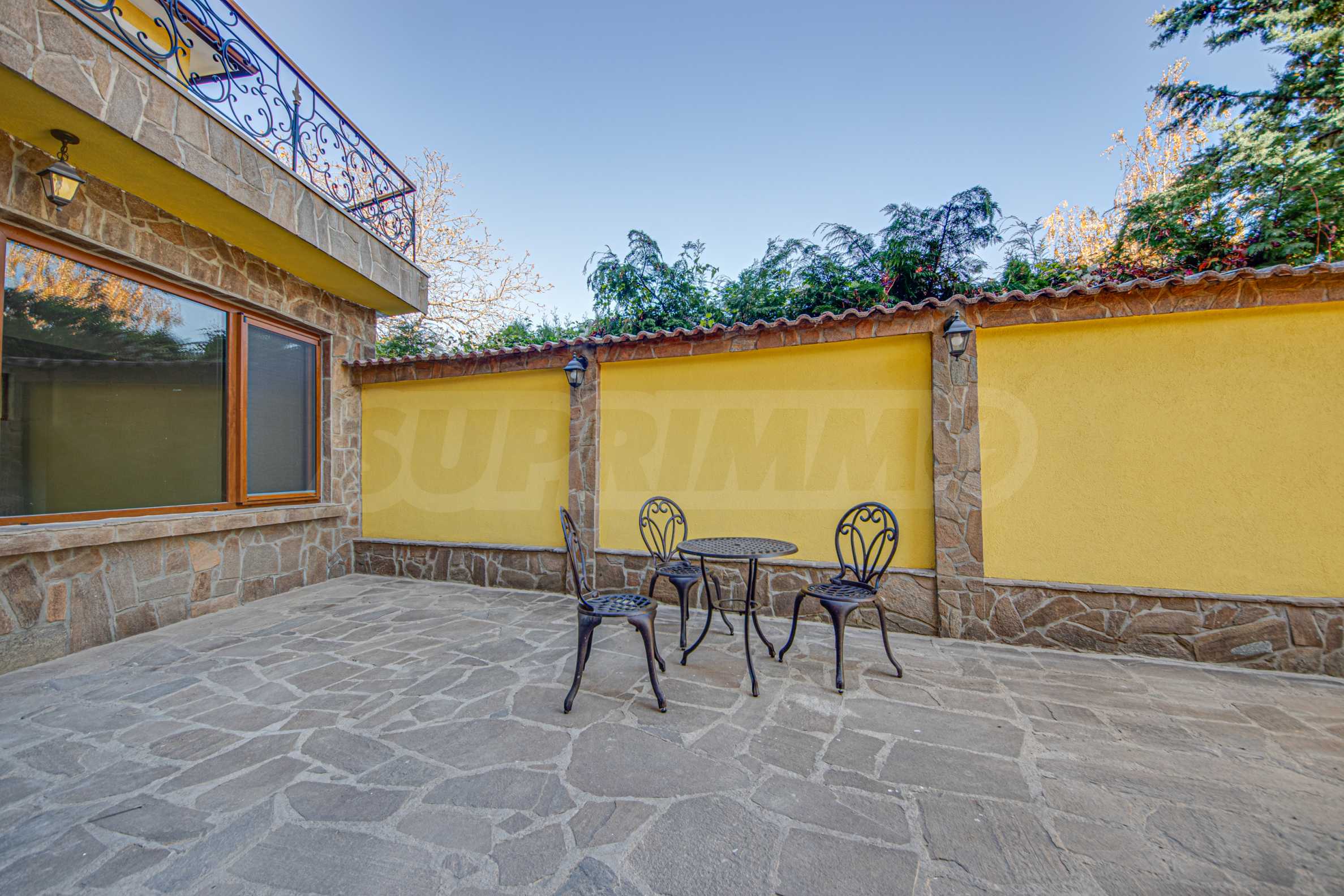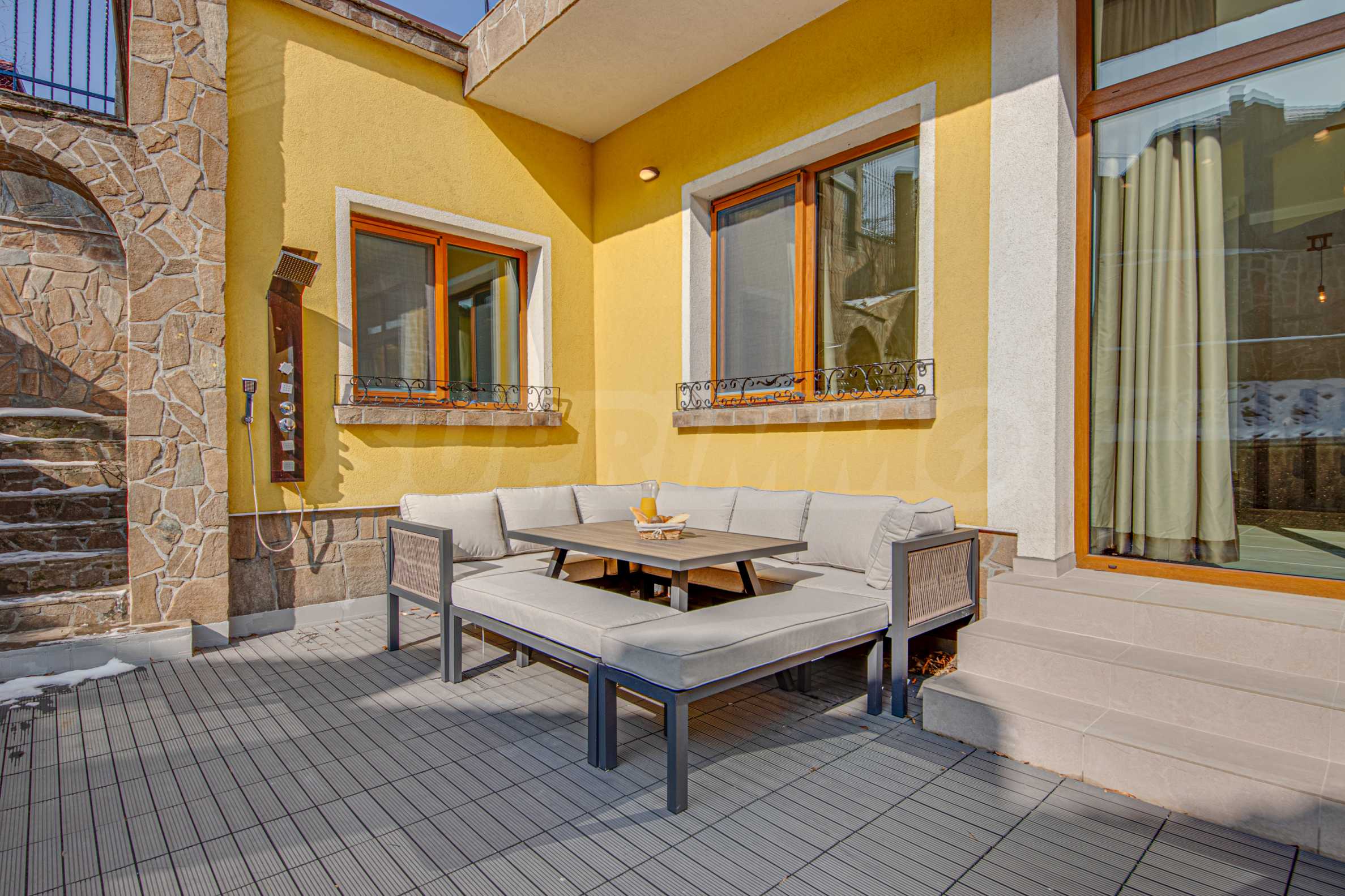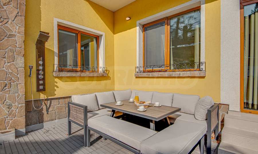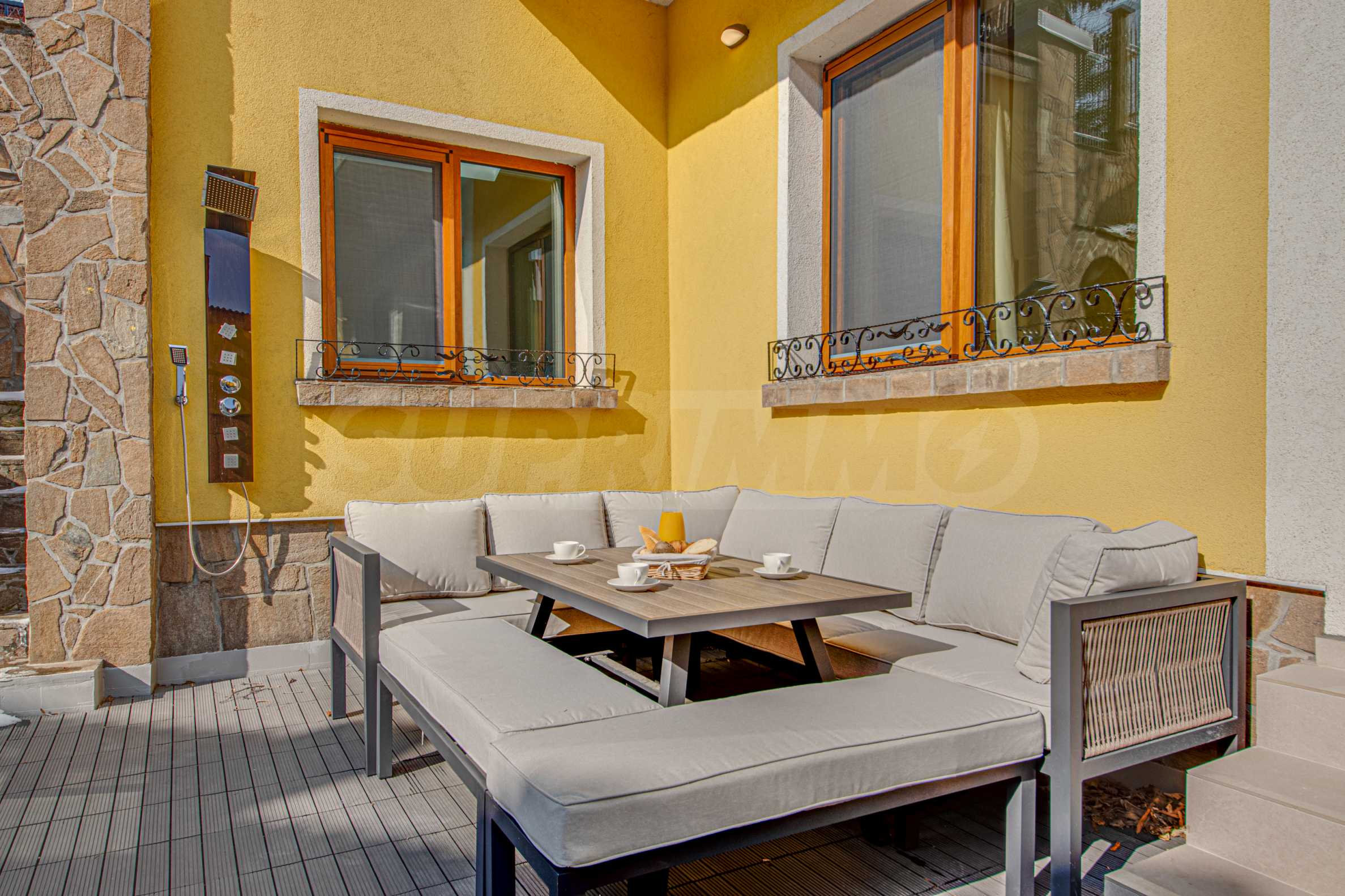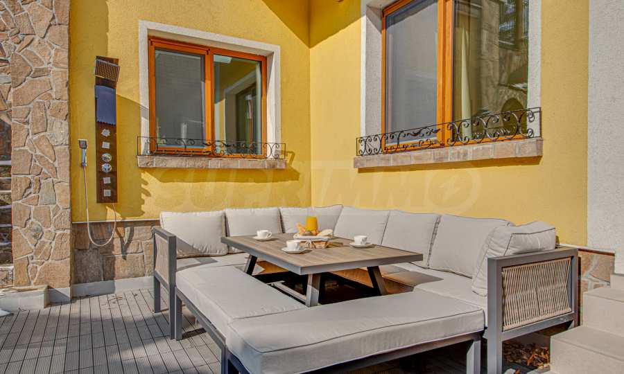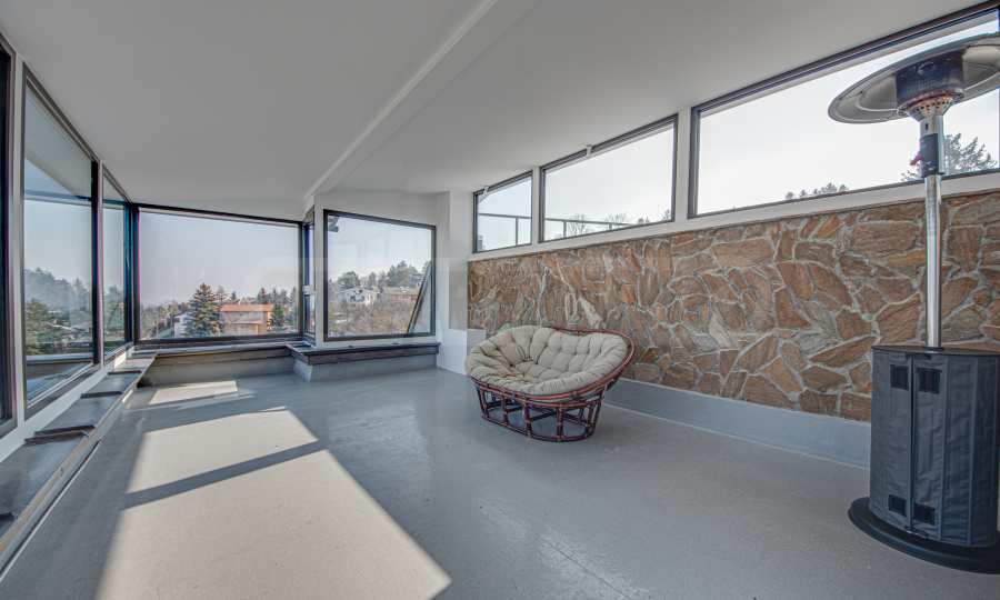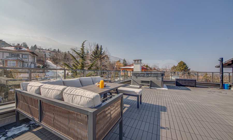 Прекрасни слънчеви тереси откриват впечатляващи гледки и към Витоша, Плана планина, Стара планина и към града. Последния етаж на къщата е особено внушителен - панорамните му прозорци са връзка с тераса притежаваща джакузи. Пространството предполога да бъде използвано, както за почивка, така и за парти.