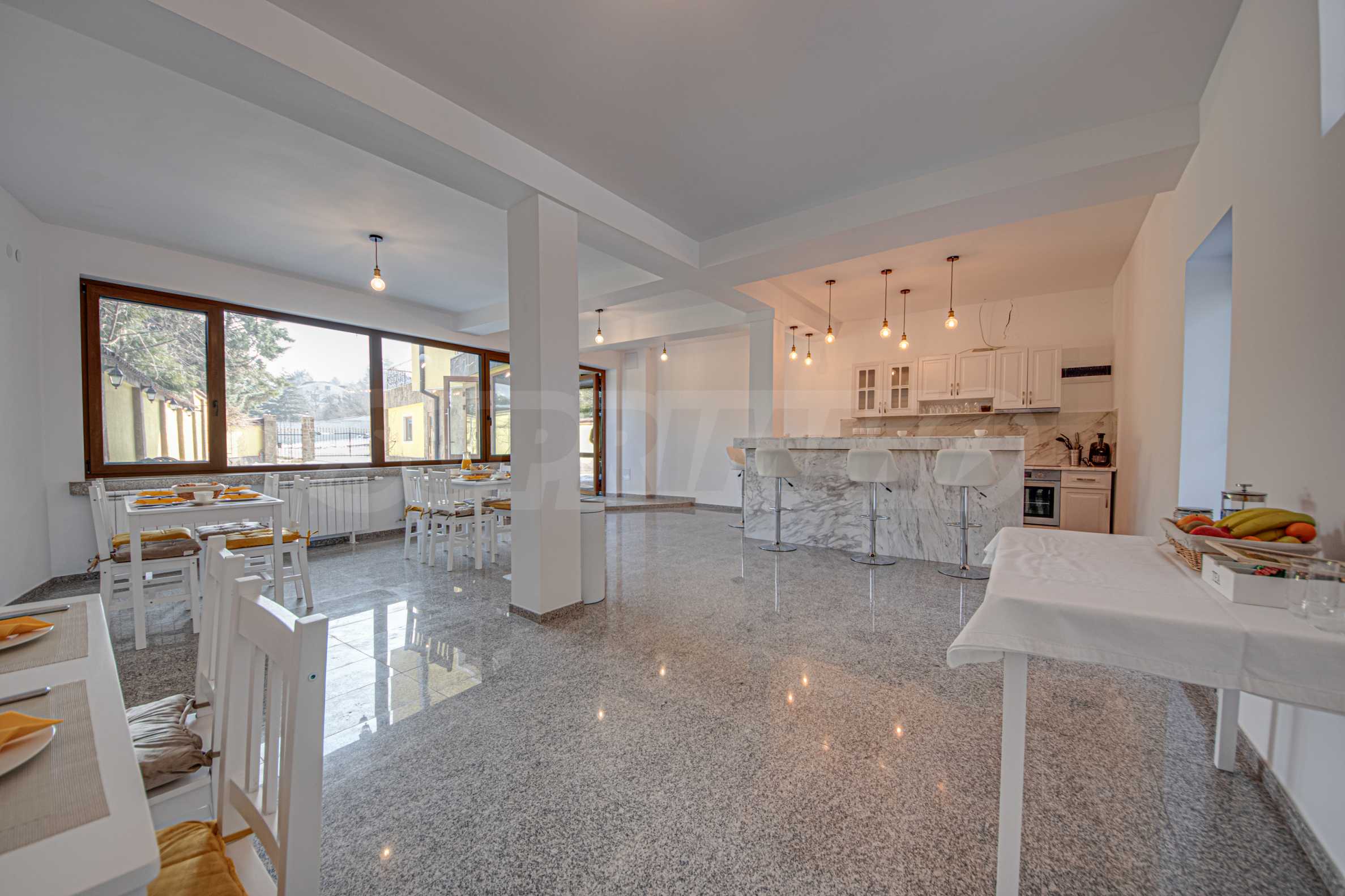 - партер 380 кв.м: помещение с барплот, игрална зала,спа, кухня с асансьор, перално помещение, котелно помещение, тоалетна, гараж;