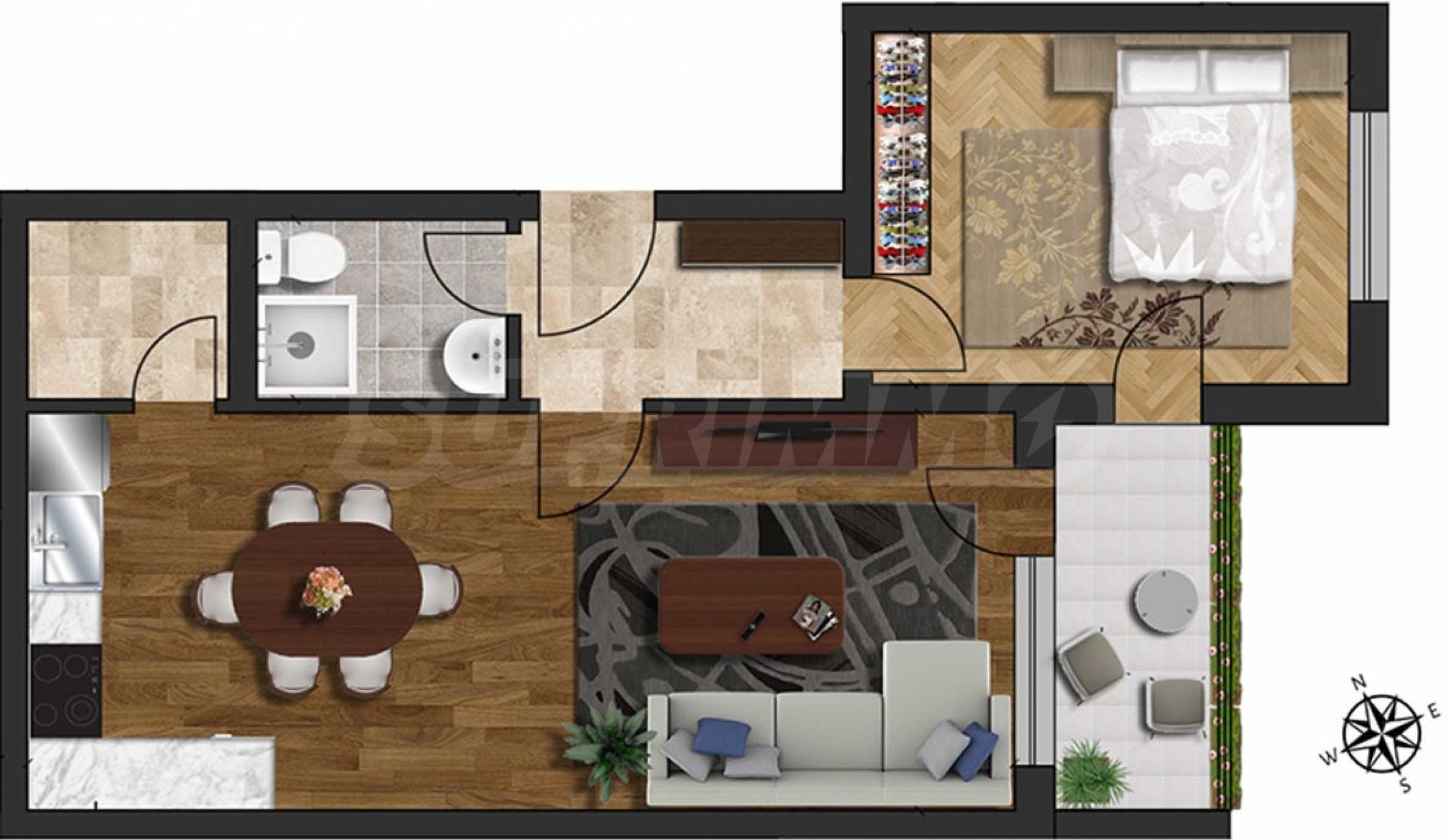 Представяме двустаен апартамент за продажба, в модерен нов комплекс с Акт 16, в кв. "Христо Смирненски" в Пловдив.