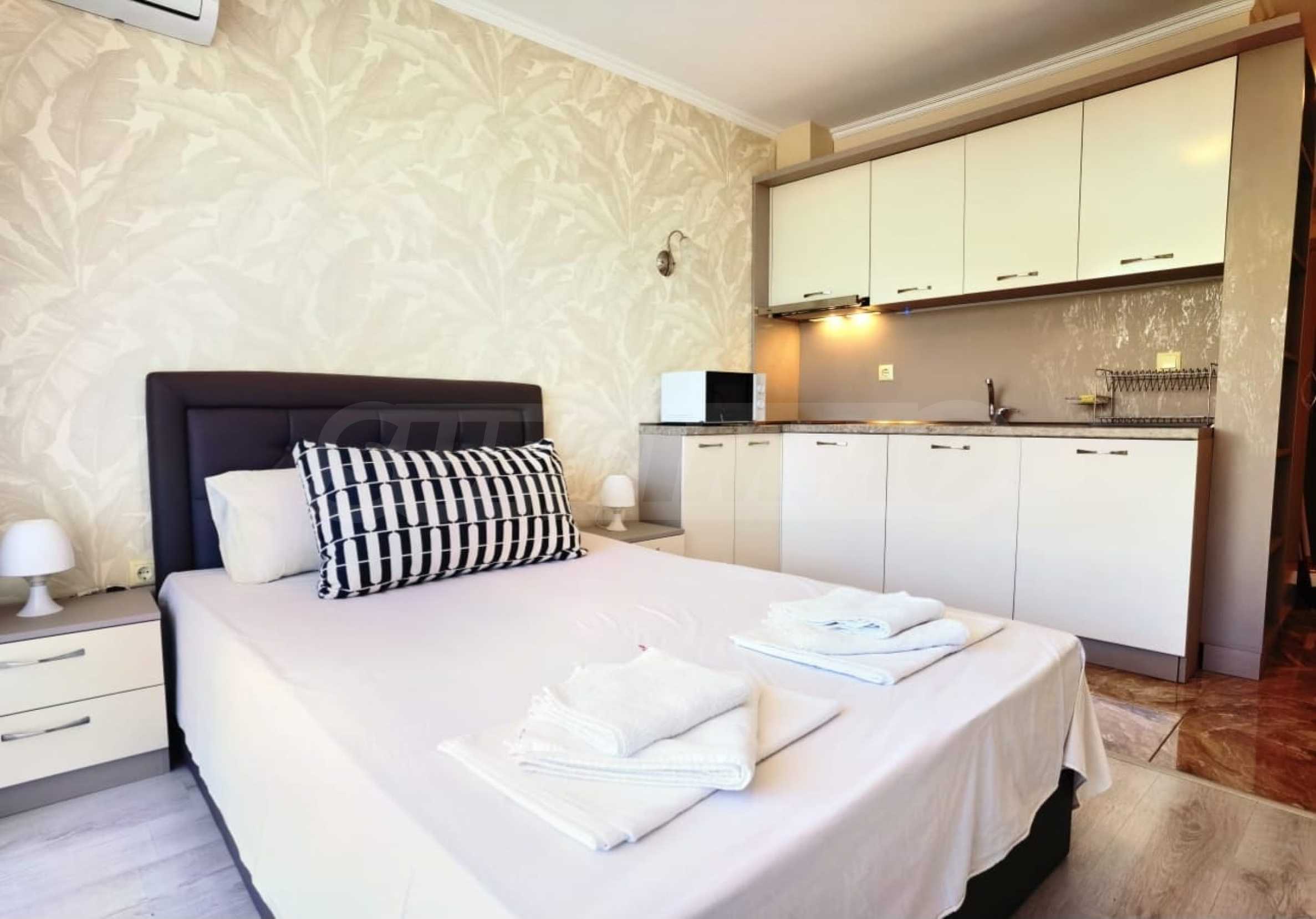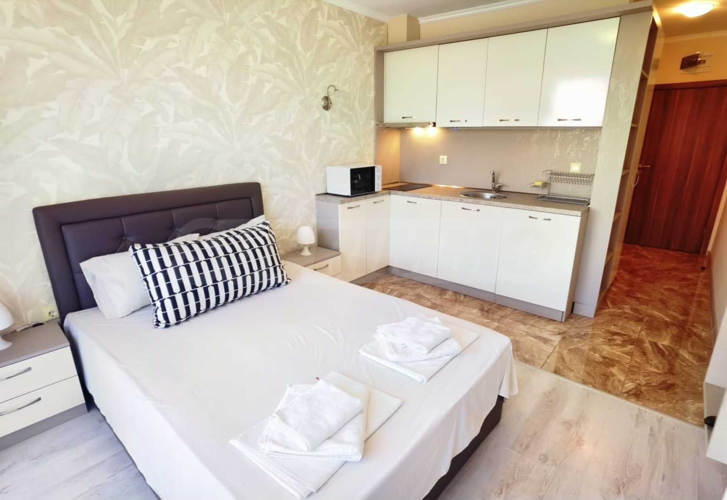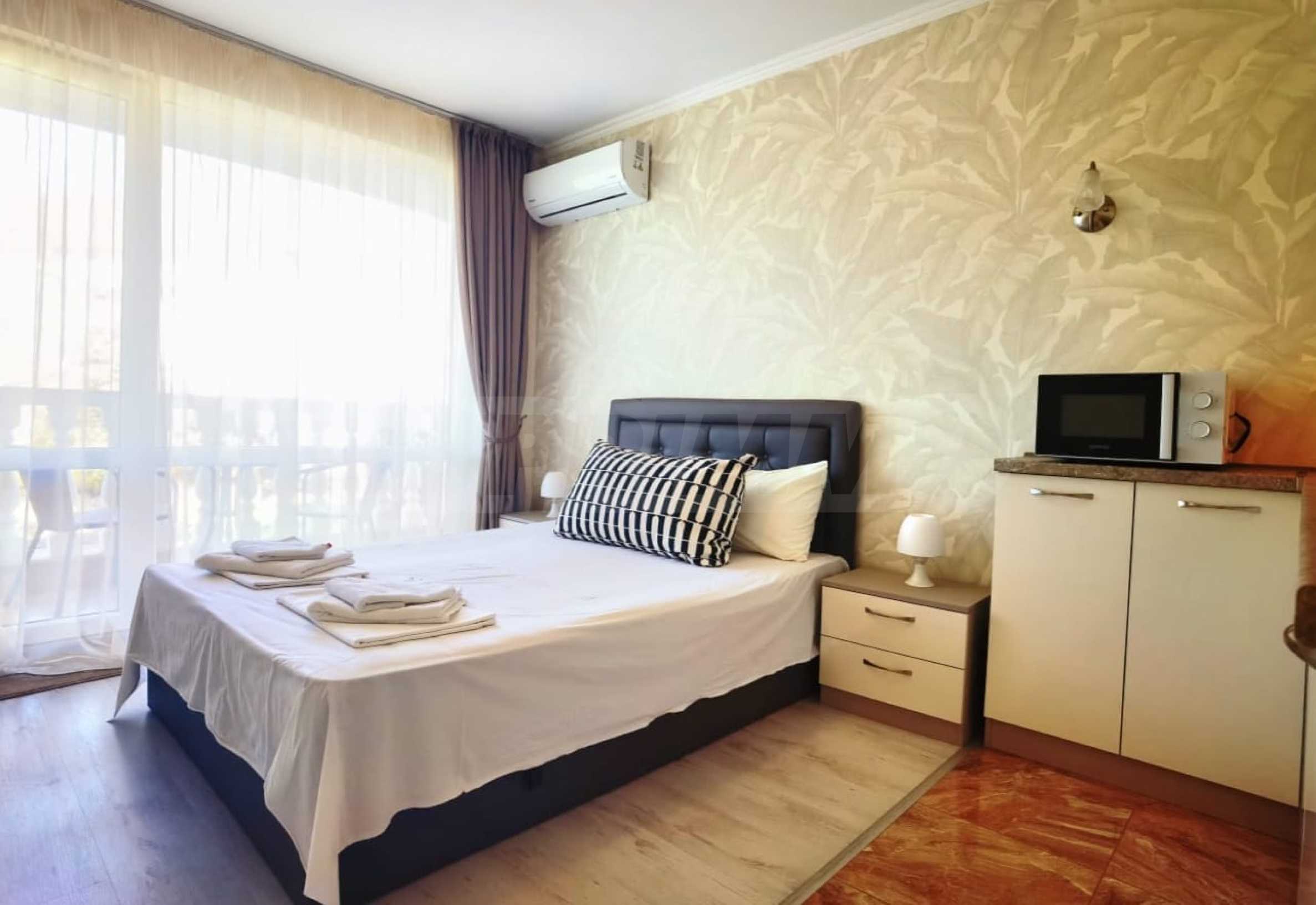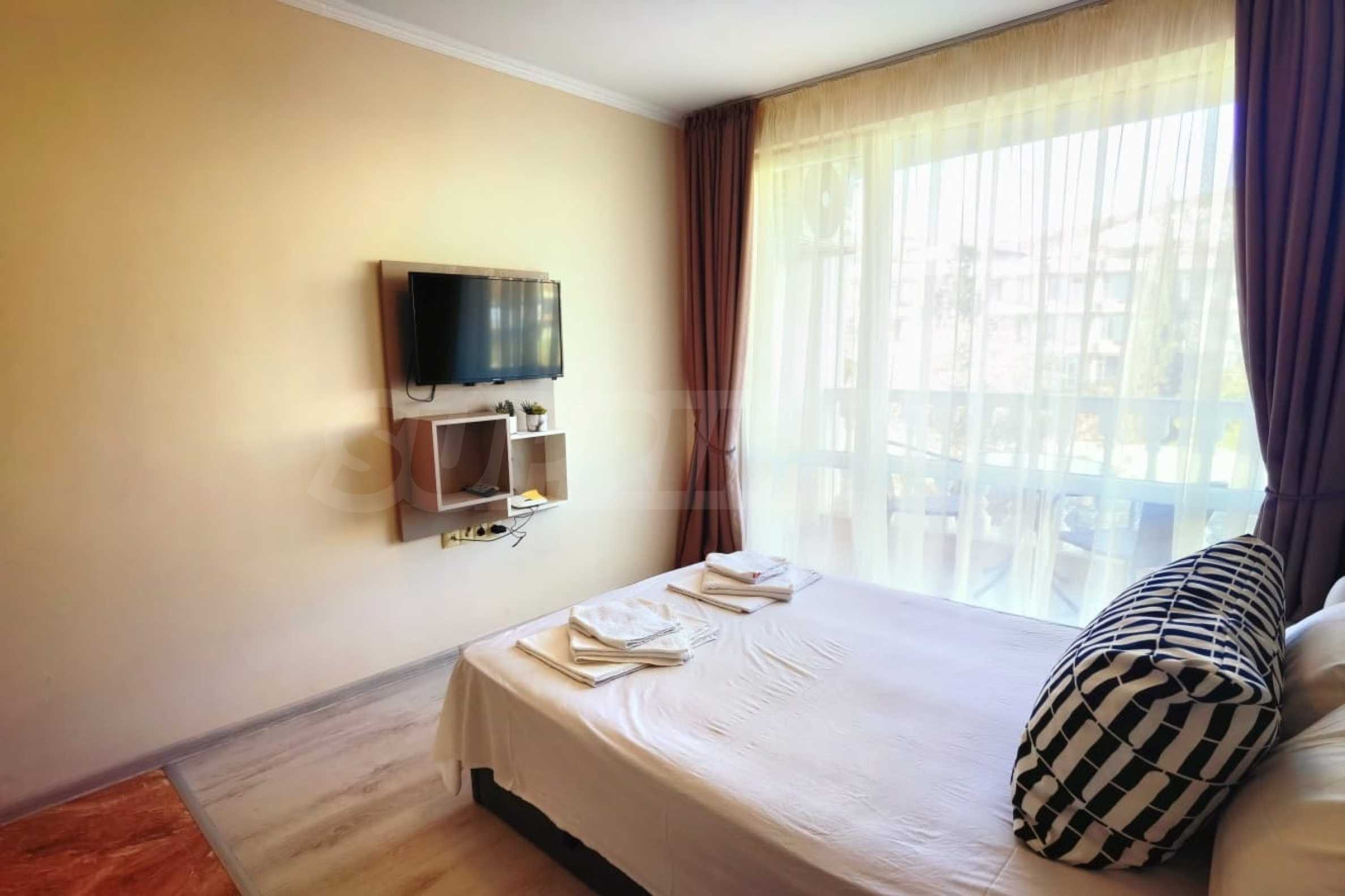 Представяме студио под наем в нов, елегантен комплекс с басейн и СПА-зона, разположен само на 200 м от плажа на Свети Влас.