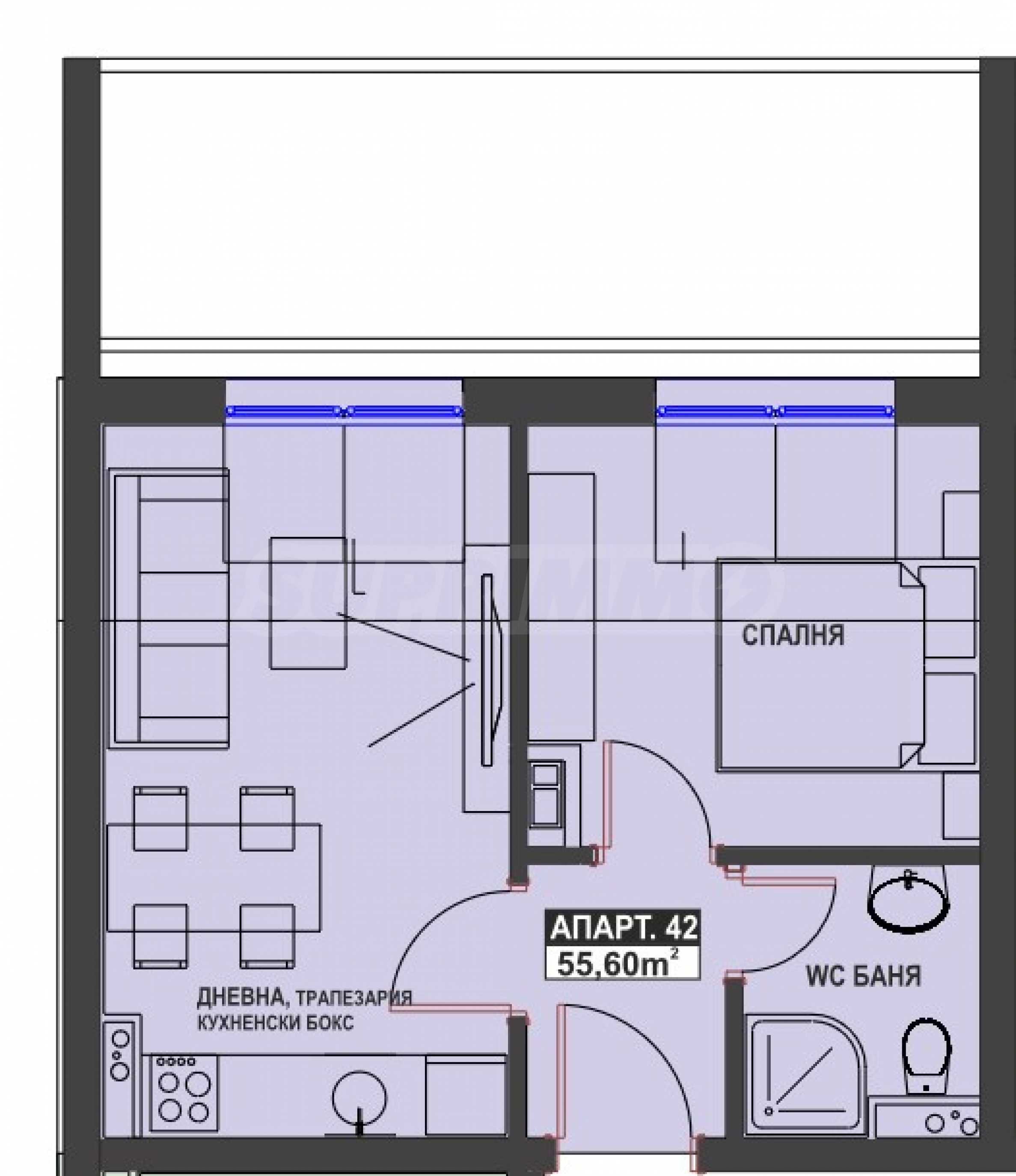 - кухненски бокс - под – замазка, стени и тавани – мазилка, ВиК – на „тапа.