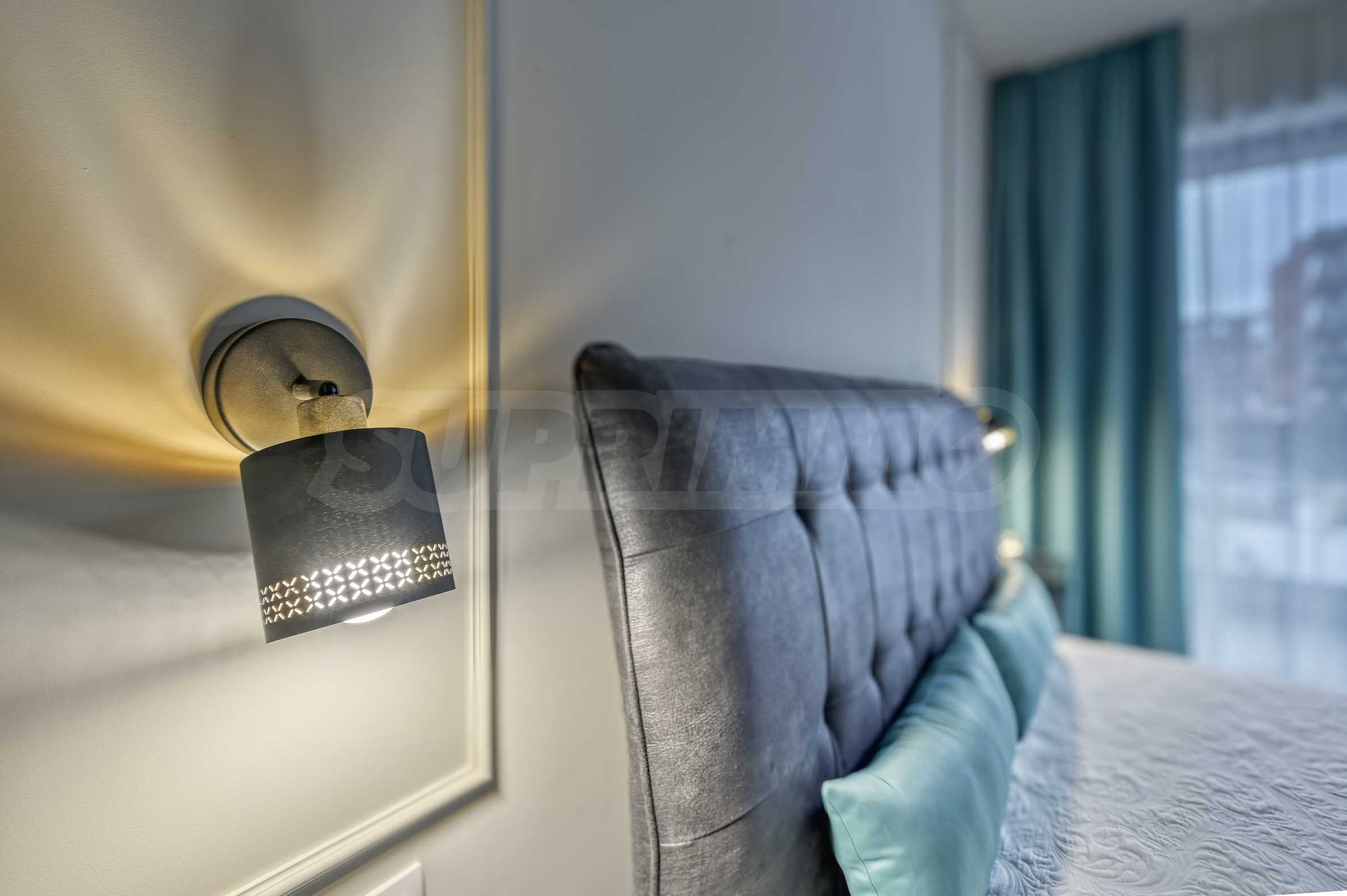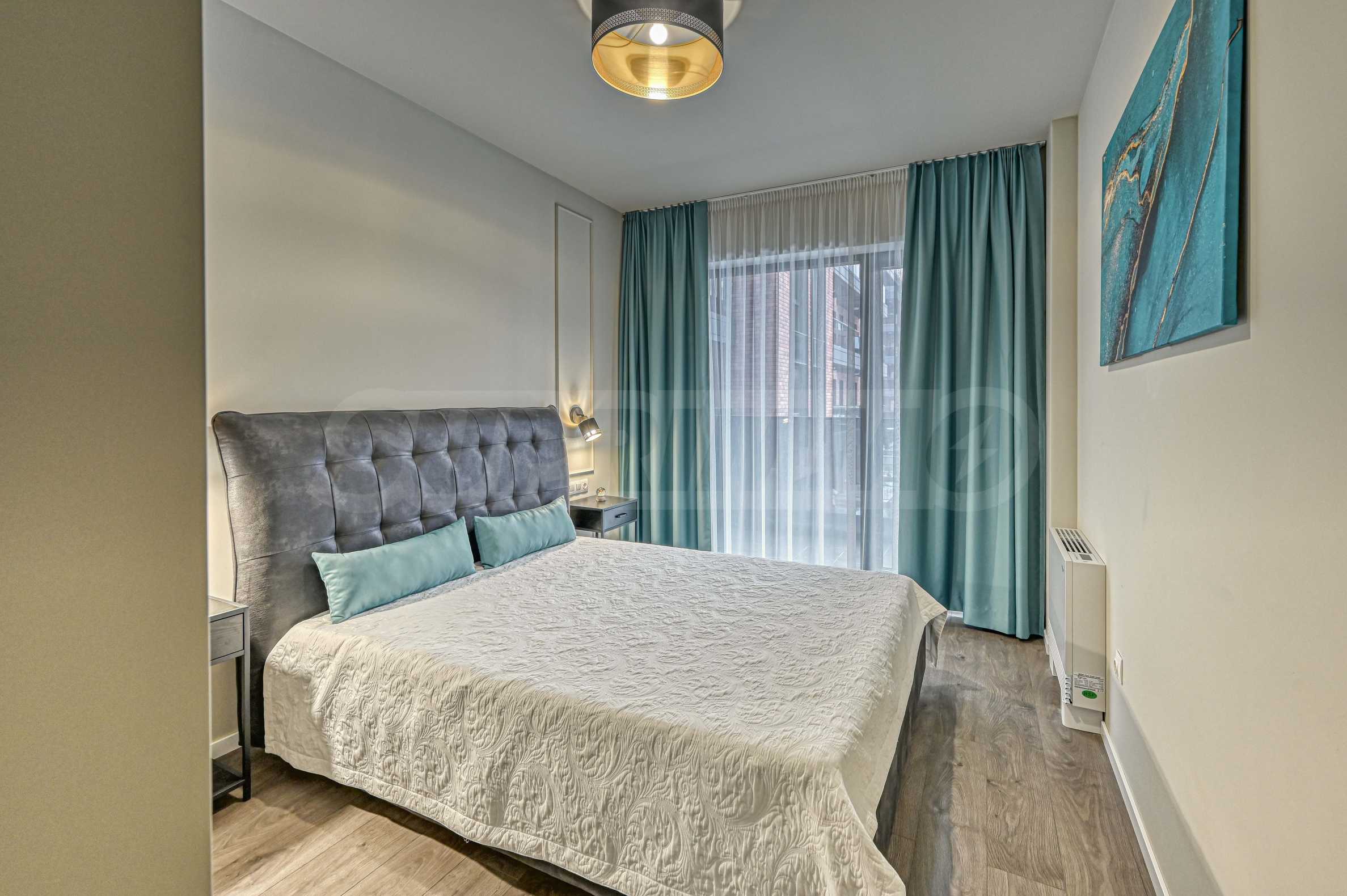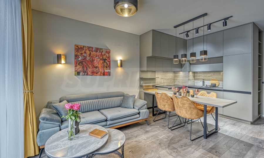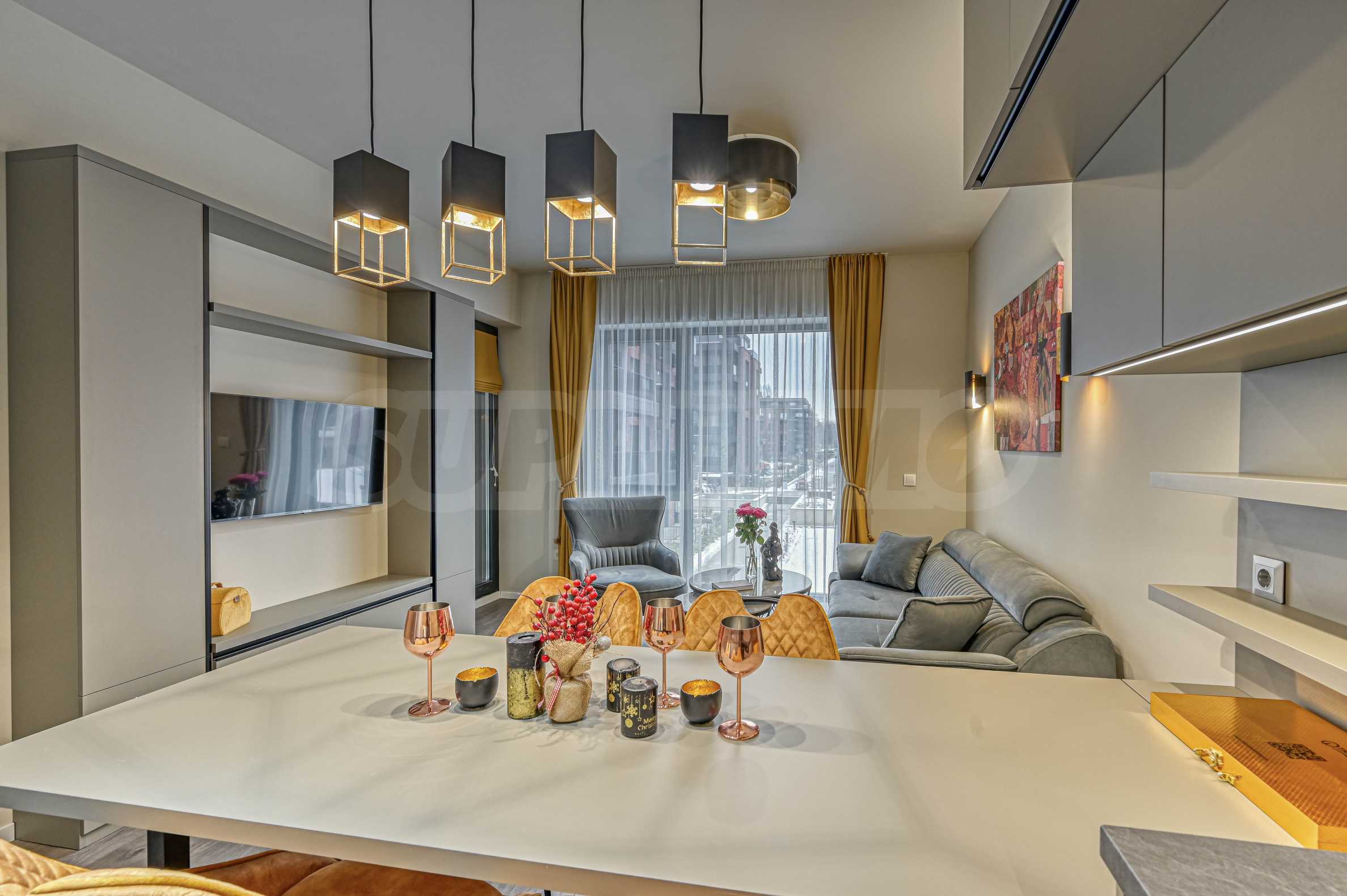 Апартаментът е обзаведен с изискан вкус по индивидуален дизайнерски проект. Всички мебели и електроуреди са от висок клас, нови и подбрани с внимание към всеки детайл. Жилището предлага уютна и модерна атмосфера, подходяща за хора, търсещи комфорт и стил.
