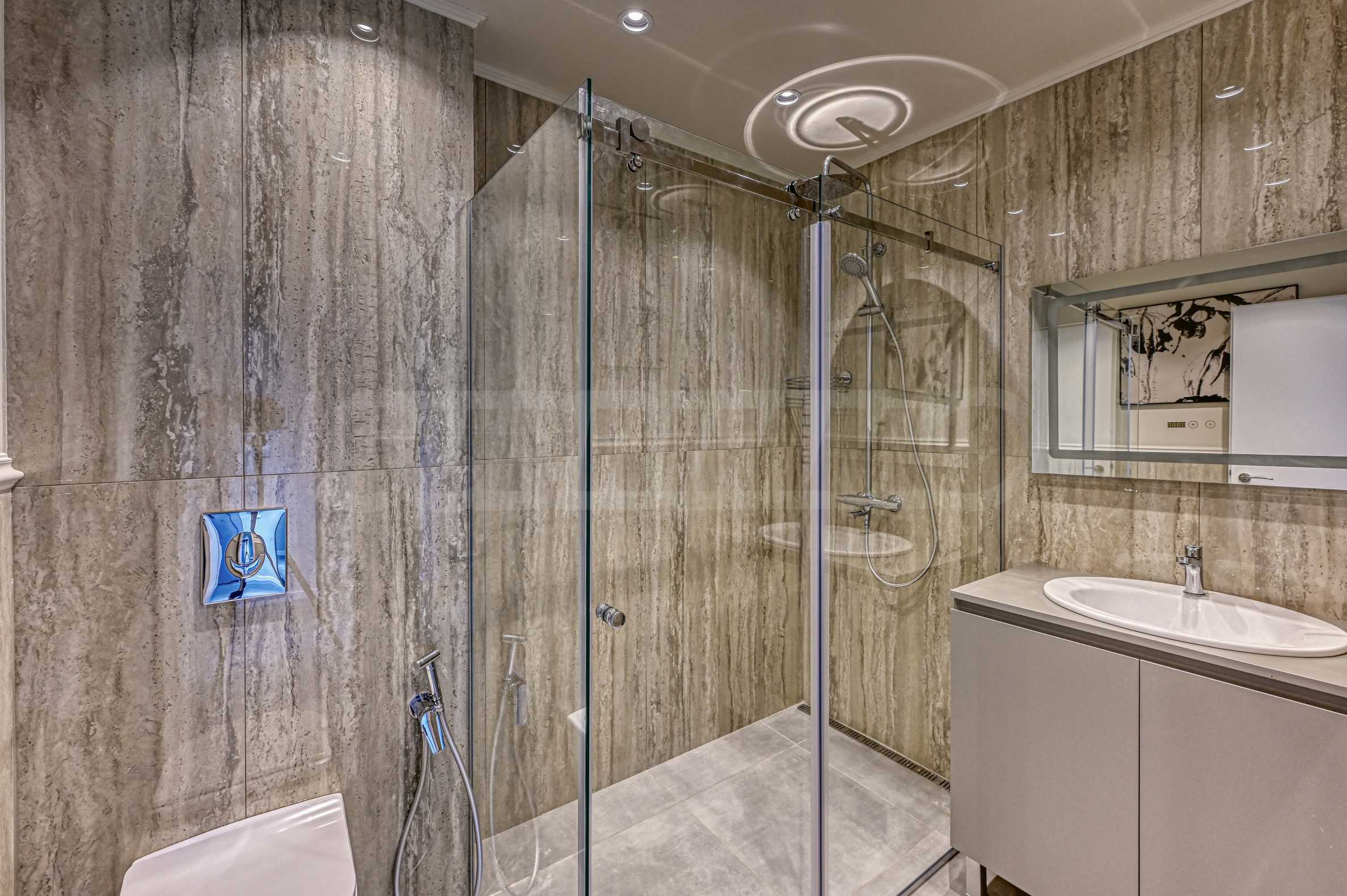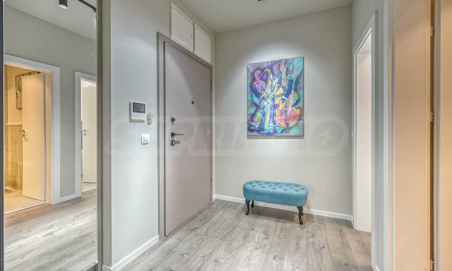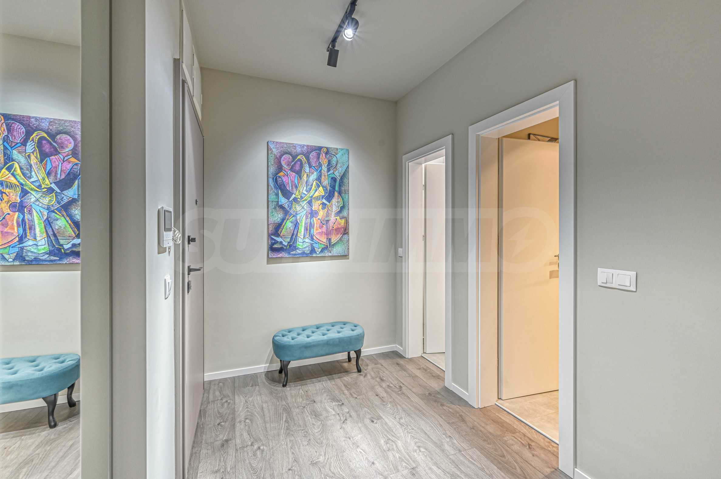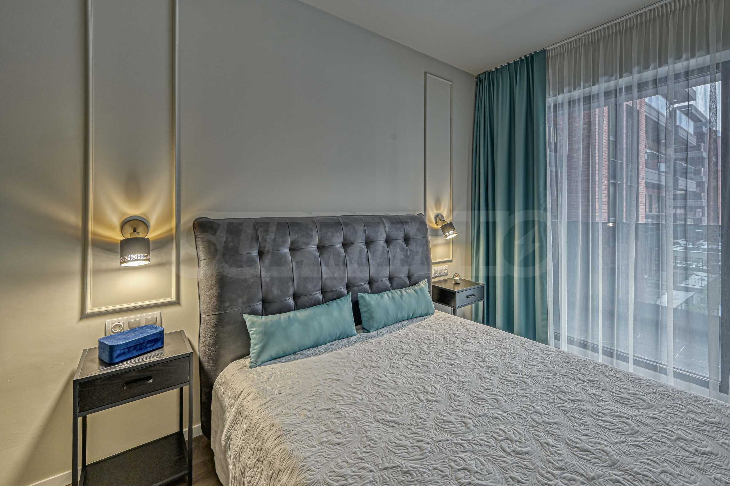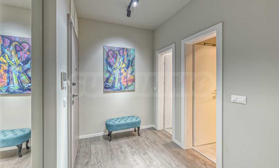 Апартаментът е обзаведен с изискан вкус по индивидуален дизайнерски проект. Всички мебели и електроуреди са от висок клас, нови и подбрани с внимание към всеки детайл. Жилището предлага уютна и модерна атмосфера, подходяща за хора, търсещи комфорт и стил.
