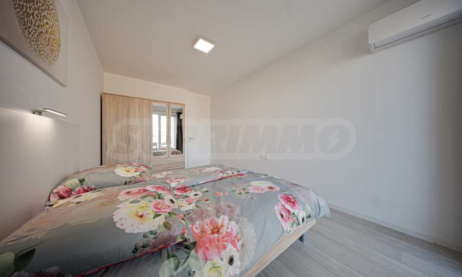 Жилището е минималистично обзаведено в светли цветове, което допринася за уюта и комфорта на своите наематели.
