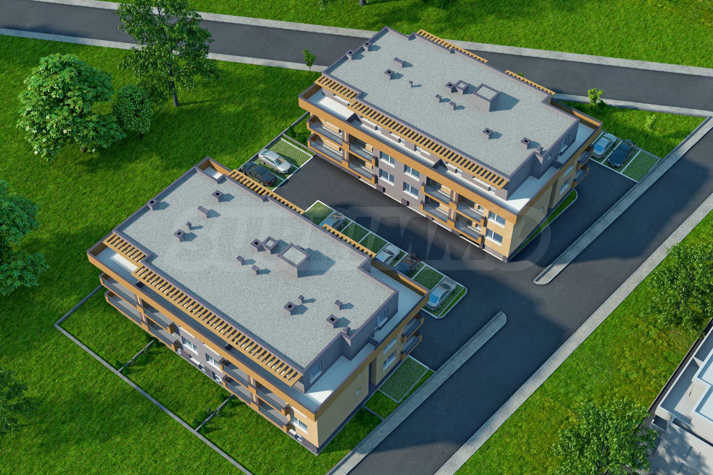 Комплексът се състои от 2 самостоятелни жилищни сгради, всяка с партер и 3 жилищни етажа с асансьор. Предлага различни по-големина двустайни и тристайни жилища. Пространството около сградите е решено с паркоместа и озеленяване.