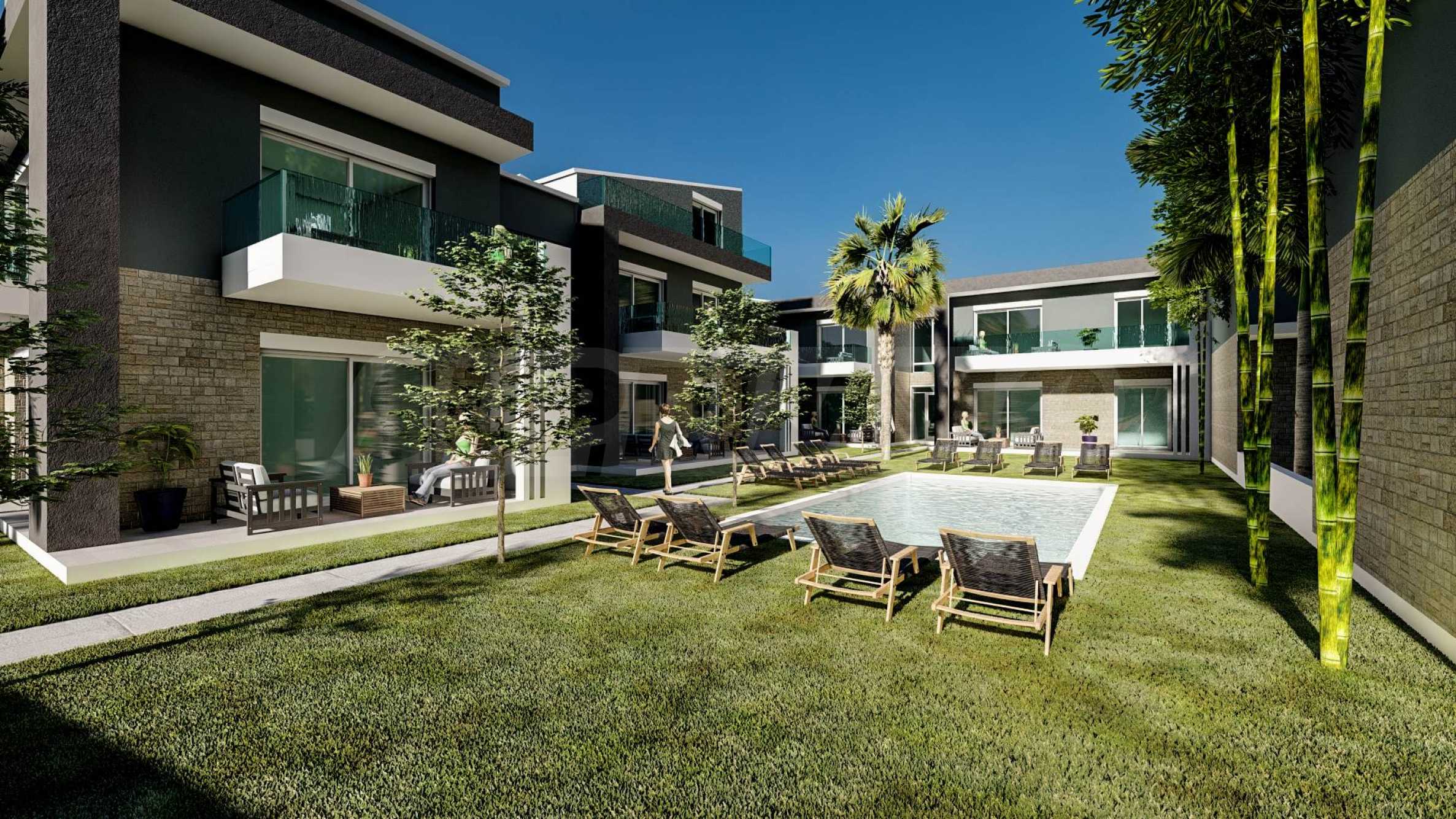 Представете си дом, проектиран с изтънчен усет към детайла, където просторът и комфортът са водещи. Всяко помещение е обляно в естествена светлина, благодарение на големите прозорци, а от просторните тераси се разкриват спиращи дъха гледки към морето или планината. Всички помещения разполагат с достатъчно пространство, за да бъдат обзаведени по Ваш вкус и стил. В красиво озеленения двор на комплекса Ви очакват прохладни басейни, където можете да се отпуснете и да се насладите на пълноценна почивка.