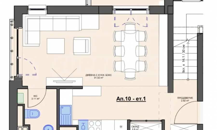 - сградата се състои само от 10 бр. апартаменти, с функционално разпределение и супер просторни, светли стаи;