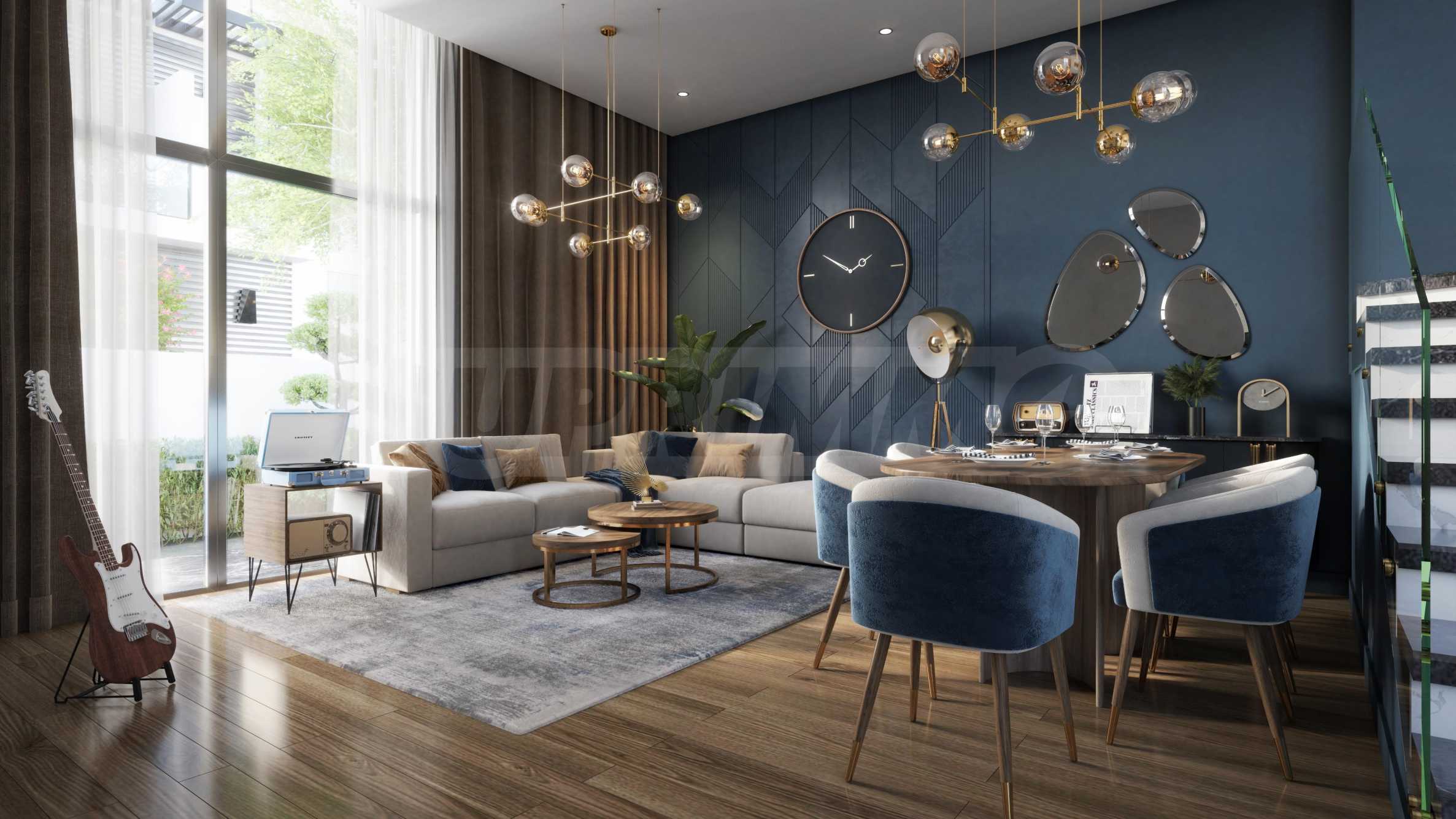 Проектът включва просторни градски къщи с 3-5 спални, които са проектирани с голямо внимание към детайла и са оборудвани с най-новите удобства. Резиденциите не са просто домове – те представляват начин на живот, който цени спокойствието, комфорта и връзката. Това се демонстрира чрез удивителните фасади, включващи елегантни линии и изискани покрития, експанзивните прозорци с двоен стъклопакет, наводняващи интериора с естествена светлина и предоставящи прекрасни гледки към тучната околност. Всяко жилище има самостоятелен двор, тераси, оборудвани бани, прозорци с двоен стъклопакет, централна климатизация, напълно оборудвани кухни и частно паркомясто.