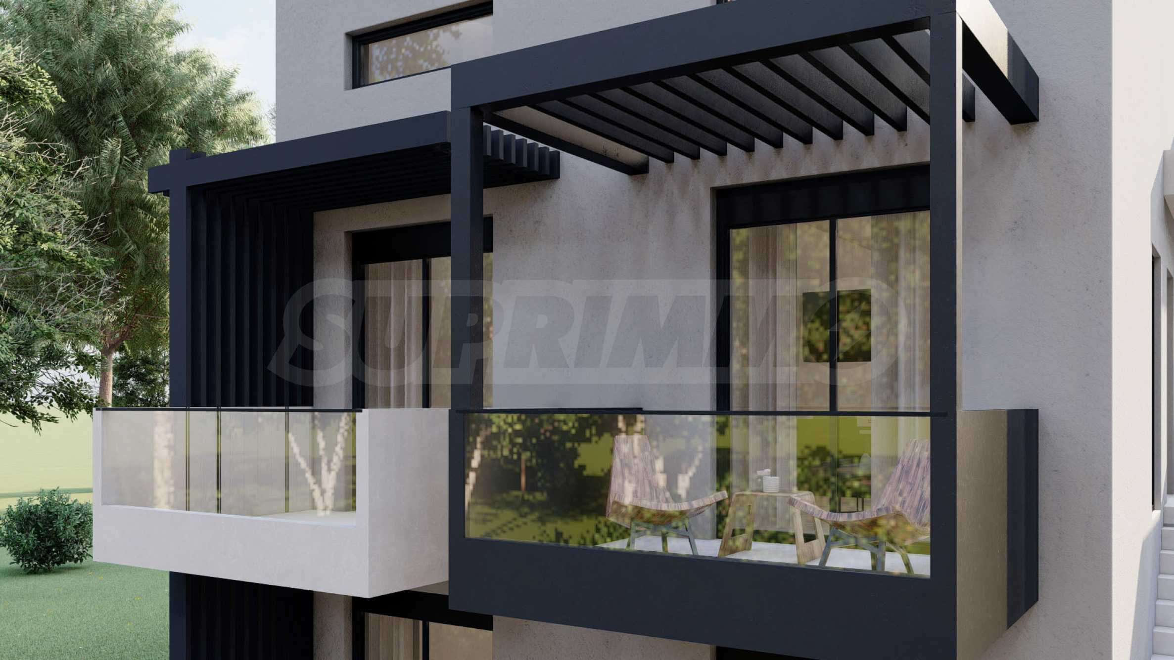 На разположение е тристаен апартамент, разположен на два етажа, с площ от 58.33 кв.м. Разпределението на първото ниво включва хол с кухненски бокс, спалня и баня с тоалетна, а второто ниво включва родителска спалня, собствена баня и тераса.