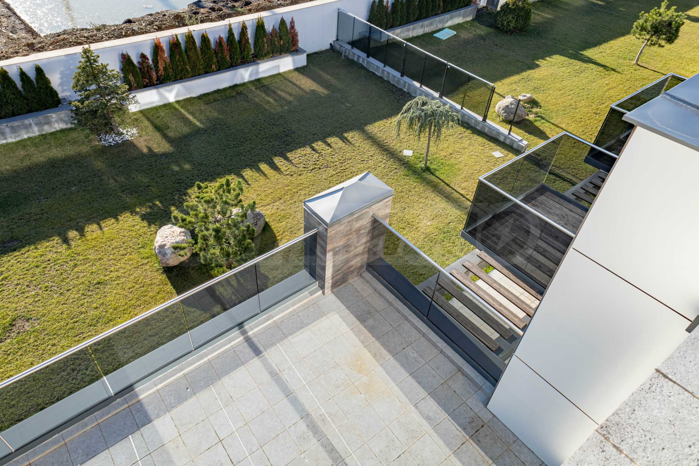 Имотът с РЗП от 611.71 кв.м е разпределен на три етажа и разполага със собствен двор около 1 000 кв.м.