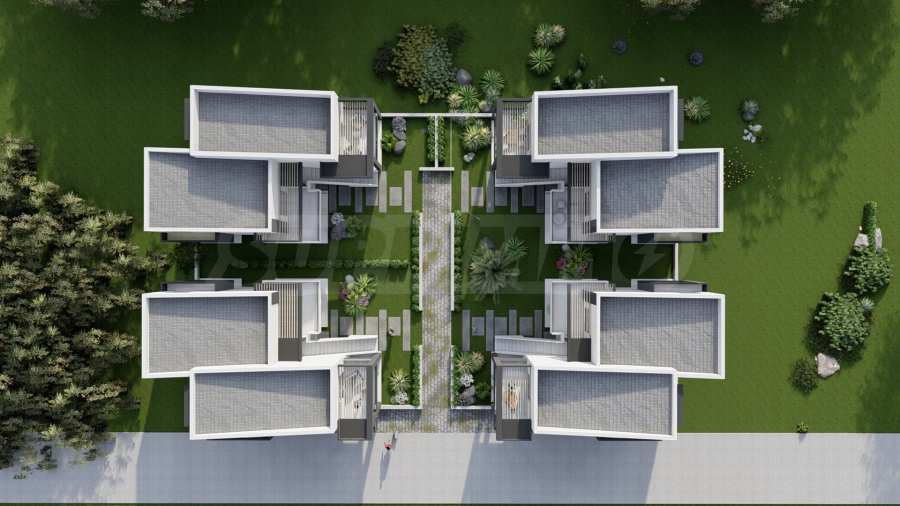 - Разпределение на първо ниво: хол с кухня, спалня и баня с тоалетна;