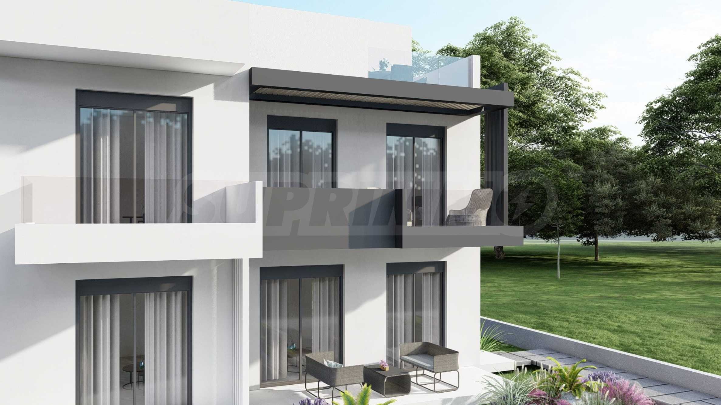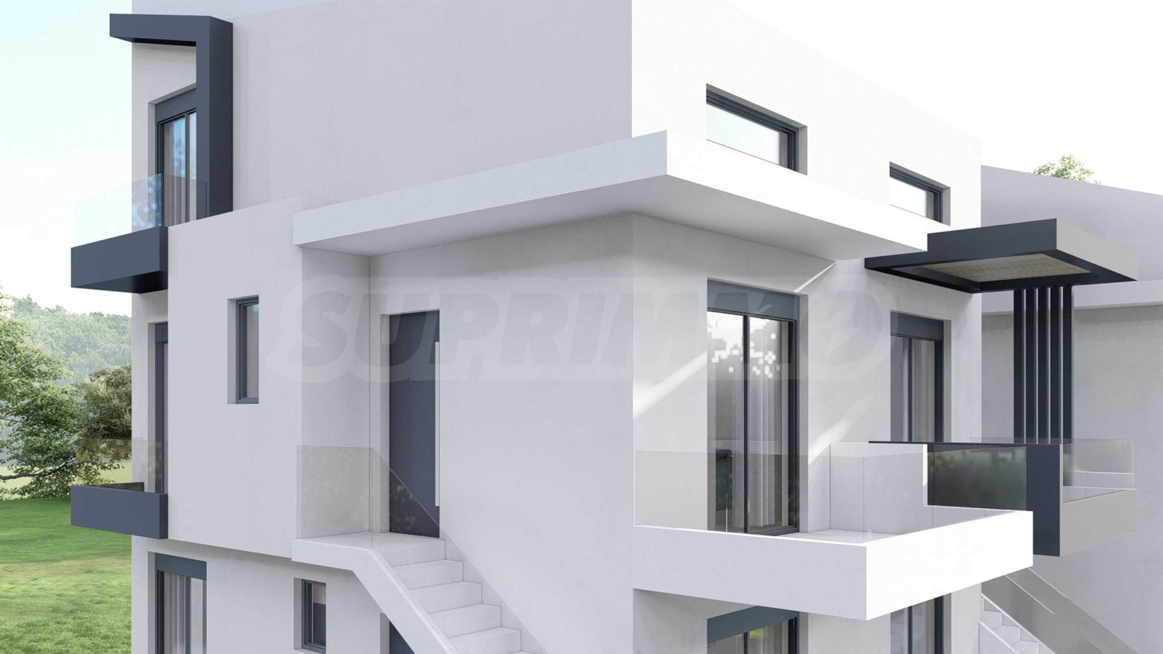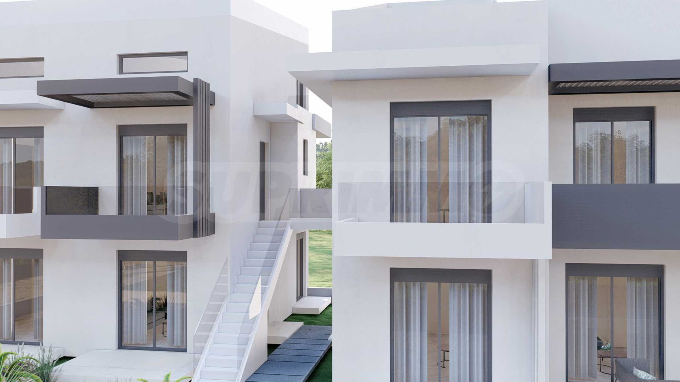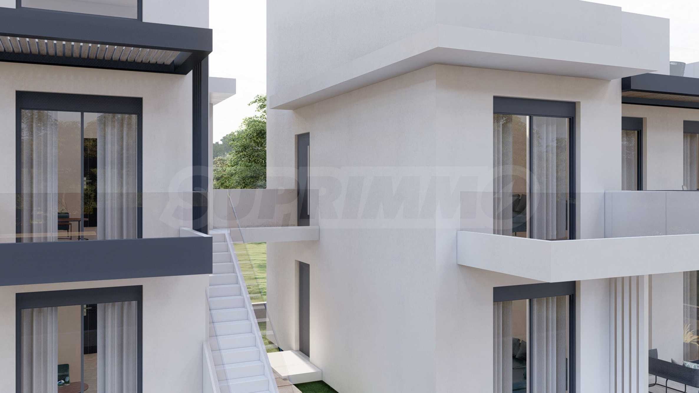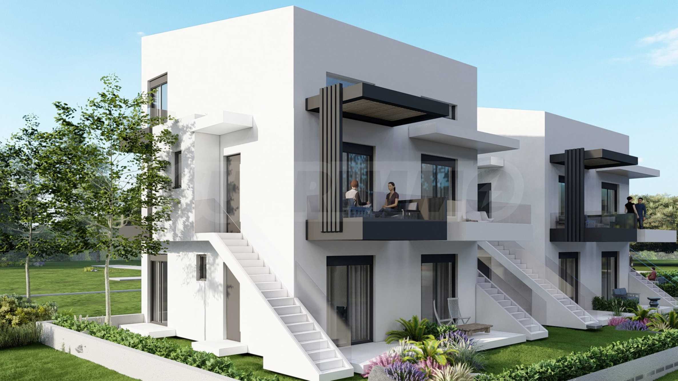 На разположение са лимитиран брой двустайни и тристайни апартаменти, разположени на втори и трети етаж в жилищните сгради. На първо ниво ще откриете комфортни двустайни апартаменти с хол, спалня, баня с тоалетна и веранда. До втория етаж се достига по външно стълбище, което създава усещане за самостоятелност и уединение. Там ще откриете тристаен апартамент с всекидневна с кухня, спалня и баня с тоалетна. На третия етаж е разположена родителска спалня с тераса и баня с тоалетна, прилежаща към тристайния апартамент. Апартаментите се издават завършени "до ключ" с поставени входни и интериорни врати, кухненски шкафове и оборудвана баня.