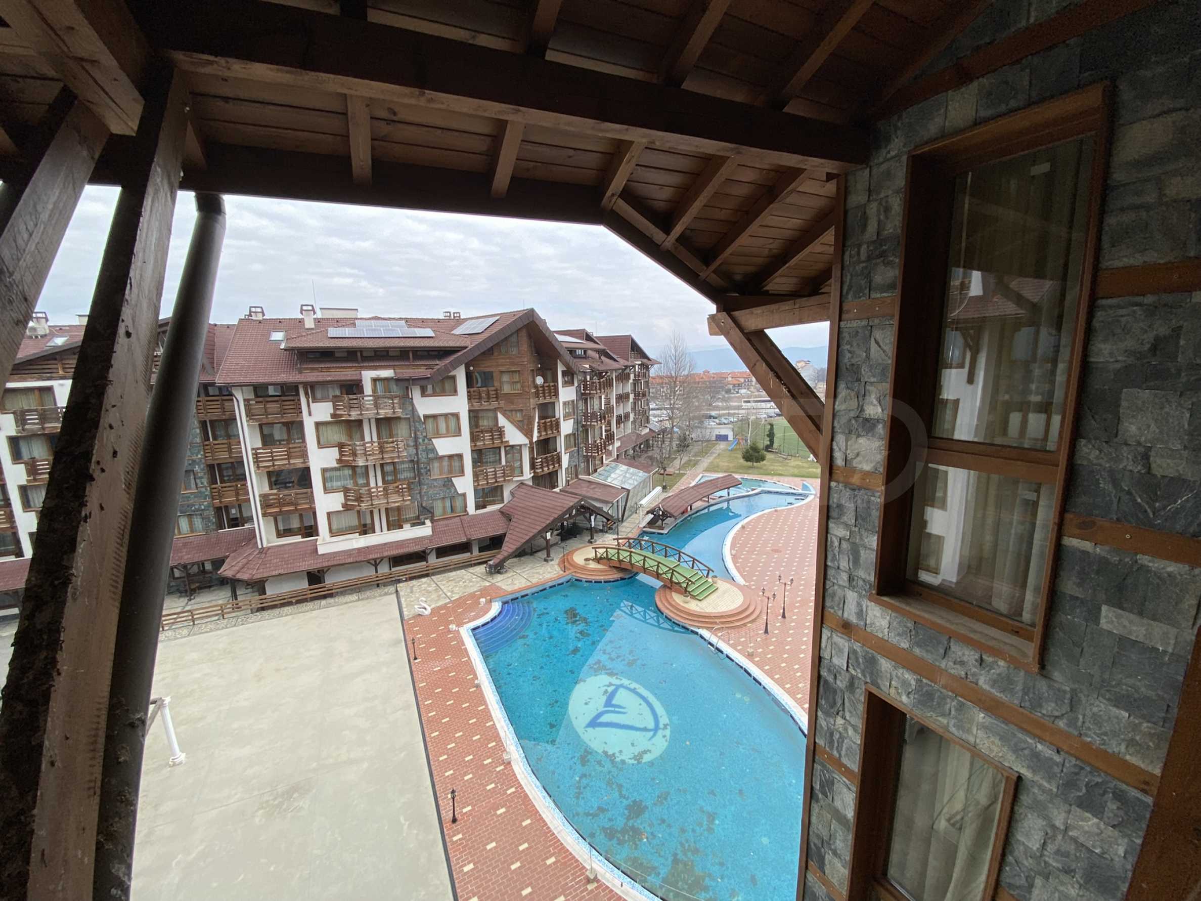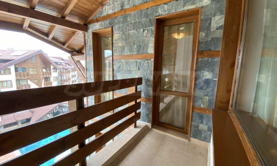 Обща тераса за двете спални, западно изложение и гледка към външен басейн.