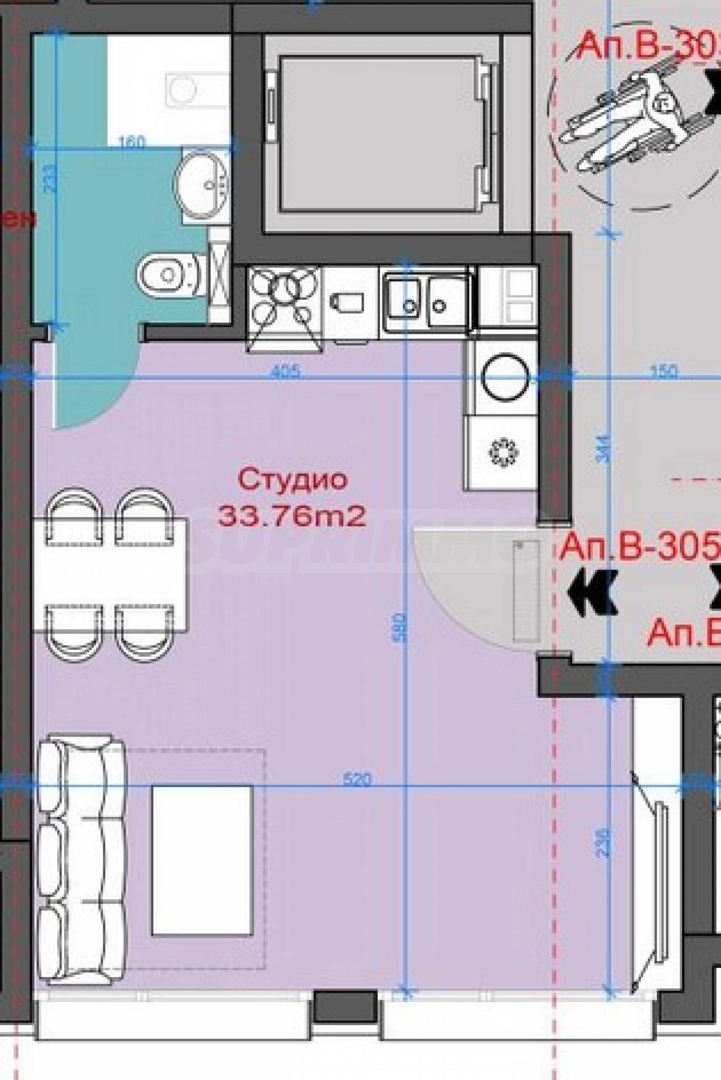 Предлаганото студио е с обща площ от 40.09 кв.м, разположено е на 3-ти етаж, издава се в степен на завършеност "до ключ".