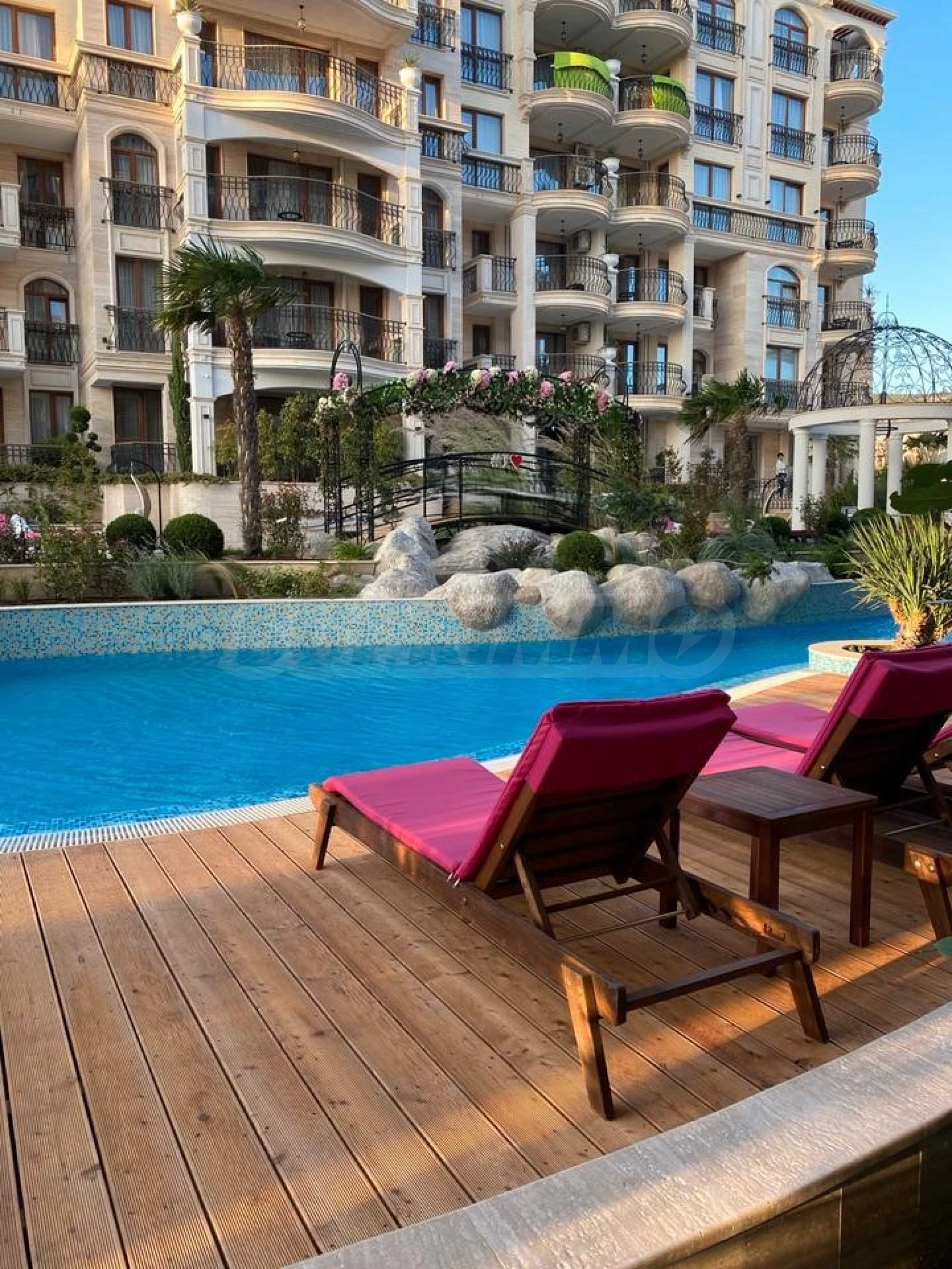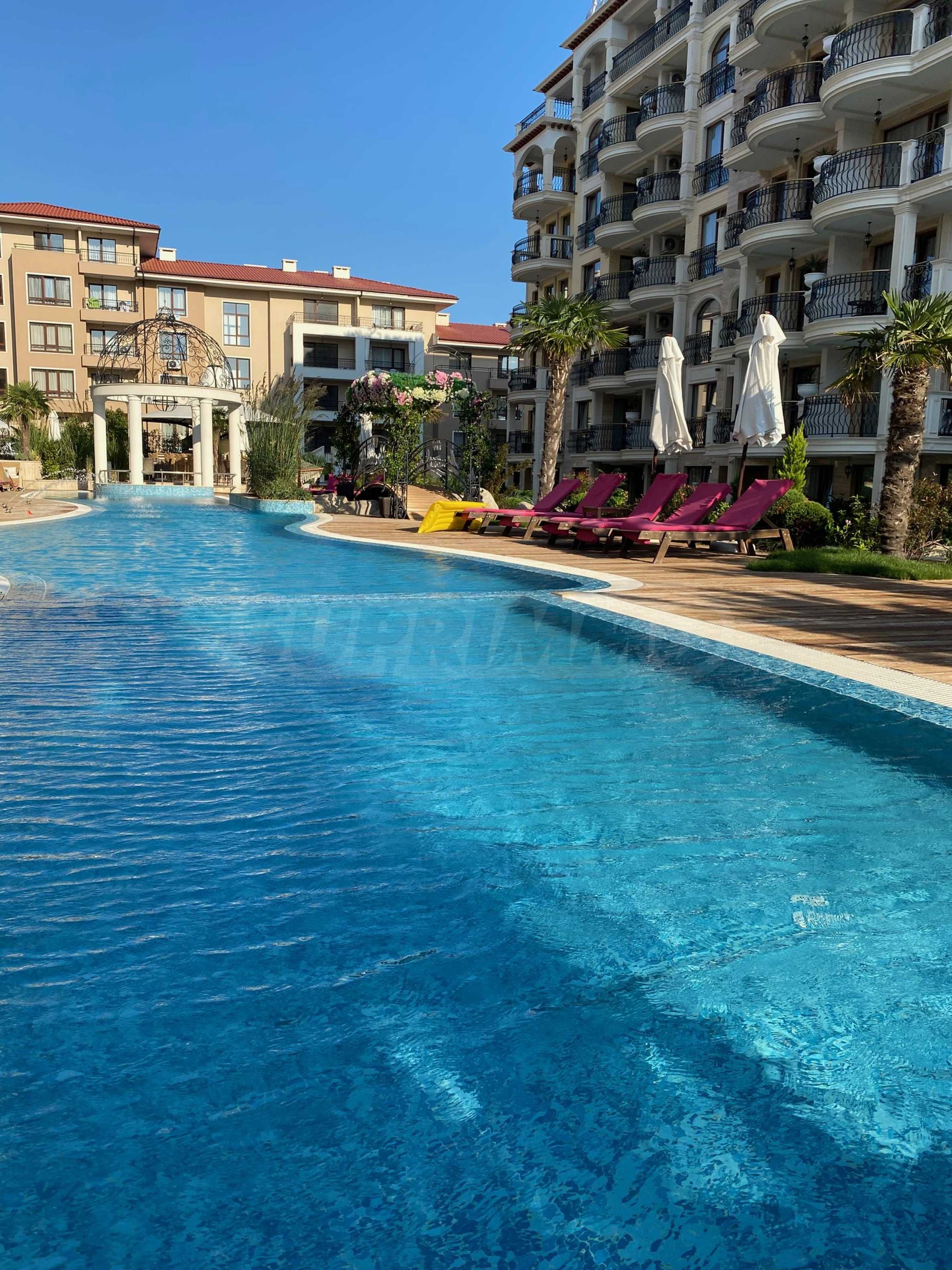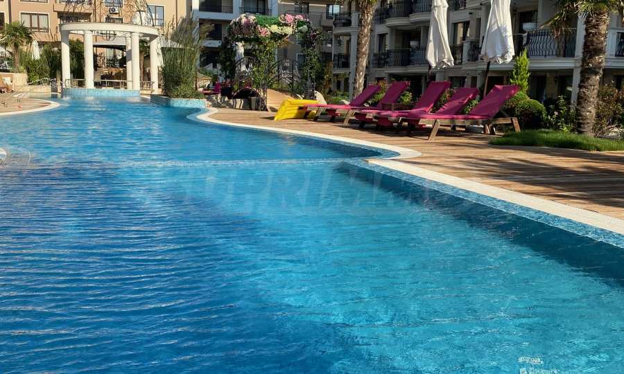 Имотът е с обща площ от от 52 кв.м, разположен на партерен етаж с директен достъп до басейна.