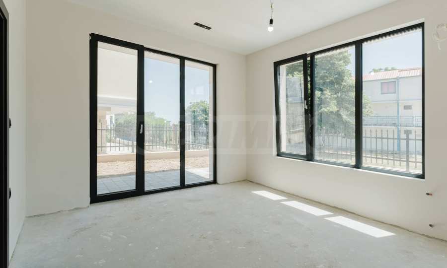 - Етаж 1: входно антре, просторен хол, спалня със собствена баня с тоалет, санитарно помещение, кухня с трапезария и покрита веранда.