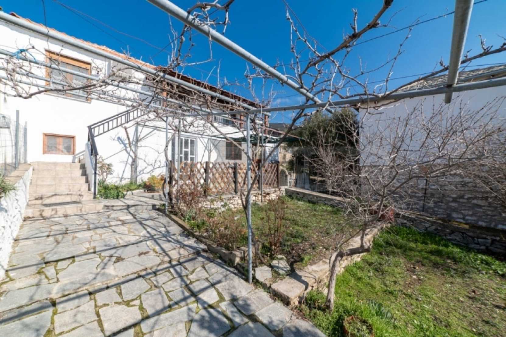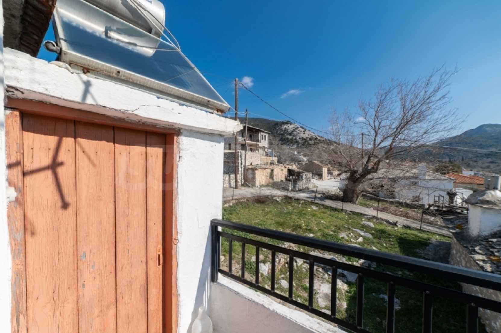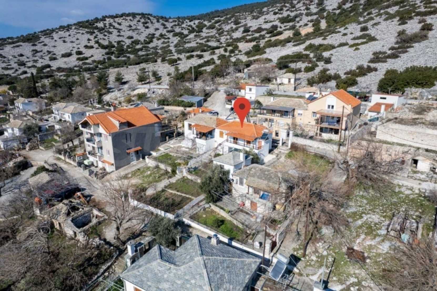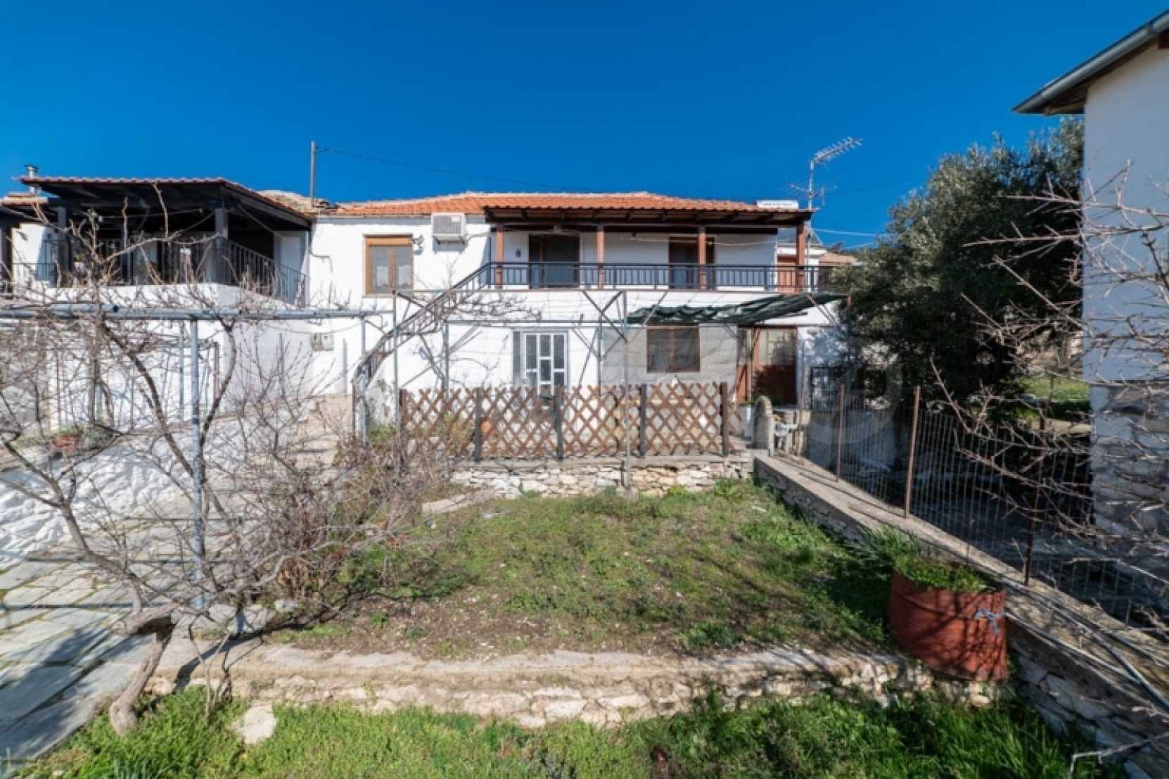Продава: Самостоятелна къща 130.38 кв.м. върху парцел от 306.54 кв.м. разположен в Теологос, Тасос. Имотът е разположен на две нива. Партерът е с площ от 63.46 кв.м. и се състои от 3 стаи, които се нуждаят от основен ремонт, както и отделно складово помещение за котела. Външно стълбище води до първия етаж, където се намира основната жилищна площ от 66.92 кв.м. Основната жилищна площ на първия етаж включва: 2 спални, 1 баня, кухня, хол. Дограмата е PVC с мрежи против насекоми, а подовата настилка е дюшеме с ламинат, а кухнята и банята са с теракот. Балконът, който служи и като главен вход, има допълнителна външна тоалетна. Имотът предлага достъп от две страни: от двора и от горната страна на къщата. Достъпно е по асфалтов път и се намира на 10 км от морето. Тази самостоятелна къща се намира в тих и живописен район на Теологос, което я прави идеална за тези, които желаят да я реновират според личните си предпочитания. За оглед на имота е необходимо представяне на полицейска лична карта.
