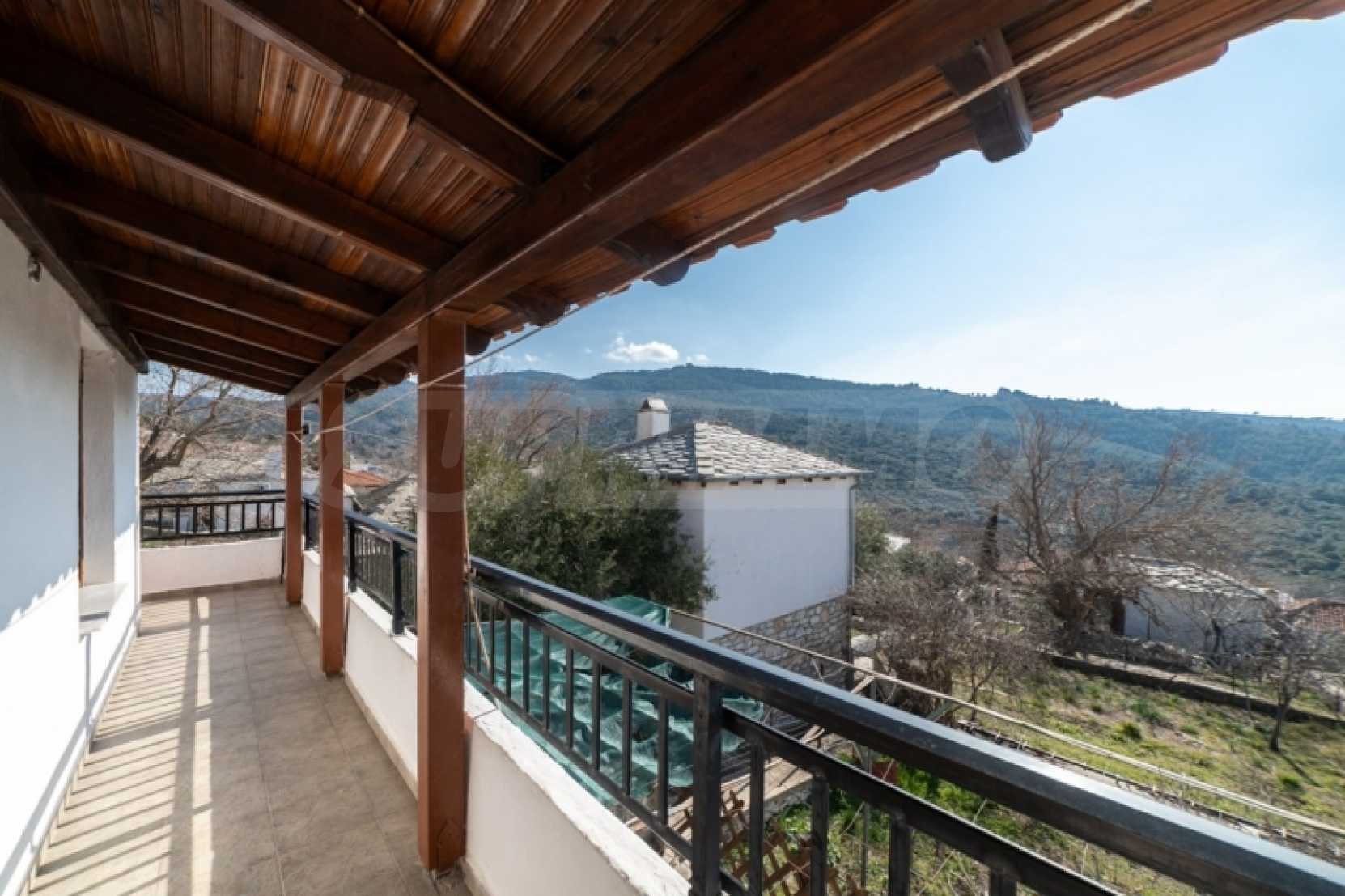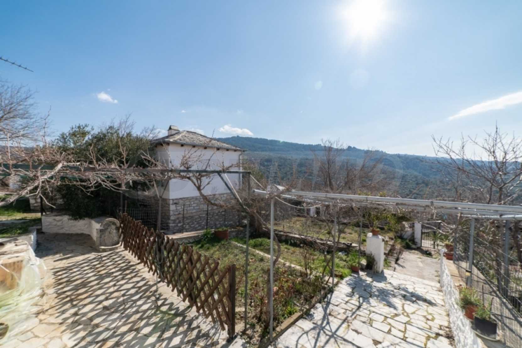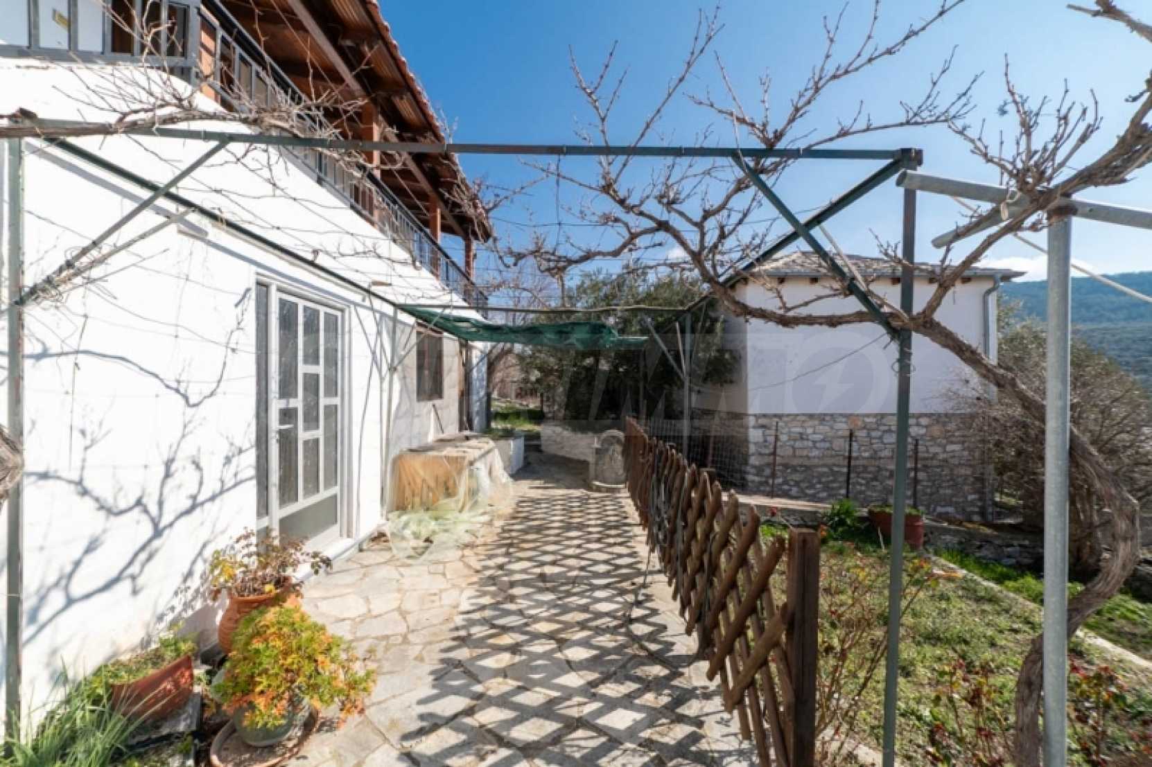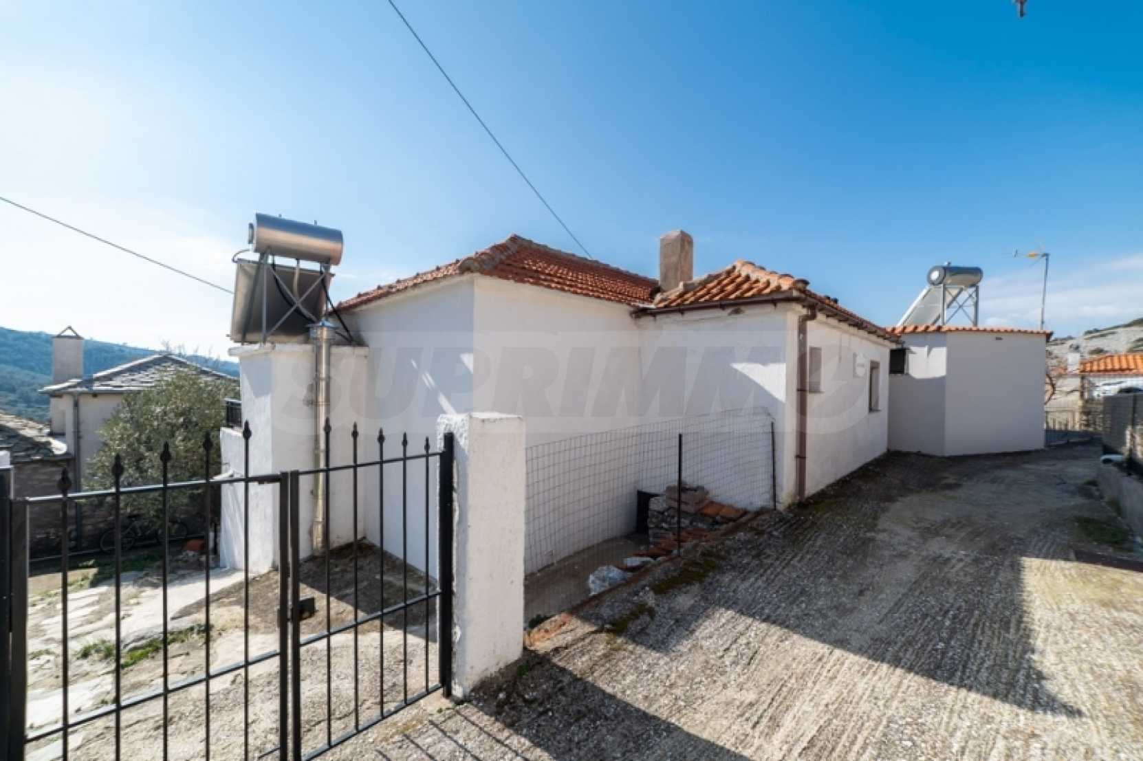 Продава: Самостоятелна къща 130.38 кв.м. върху парцел от 306.54 кв.м. разположен в Теологос, Тасос. Имотът е разположен на две нива. Партерът е с площ от 63.46 кв.м. и се състои от 3 стаи, които се нуждаят от основен ремонт, както и отделно складово помещение за котела. Външно стълбище води до първия етаж, където се намира основната жилищна площ от 66.92 кв.м. Основната жилищна площ на първия етаж включва: 2 спални, 1 баня, кухня, хол. Дограмата е PVC с мрежи против насекоми, а подовата настилка е дюшеме с ламинат, а кухнята и банята са с теракот. Балконът, който служи и като главен вход, има допълнителна външна тоалетна. Имотът предлага достъп от две страни: от двора и от горната страна на къщата. Достъпно е по асфалтов път и се намира на 10 км от морето. Тази самостоятелна къща се намира в тих и живописен район на Теологос, което я прави идеална за тези, които желаят да я реновират според личните си предпочитания. За оглед на имота е необходимо представяне на полицейска лична карта.